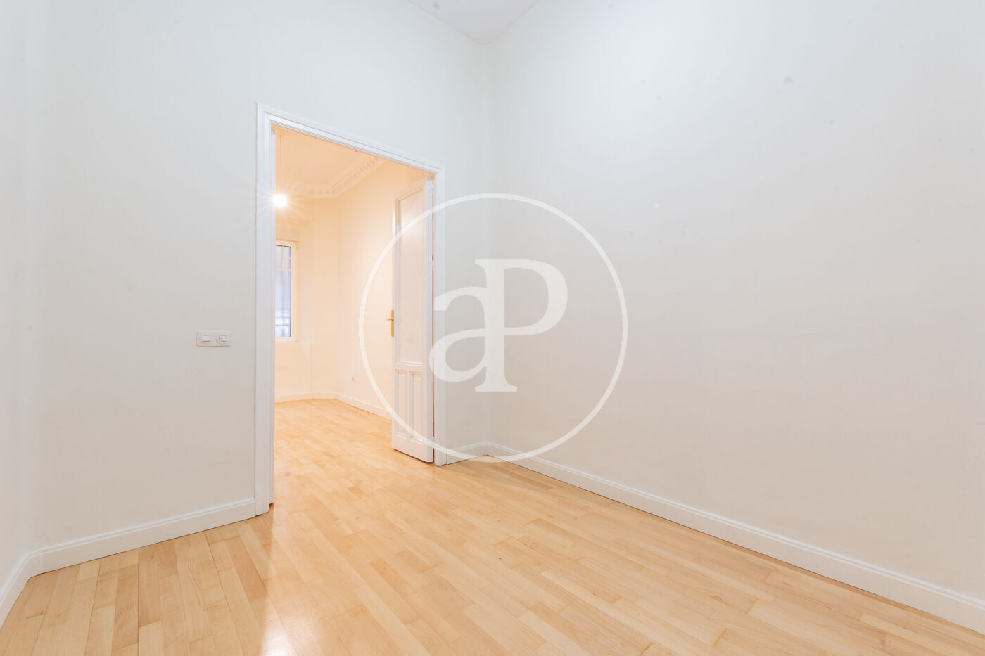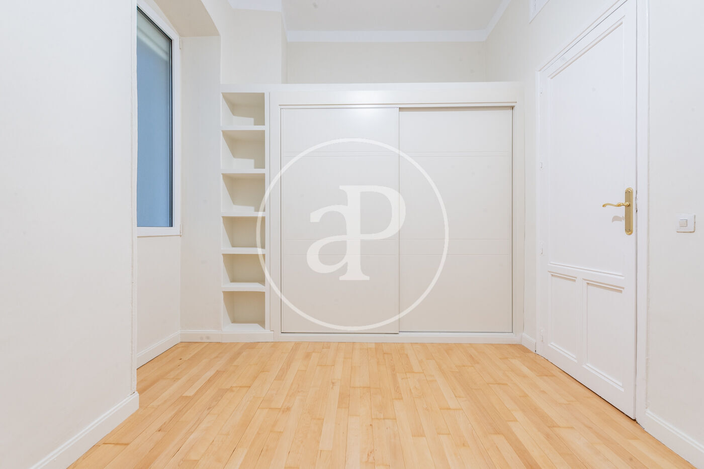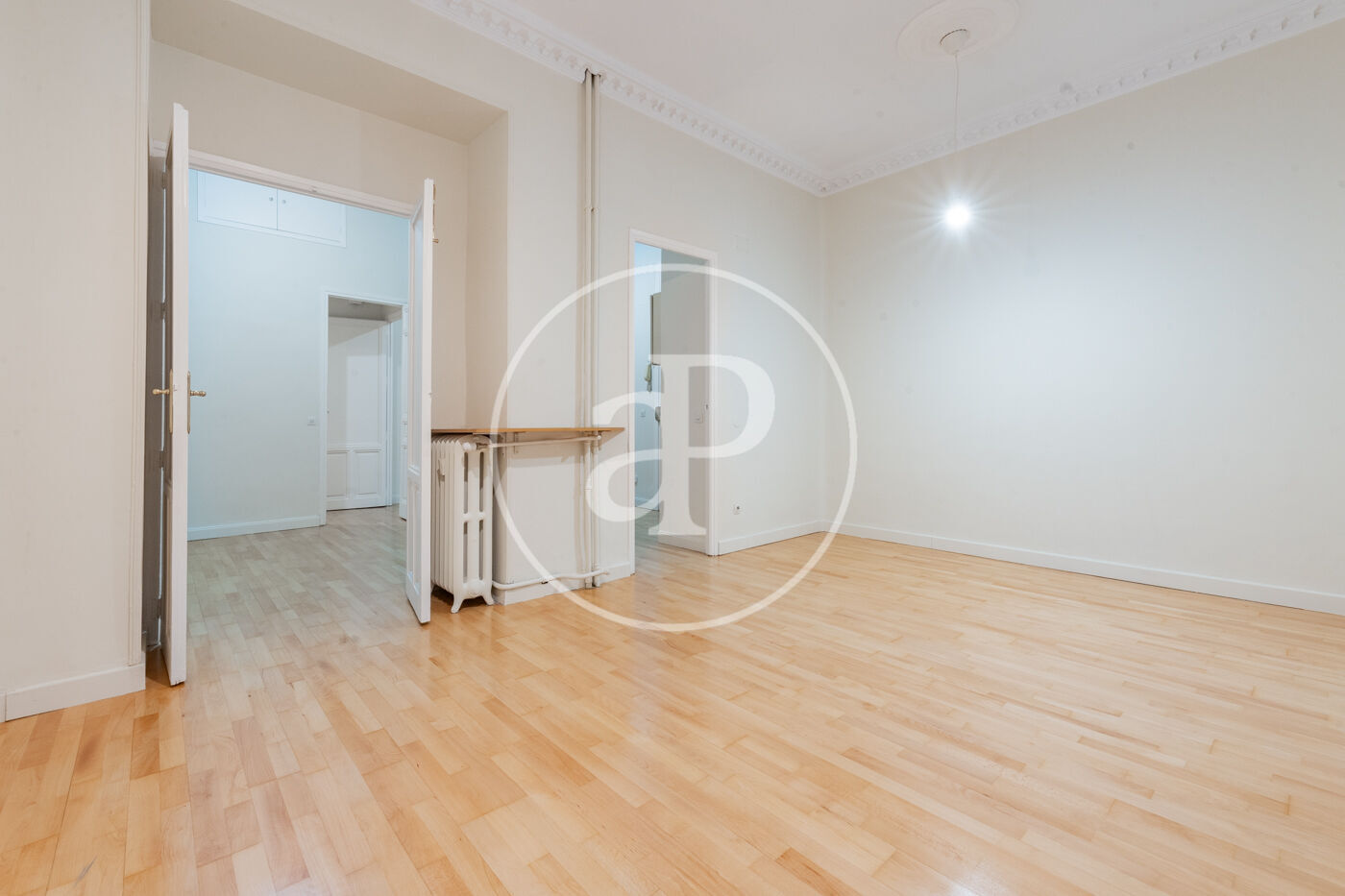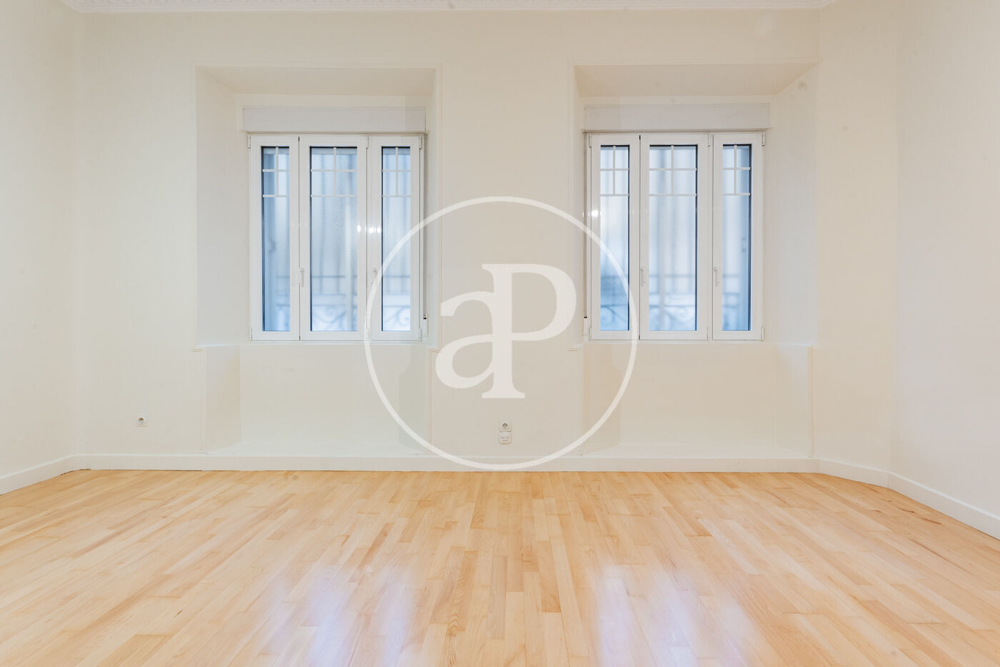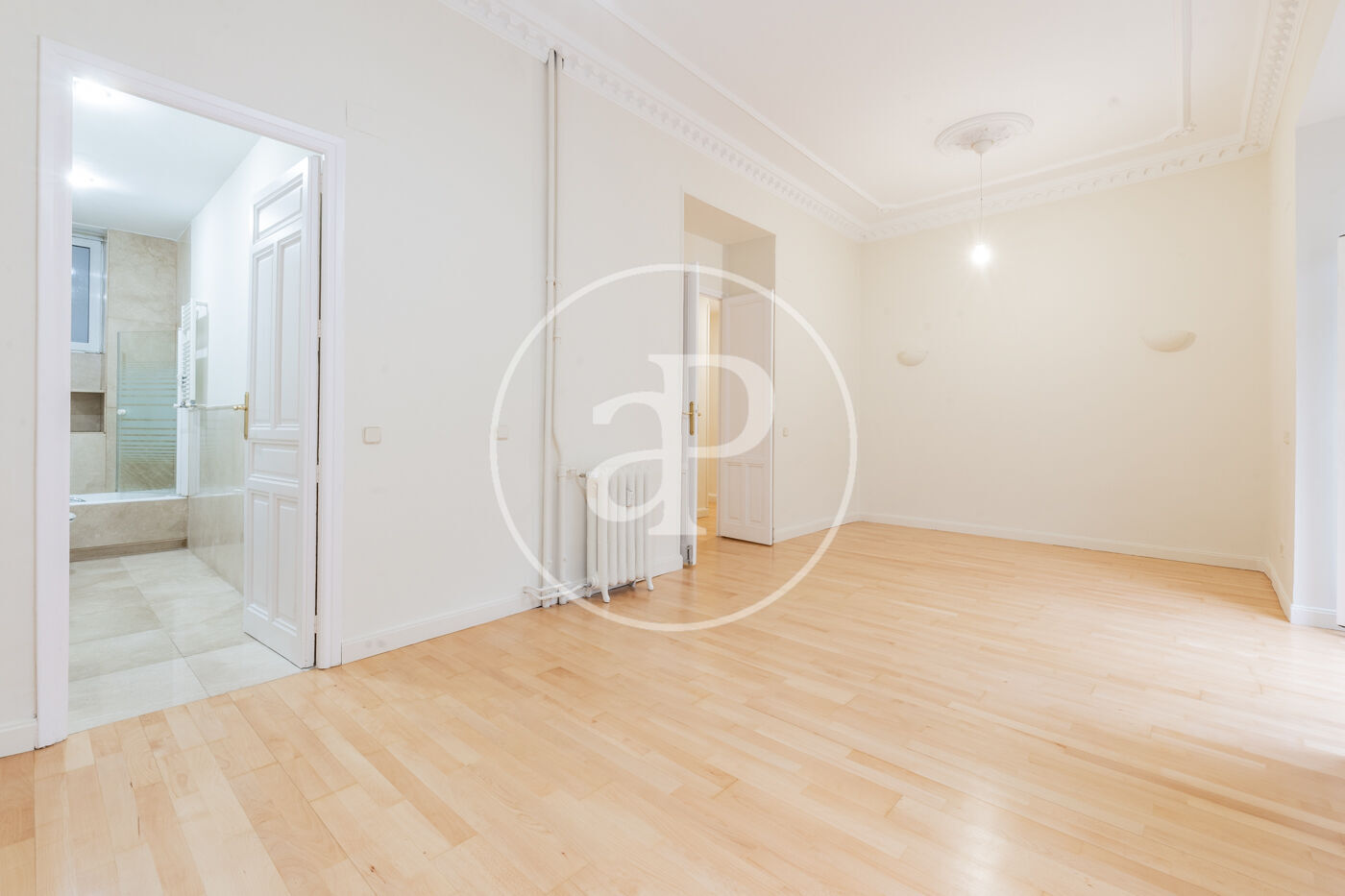 La luminosidad y amplitud son protagonistas gracias a sus grandes ventanales Schüco oscilobatientes, que proporcionan un excelente aislamiento térmico y acústico. Los techos de 3,30m de altura, decorados con sutiles elementos ornamentales en las estancias principales, refuerzan el carácter señorial y la sensación de espacio y distinción.