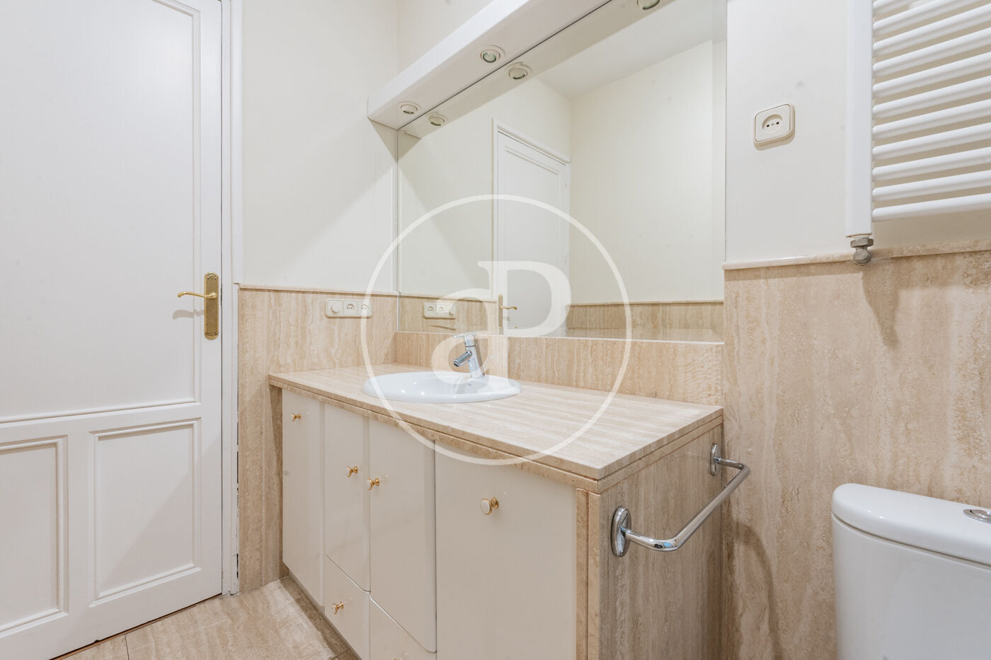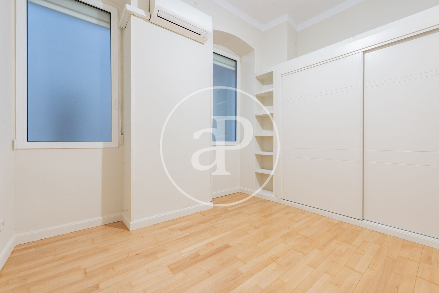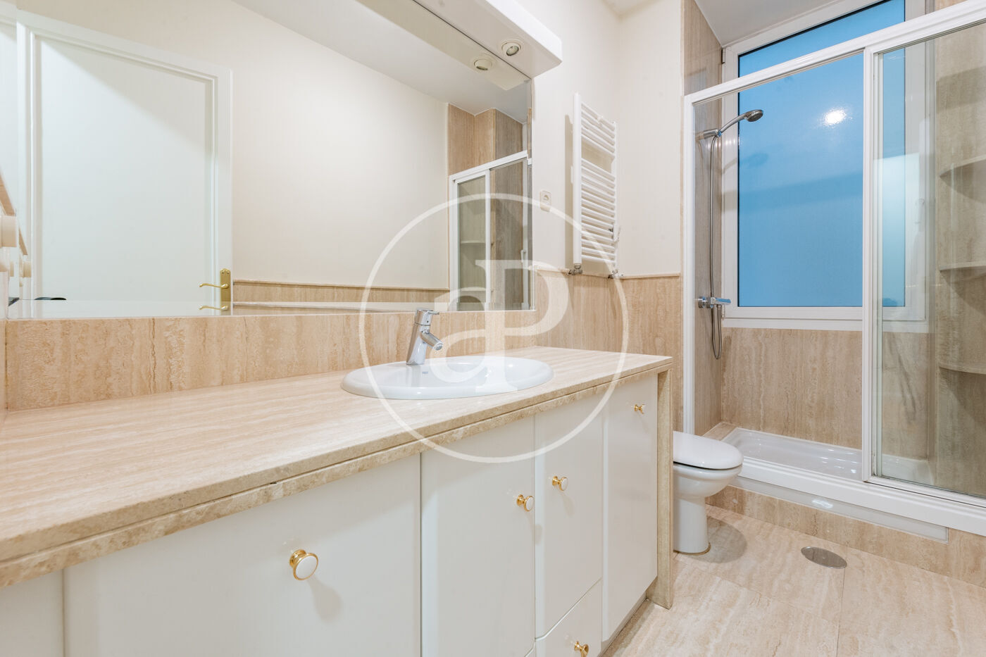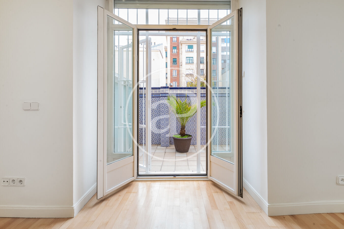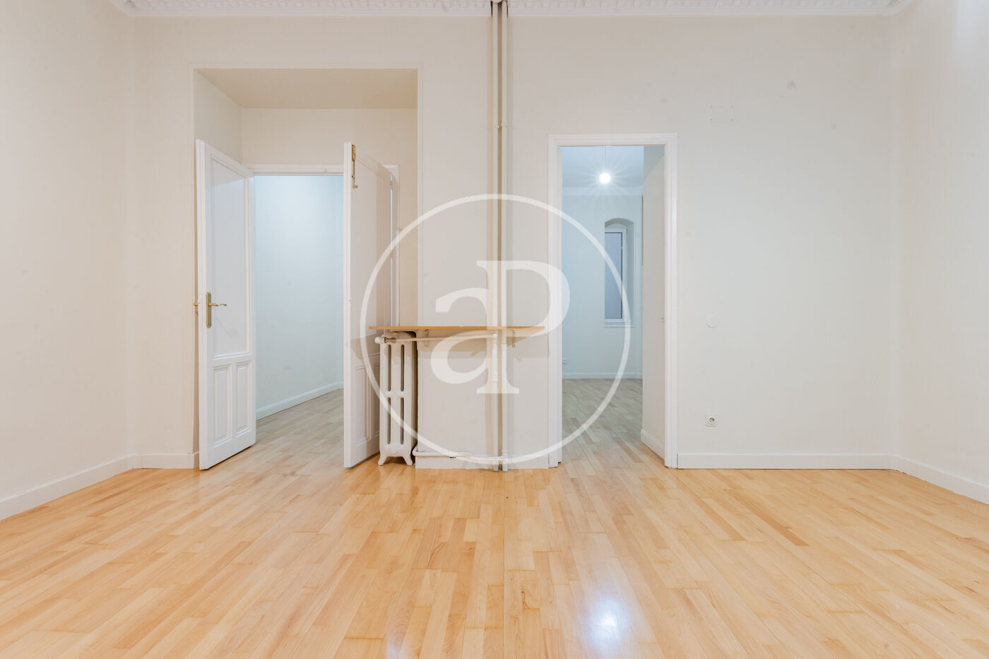 La luminosidad y amplitud son protagonistas gracias a sus grandes ventanales Schüco oscilobatientes, que proporcionan un excelente aislamiento térmico y acústico. Los techos de 3,30m de altura, decorados con sutiles elementos ornamentales en las estancias principales, refuerzan el carácter señorial y la sensación de espacio y distinción.