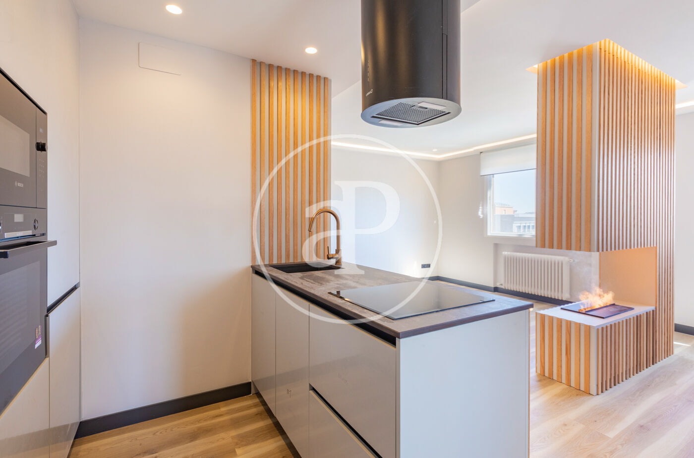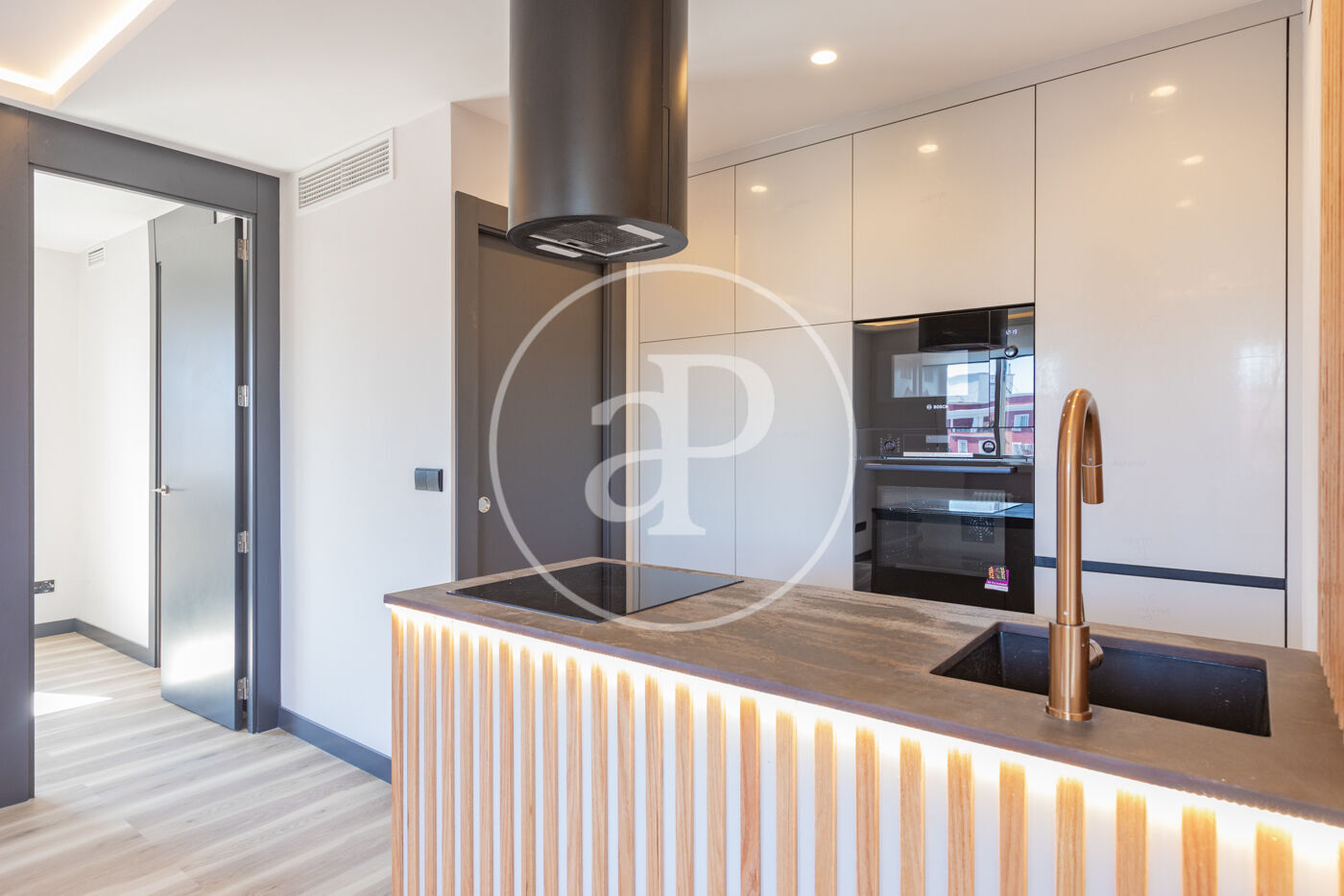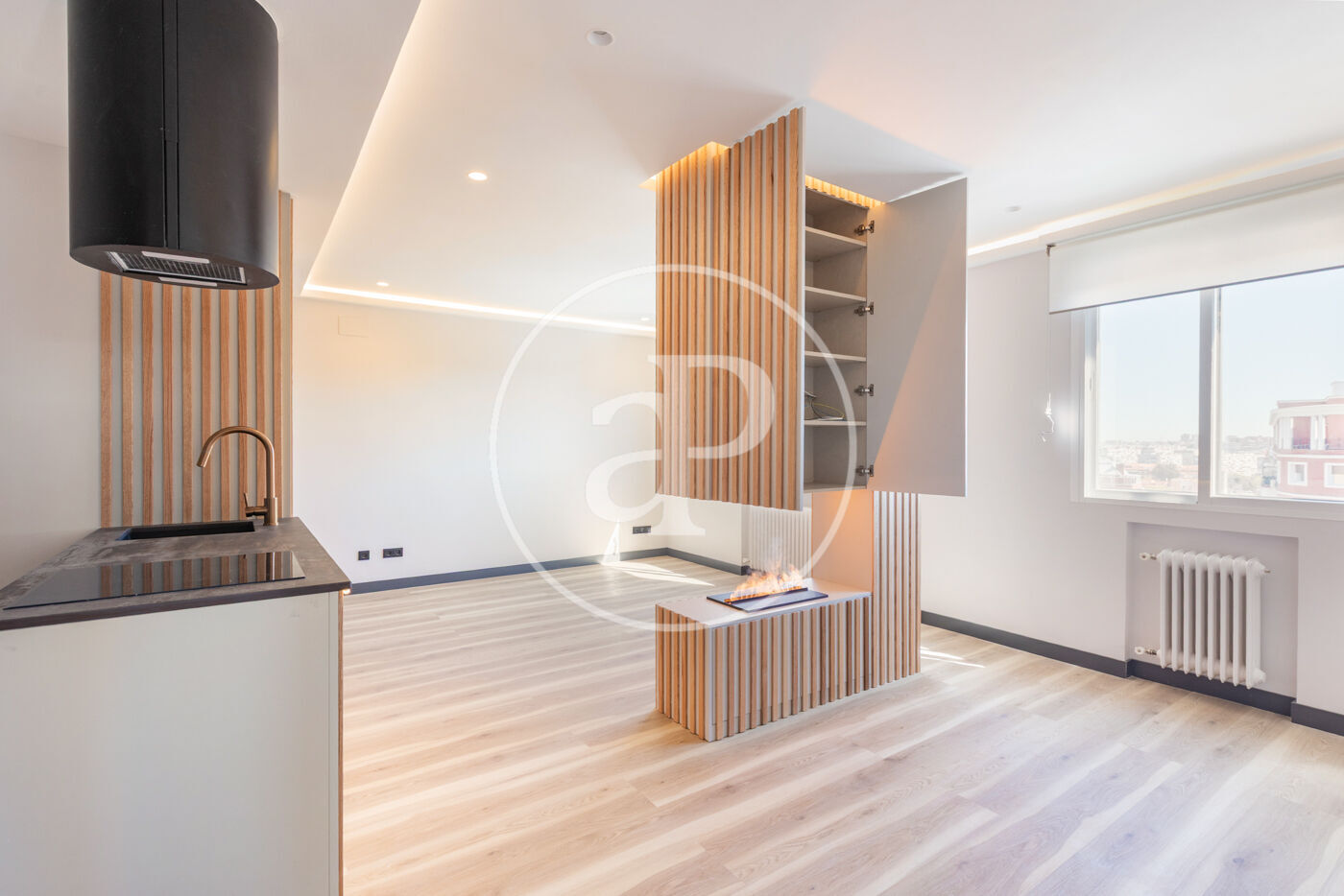 Presentamos este magnífico apartamento ubicado en una finca de lujo que ha sido reformado íntegramente con altísimas calidades. Se trata de una séptima planta completamente exterior, orientación sureste y preciosas vistas despejadas con una luz natural excepcional. Está compuesto por un magnífico salón-comedor y cocina integrada más de 30 m2. La cocina está equipada con electrodomésticos de alta gama, panelados con península que puede servir de desayunador además de habitación tipo laundry con lavadora y secadora en torre . En el salón se ha instalado una chimenea de vapor con un precioso mueble de palillería que permite separar ambientes además de añadir almacenaje. Se ha instalado también un práctico aseo de visitas y gran armario gabanero. El dormitorio en suite de buen tamaño para instalar una zona de trabajo, consta de un gran armario empotrado de pared a pared con gran capacidad. El baño completo en suite con mucha luz natural y ventilación propia. La calefacción y el agua caliente son centrales y el aire acondicionado por conductos en todas las estancias. La finca en la que se encuentra tiene portero todos los días de la semana y parking de acceso directo con plazas disponibles tanto en alquiler como de compra. Además, cuenta con una magnífica terraza solarium y piscina para uso y disfrute de los vecinos. Destacamos la reforma realizada con altísimas calidades cuidando hasta el último detalle lo que hace que sea una vivienda de autor.