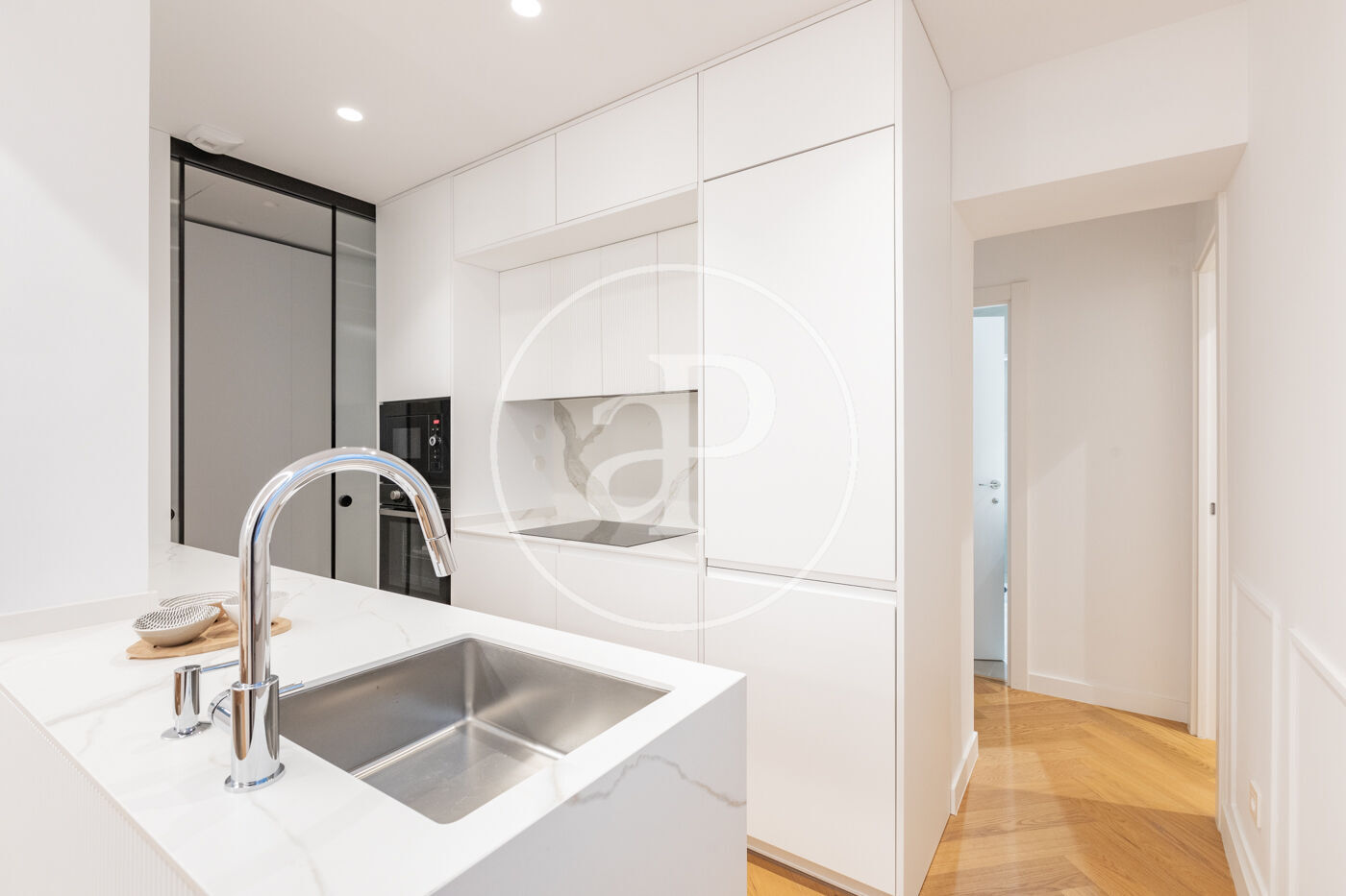 Aproperties presenta precioso piso reformado a estrenar en una de las mejores ubicaciones de Madrid. El piso ha sido recién reformado con un cuidado interiorismo y alta calidad y gusto en los materiales utilizados.