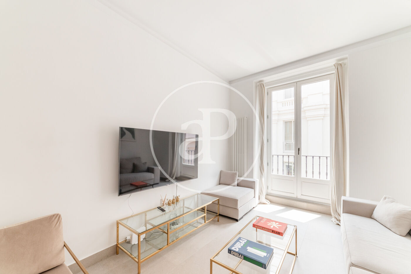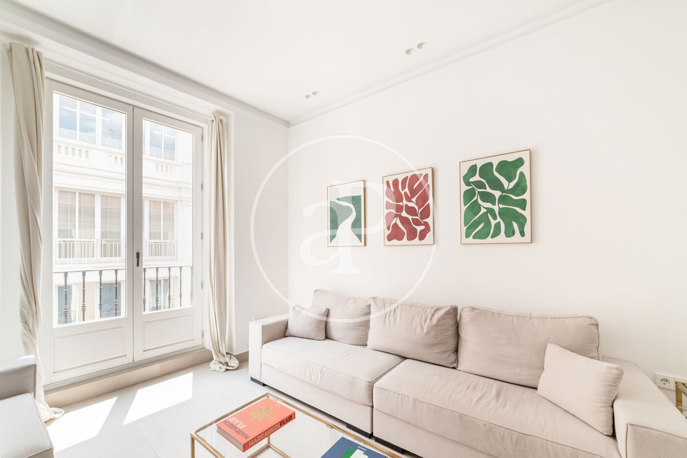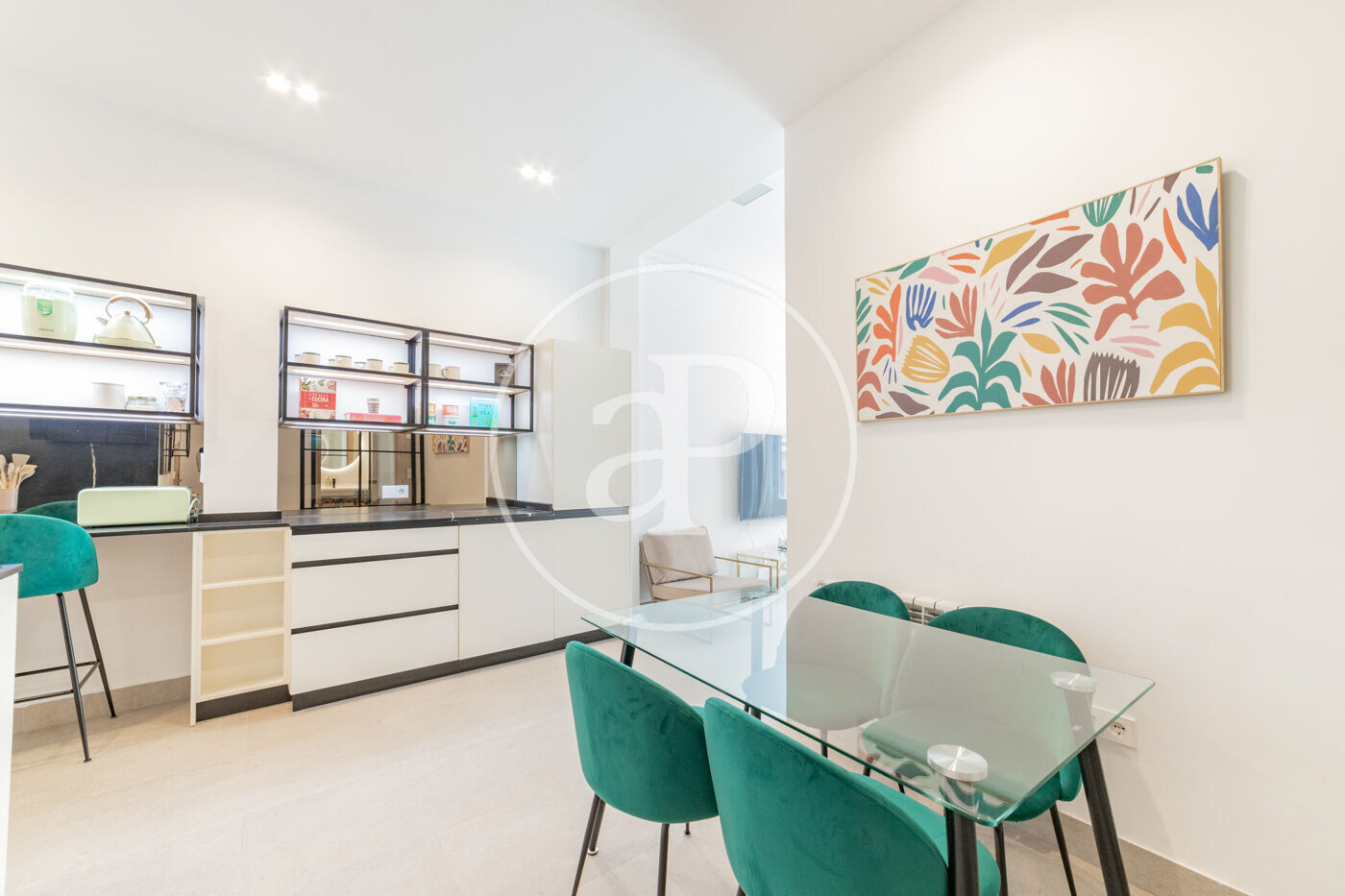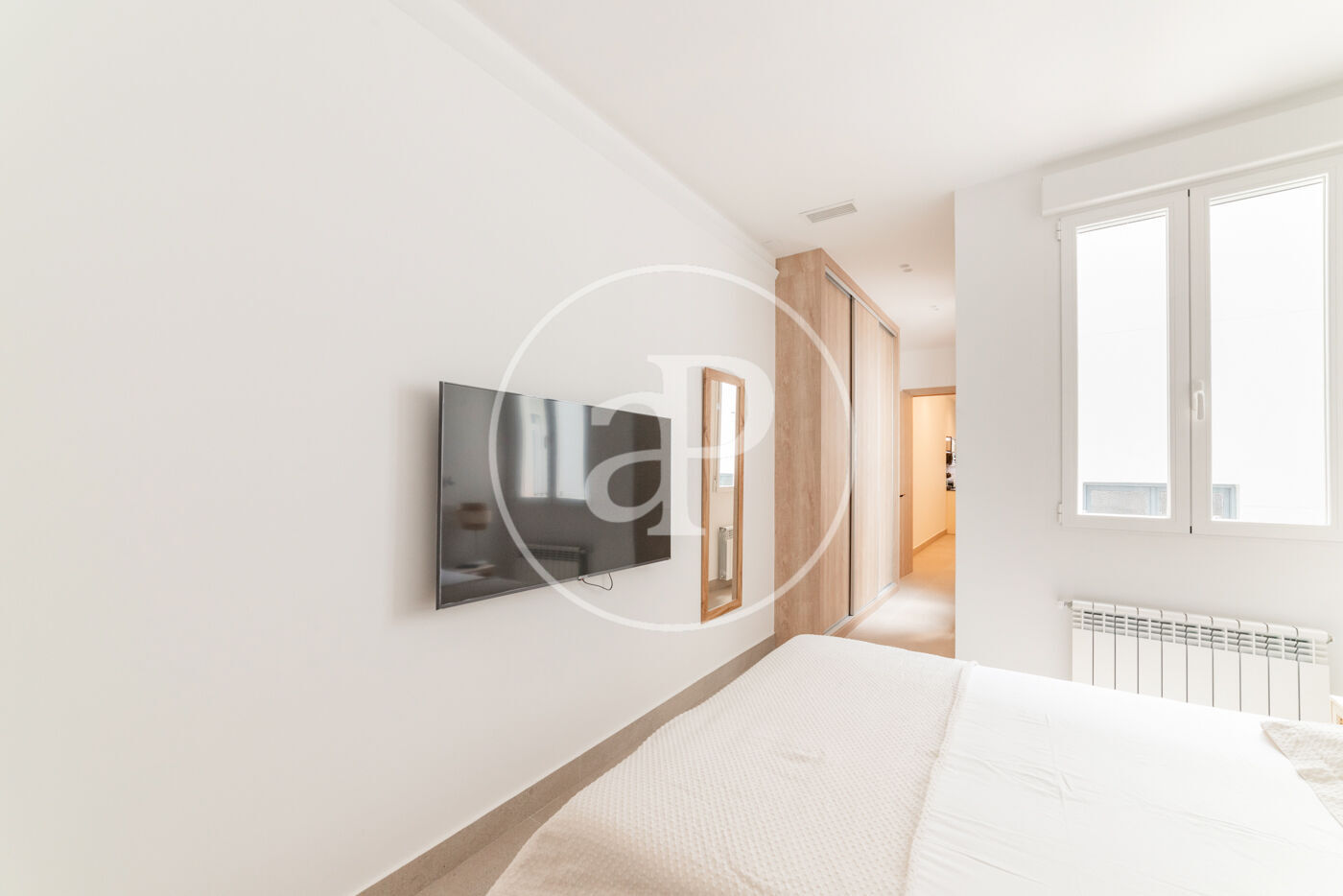 Desde la entrada, se accede a un amplio recibidor con comedor, cocina y sala de estar de concepto abierto, decorados en estilo nórdico. Cuenta con un aseo de cortesía y una cocina totalmente equipada con todo lo necesario para entrar a vivir. El salón cuenta con un amplio balcón y una Smart TV de gran tamaño. Los dos dormitorios son dobles y ofrecen mucho espacio de almacenamiento; uno tiene balcón y el otro, baño en suite. Se encuentra en un edificio de nueva construcción y dispone de wifi.