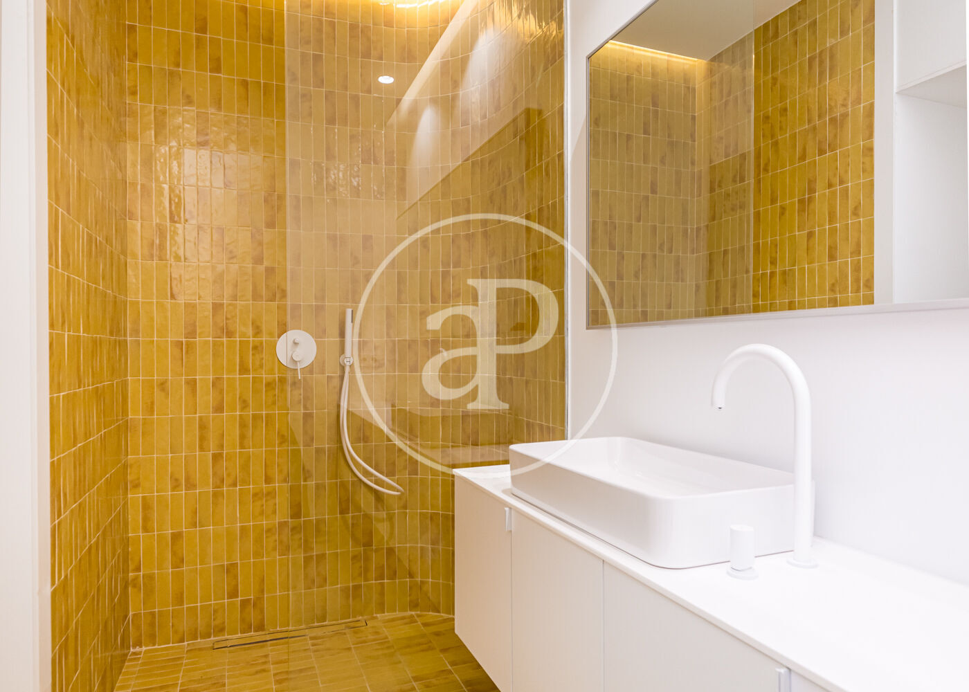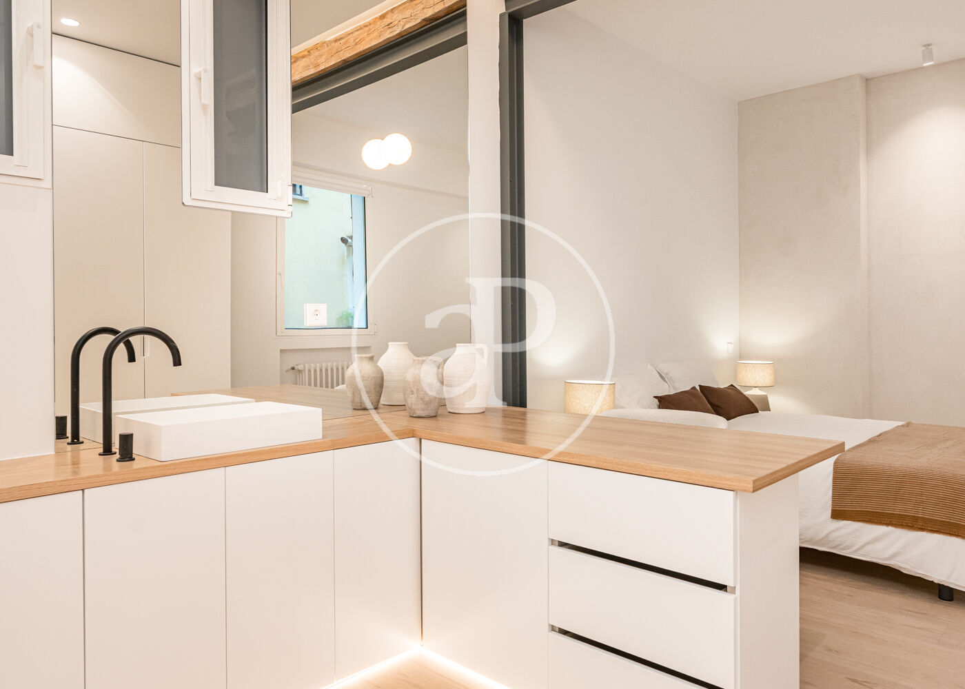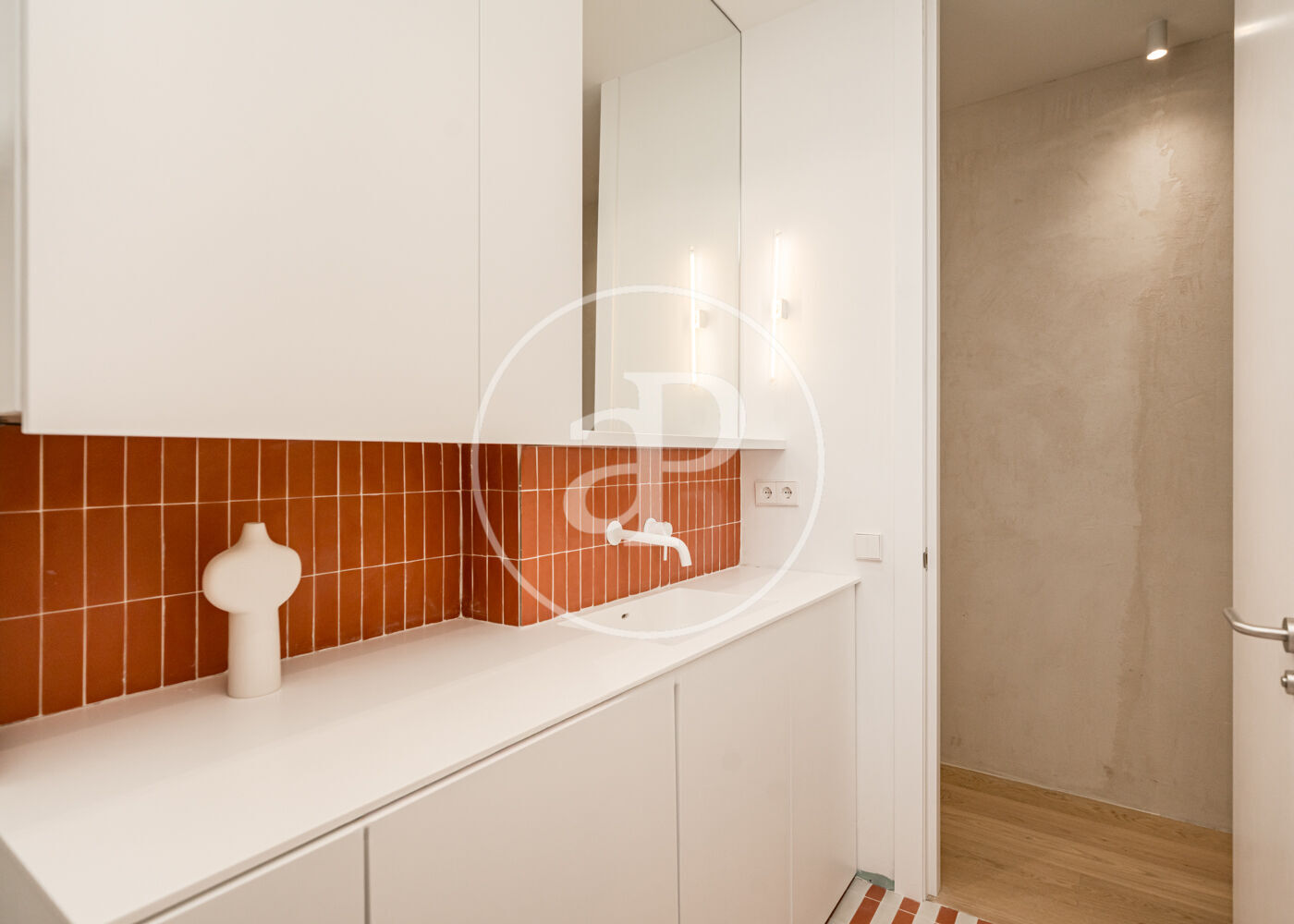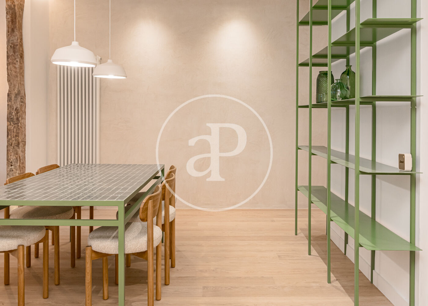 El proyecto ha sido desarrollado por arquitectos con una clara vocación de diseño. Gran parte del mobiliario y los elementos funcionales han sido concebidos a medida, incluyendo la cocina integrada, las estanterías tipo biblioteca, los armarios empotrados y el mobiliario de los baños con duchas italianas. Los suelos de madera refuerzan la sensación de calidez y continuidad entre los espacios.