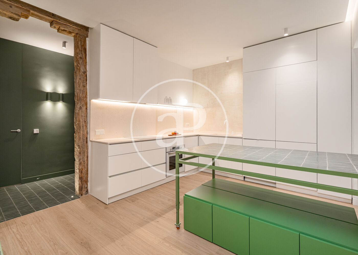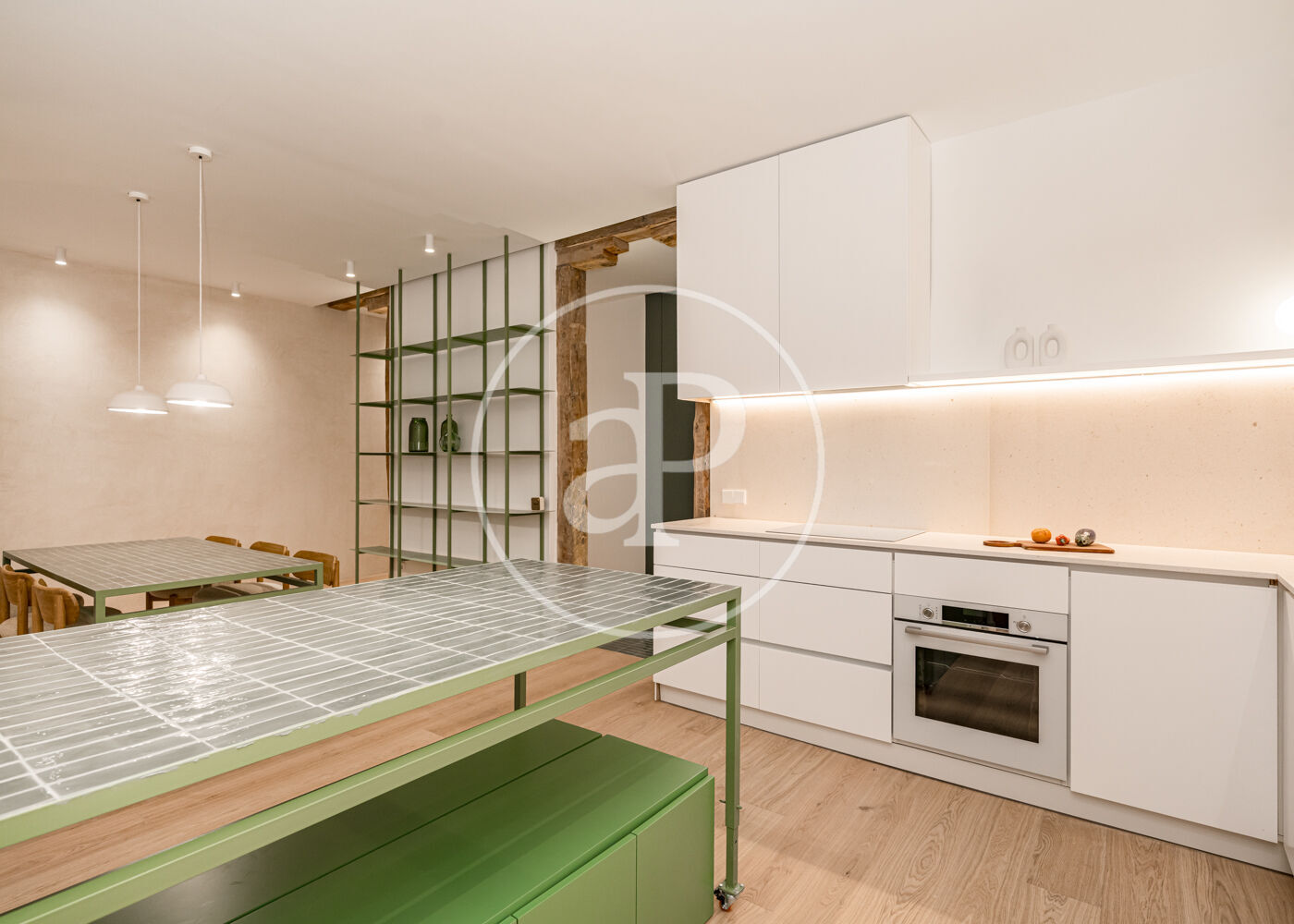 La vivienda se organiza en torno a un gran espacio central abierto que integra cocina, comedor y salón, generando una zona de día amplia y versátil.
