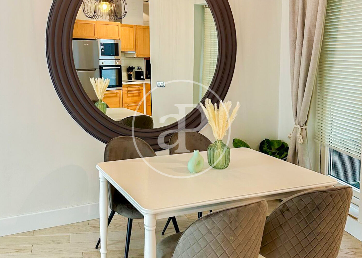 Agradable apartamento en la calle Jesús del Valle, consta de una zona de estar con comedor y cocina integrada, habitación y cuarto de baño con bañera de hidromasaje. Nada más llegar nos recibe un hall con armario para abrigos, a la derecha encontramos la habitación y el patio, a la izquierda cocina equipada y zona de comedor, en la siguiente altura está la sala de estar con dos ventanales.