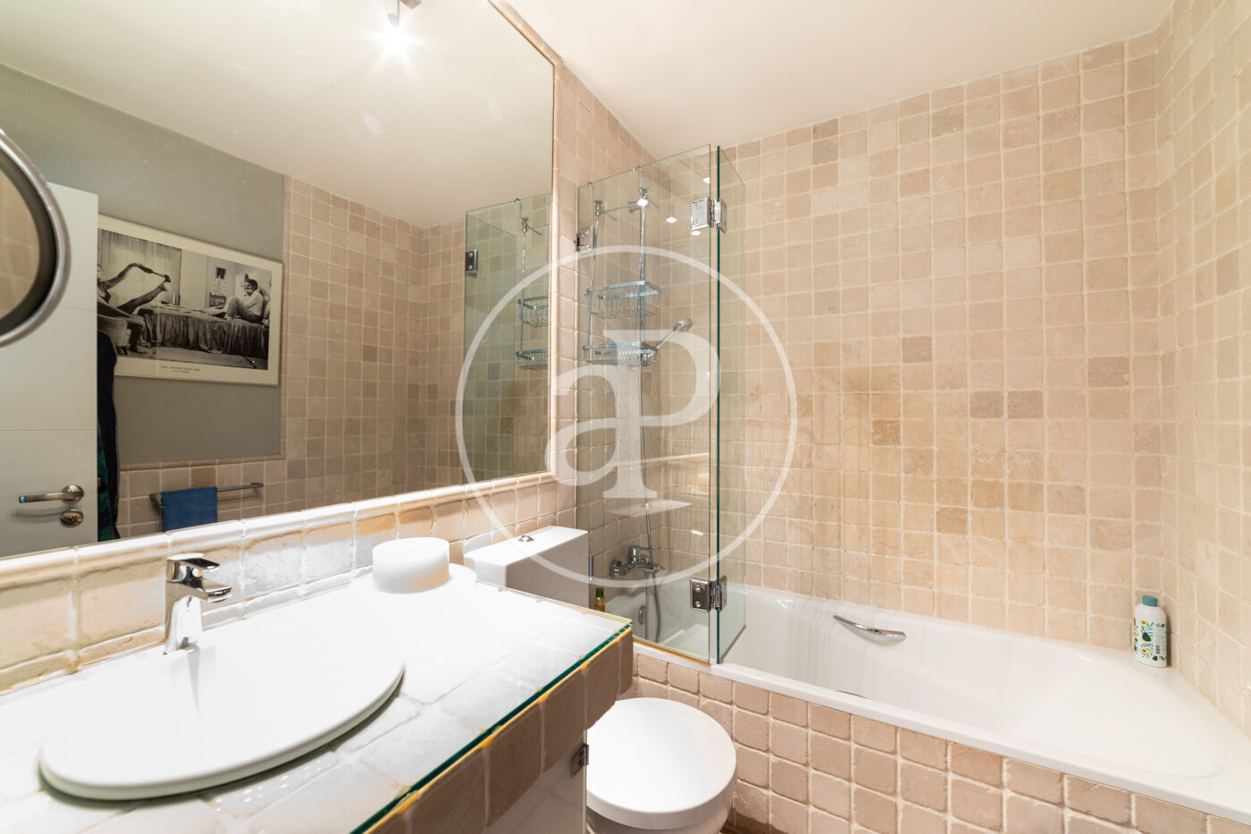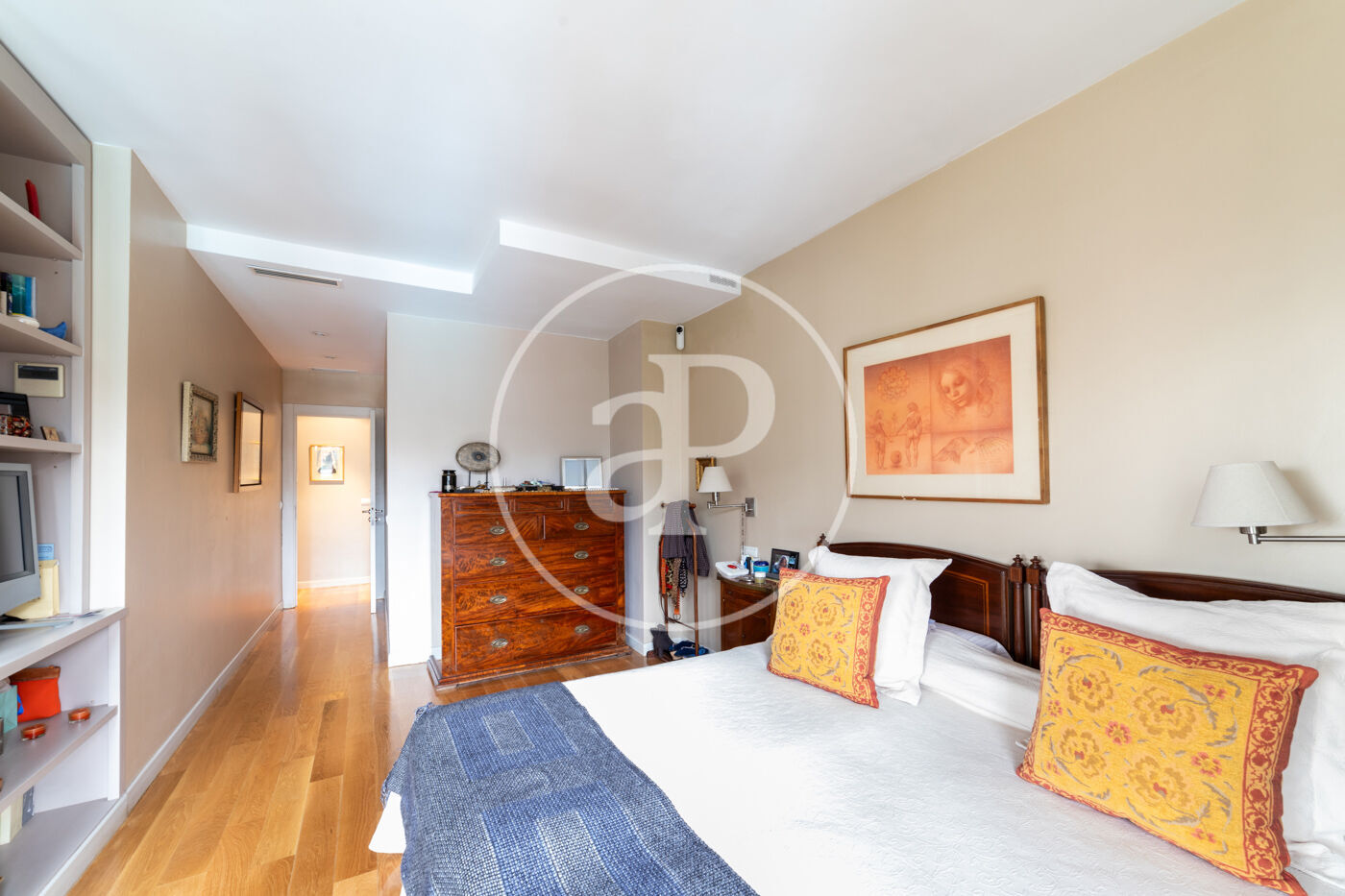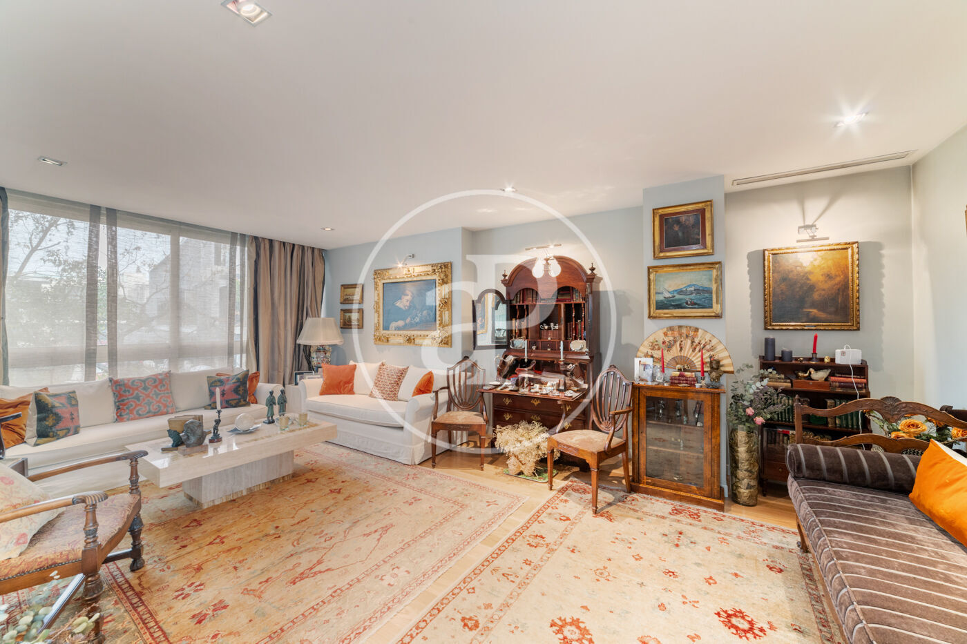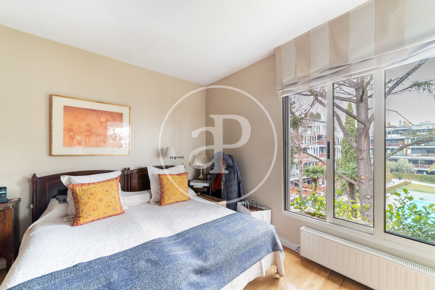 DÚPLEX DE TRES DORMITORIOS AMUEBLADO CON GIMNASIO EN JERÓNIMOS. Espectacular dúplex invertido, de tres dormitorios y 4 cuartos de baño. Se encuentra ubicado en una finca con portero físico y con ascensor. La vivienda está en la planta baja exterior del edificio. Orientación norte. Nivel de luz natural alto. Se caracteriza por su estado impecable, mobiliario de calidad y su distribución funcional. Todo el piso está automatizado, persianas y cortinas. Tiene acabados de lujo y electrodomésticos de alta gama. Cuenta con una gran zona húmeda con piscina con sistema de deshumidificación. El piso se encuentra en excelentes condiciones y fue reformado por un reconocido diseñador. Cuenta con calefacción y aire acondicionado. Tiene una magnifica vista a un jardín. Cristales de seguridad, paredes lisas y suelos radiantes y refrigerantes. El edificio tiene un gimnasio comunitario. Podemos encontrar armarios empotrados en todas las habitaciones. Las ventanas son Climalit doble. Se divide en las siguientes estancias: PRIMERA PLANTA - Hall de entrada: Recibidor que da acceso a la vivienda - Salón: con una gran vista. - Comedor: amplio. - Cocina: integrada totalmente equipada con electrodomésticos de alta gama. - Dormitorio 1: Doble. Con una ventana grande y baño en suite con bañera. - Jardín - Escalera en forma de caracol que da acceso a la planta baja. PLANTA BAJA - Piscina privada - Zona húmeda con sala de estar, TV, chimenea y baño con sauna, baño turco y bañera. - Dormitorio 2: Doble. Con ventana, walking closet, baño en suite con ducha. - Dormitorio 3: Doble. Con ventana - Zona de lavandería ¿Te imaginas vivir aquí?