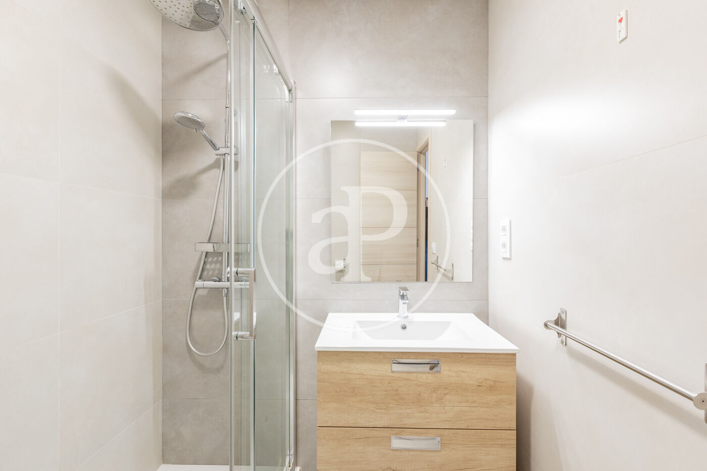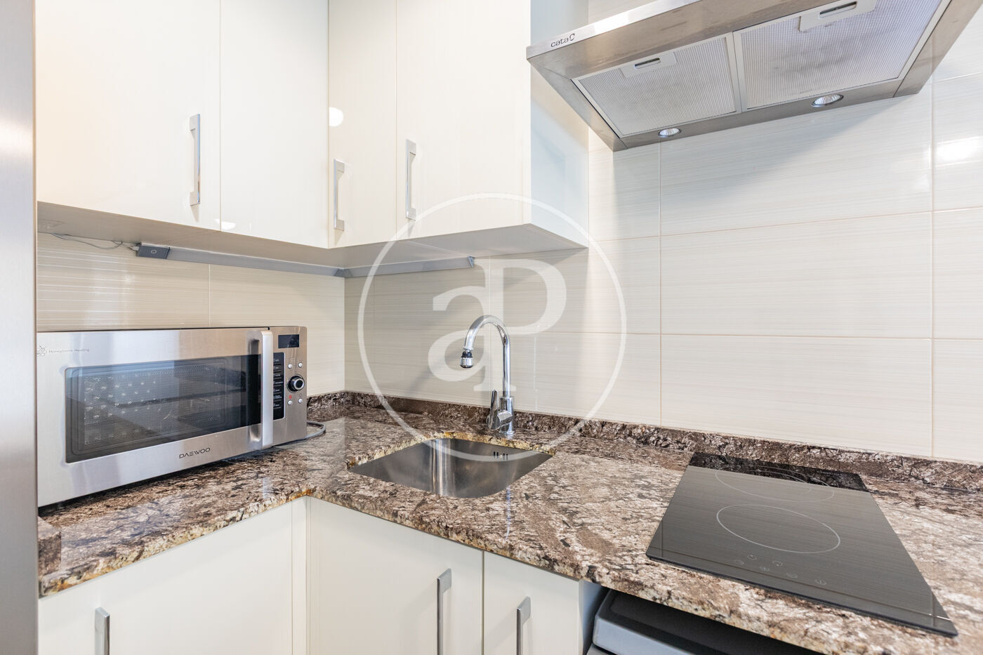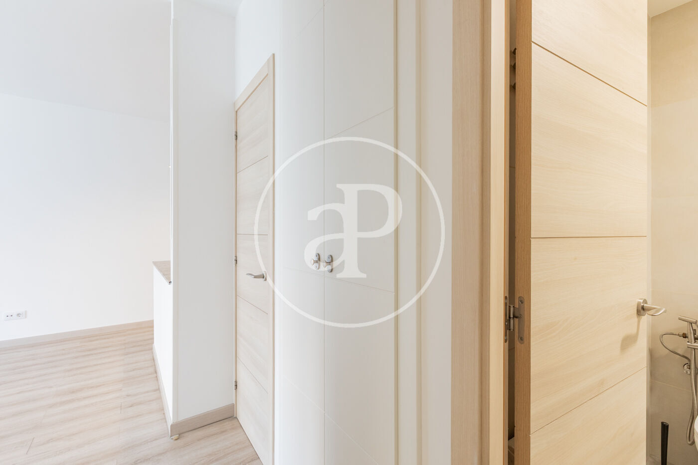 Se trata de 50m2 catastrales compuestos por salón- comedor con cocina abierta limitada por una barra muy funcional , está totalmente equipada con electrodomésticos, hasta con un pequeño lavavajillas, un cuarto de baño y una habitación. El apartamento es muy cuadrado y está muy bien distribuido. En la reforma se insonorizaron las dos paredes que lindan con vecinos, también dispone de un trastero.