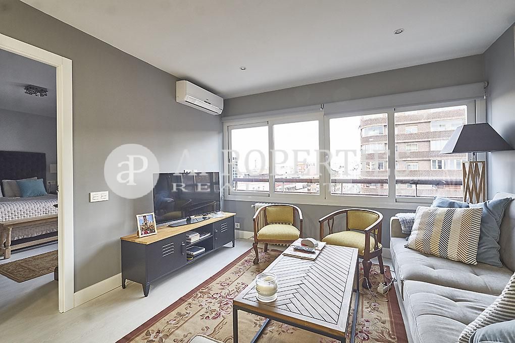 Precioso apartamento completamente exterior, dispone de 52m² útiles, totalmente reformado con excelentes calidades y muy buen gusto. Consta de un salón con una bonita cocina integrada totalmente equipada, amplio dormitorio independiente con vestidor y cuarto de baño completo. La orientación sur le brinda una luminosidad magnifica, y al ser una octava planta, goza de unas vistas muy agradables. Dispone de carpinterías exteriores con ventanas oscilobatientes y doble acristalamiento. La finca cuenta con piscina y solarium en la azotea, así como con conserje. La zona dispone de todo tipo de servicios y conexiones de transporte público.