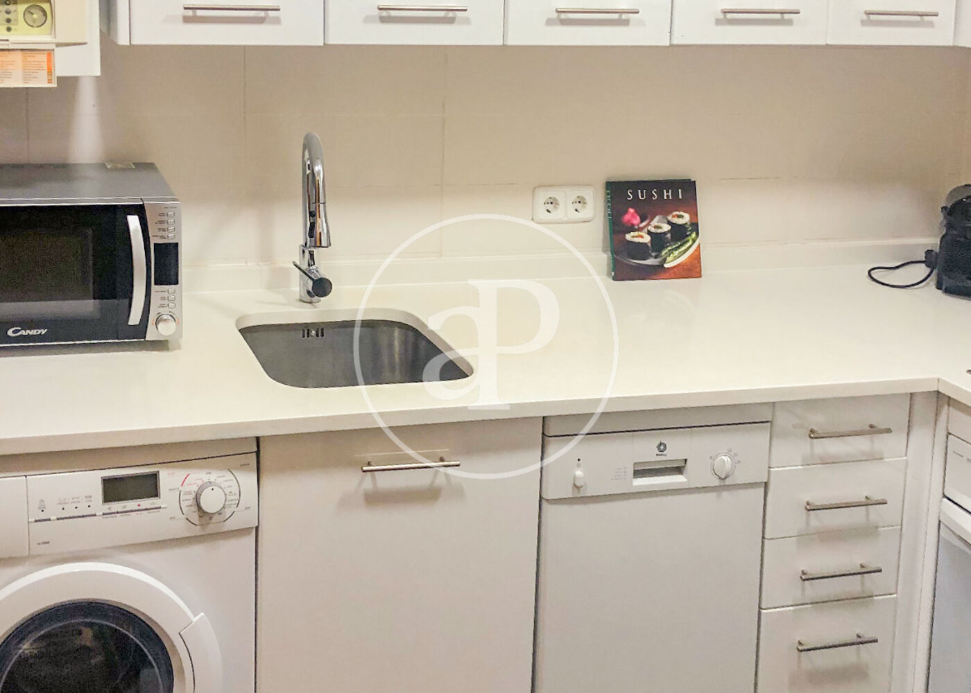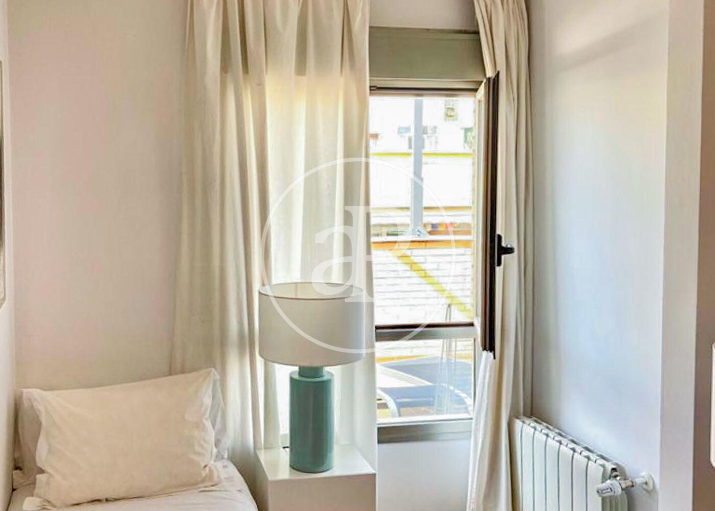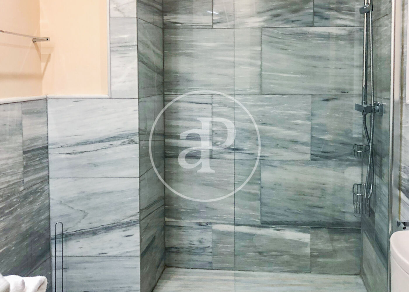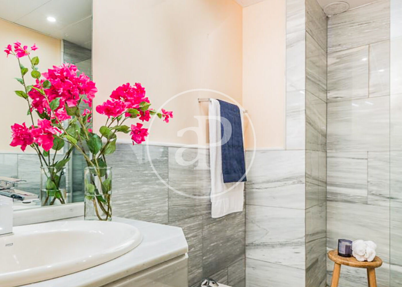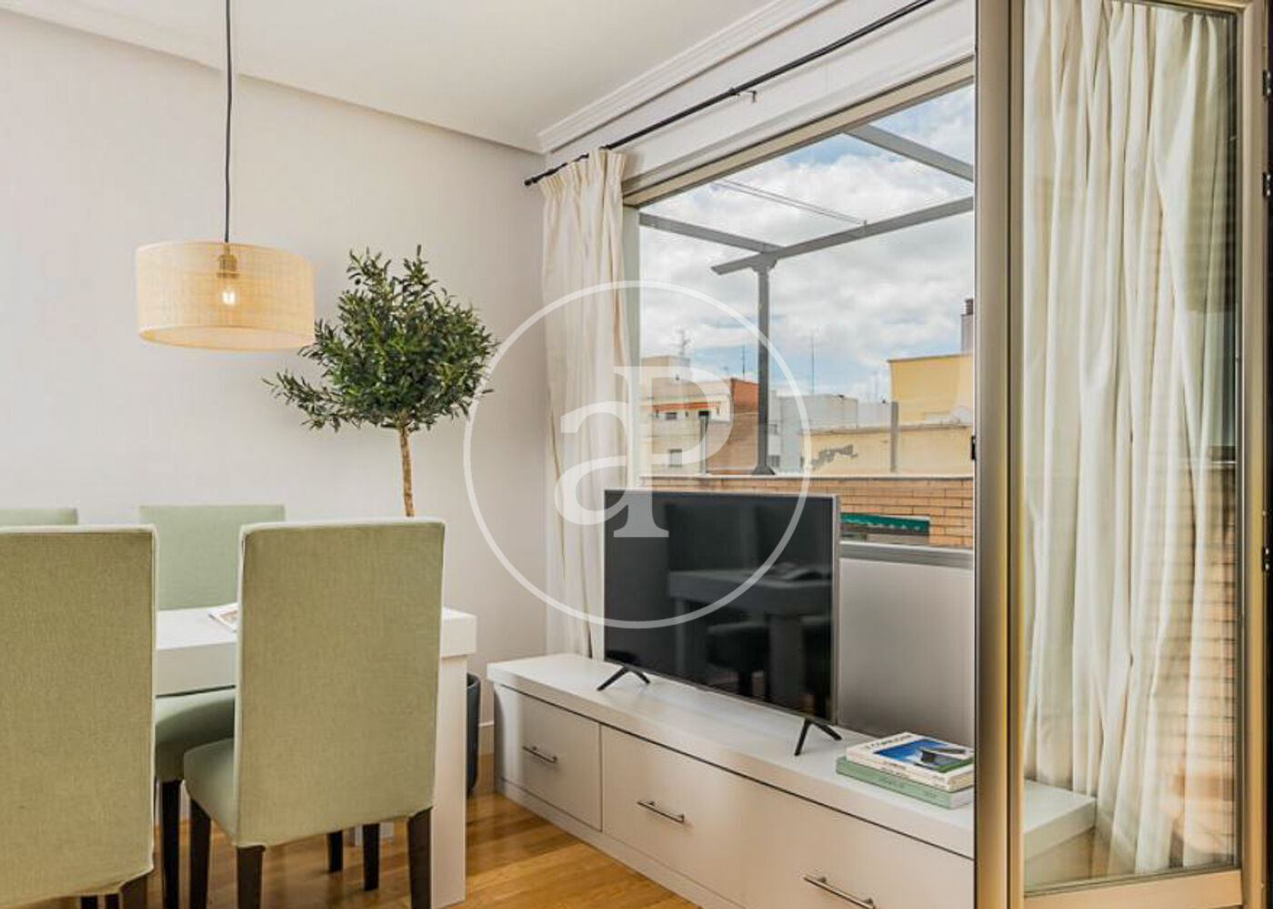 Se trata de una 6ª planta exterior de 78 m² según catastro, de los cuales 62 m² son de vivienda más una terraza de 20 m². El ático superluminoso cuenta con dos habitaciones exteriores y dos baños completos con ducha, el principal en suite, salón comedor con salida a la amplia terraza y cocina independiente. En la terraza podemos encontrar una mesa para 6 comensales que se puede utilizar tanto en verano como en invierno gracias al estupendo toldo y dos tumbonas perfectas para tomar el sol. Los materiales usados son de alta calidad, bonitas puertas de madera, tarimas en el suelo de toda la casa, menos en los baños que se ha empleado porcelánico y mármol. Además, cuenta con una plaza de parking para coche grande en el mismo edificio. Esta vivienda tiene alta rentabilidad por su concepto de lujo y diseño, en la actualidad está alquilado a perfiles de alto poder adquisitivo, aunque igualmente puede estar orientado a cliente final quiera vivir en un barrio agradable y residencial con comercios, restaurantes y muy bien comunicado.