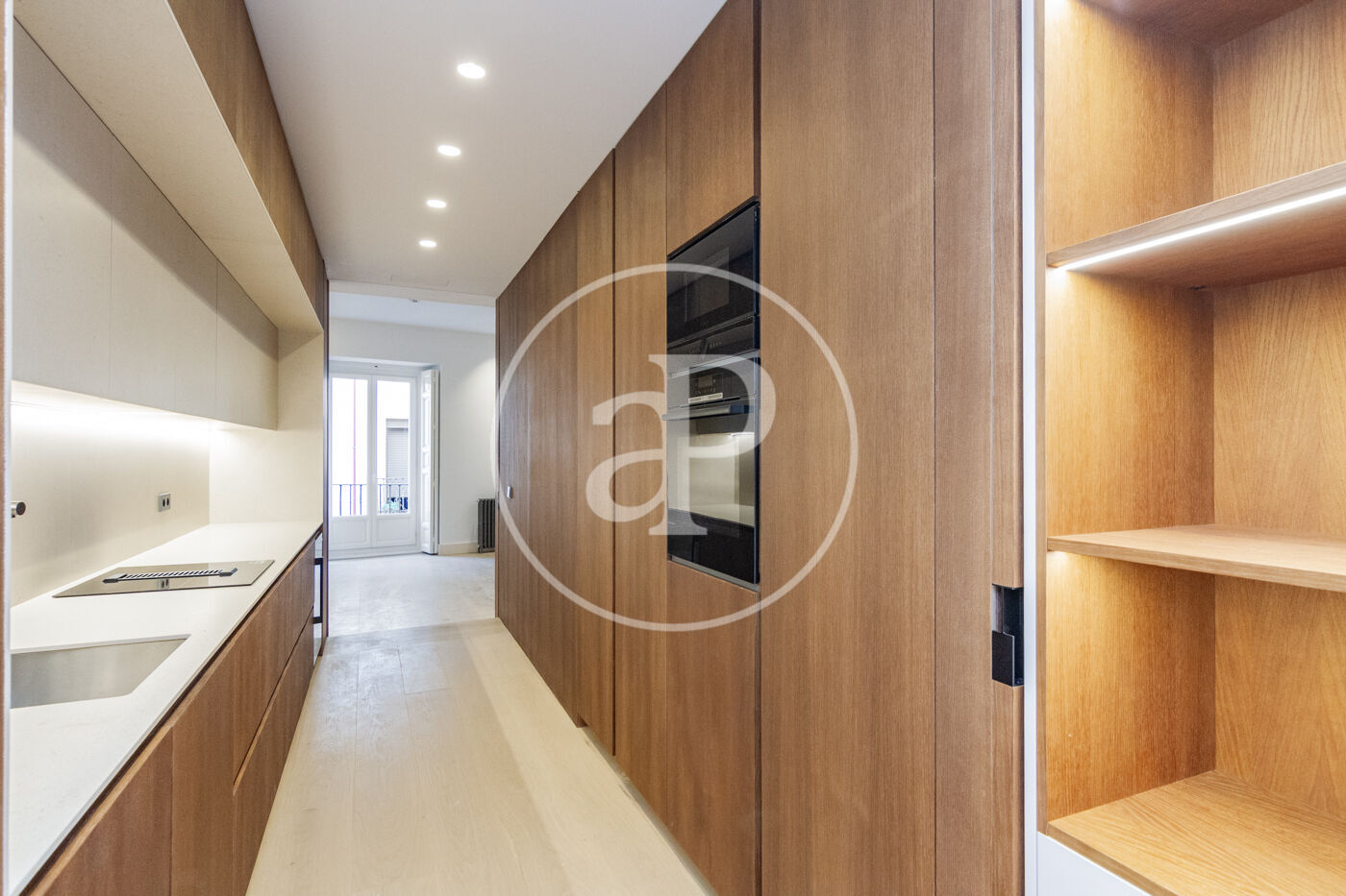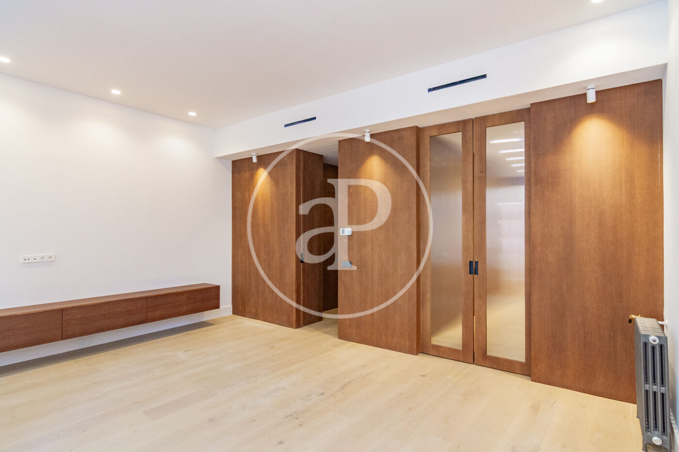 La reforma integral ya terminada se ha ejecutado con especial atención al detalle: suelos de roble natural, iluminación indirecta cuidadosamente diseñada y sistema de climatización por conductos con control por zonas, garantizando el máximo confort durante todo el año.