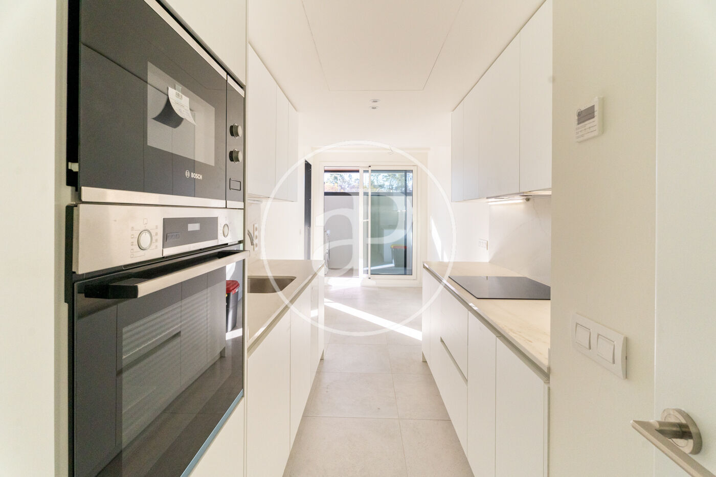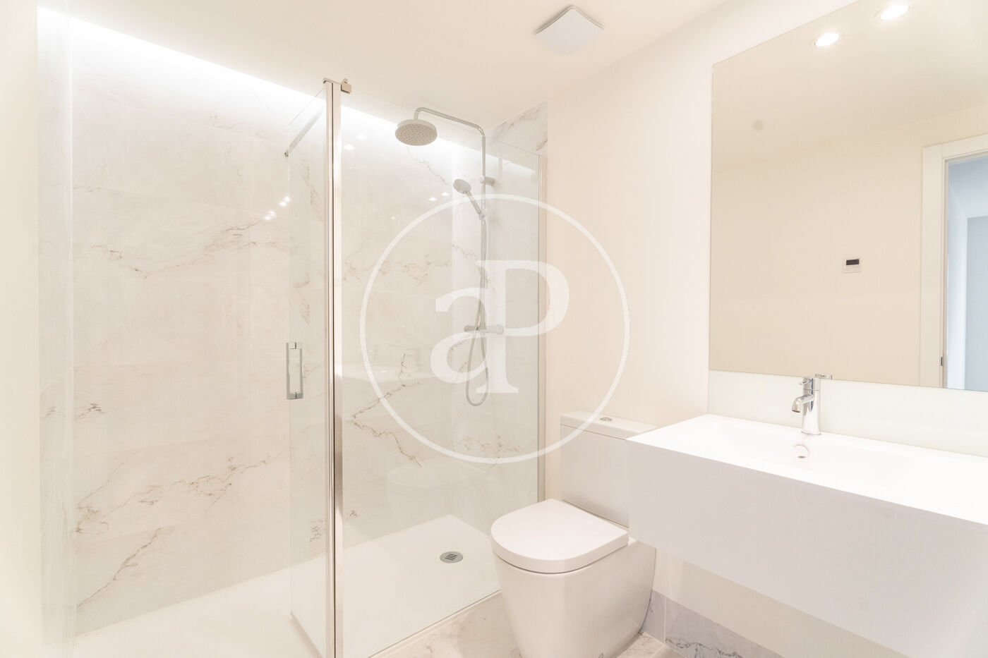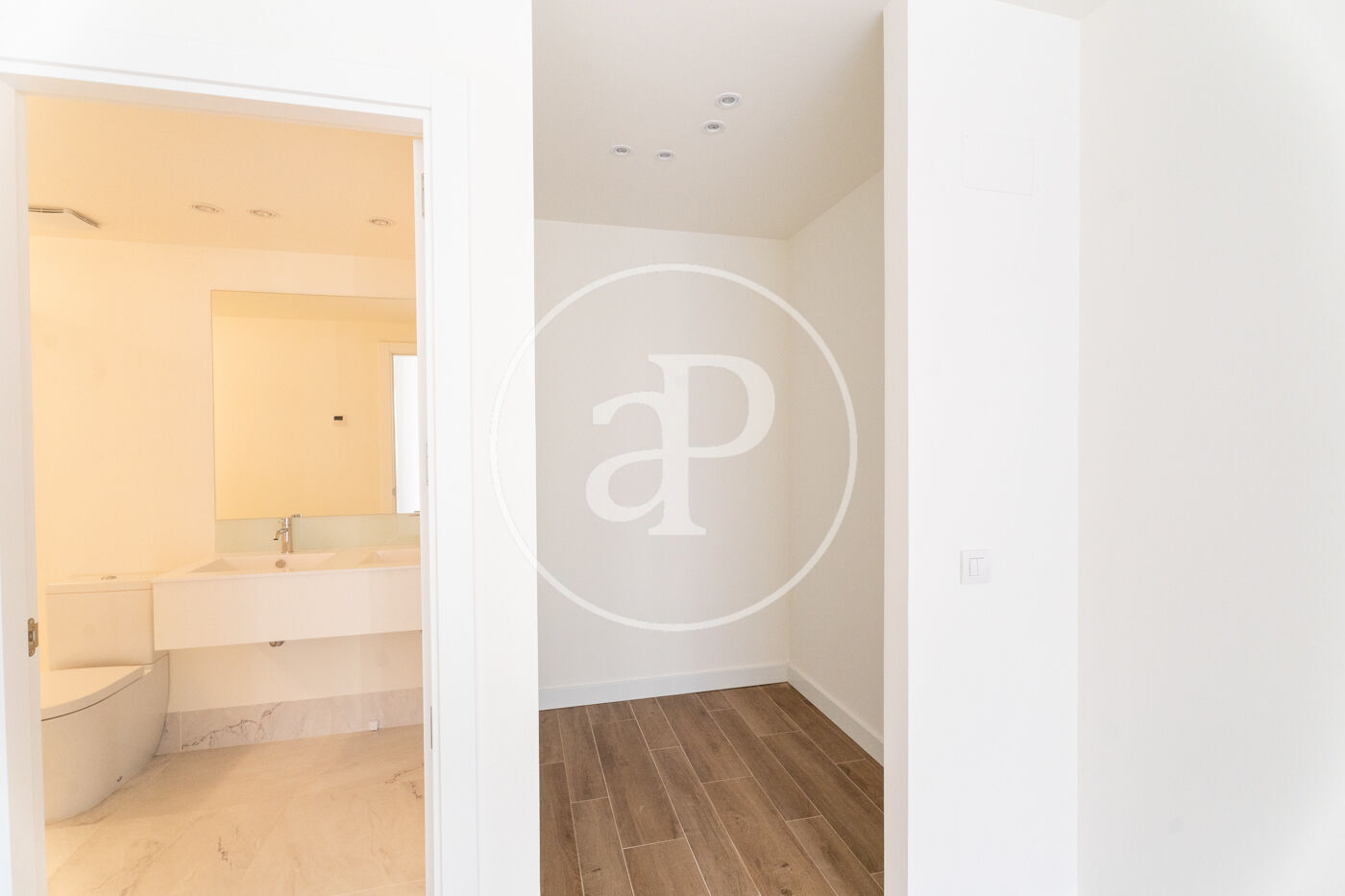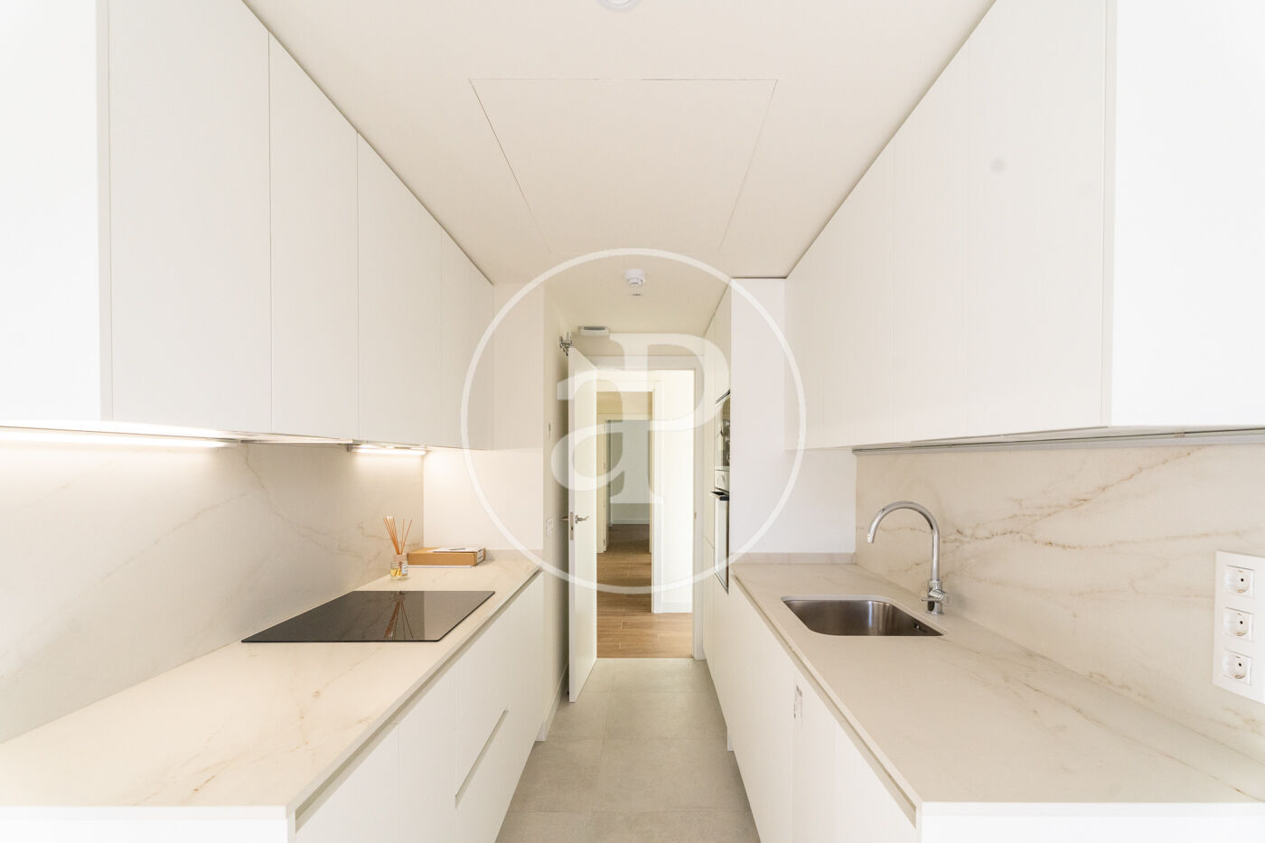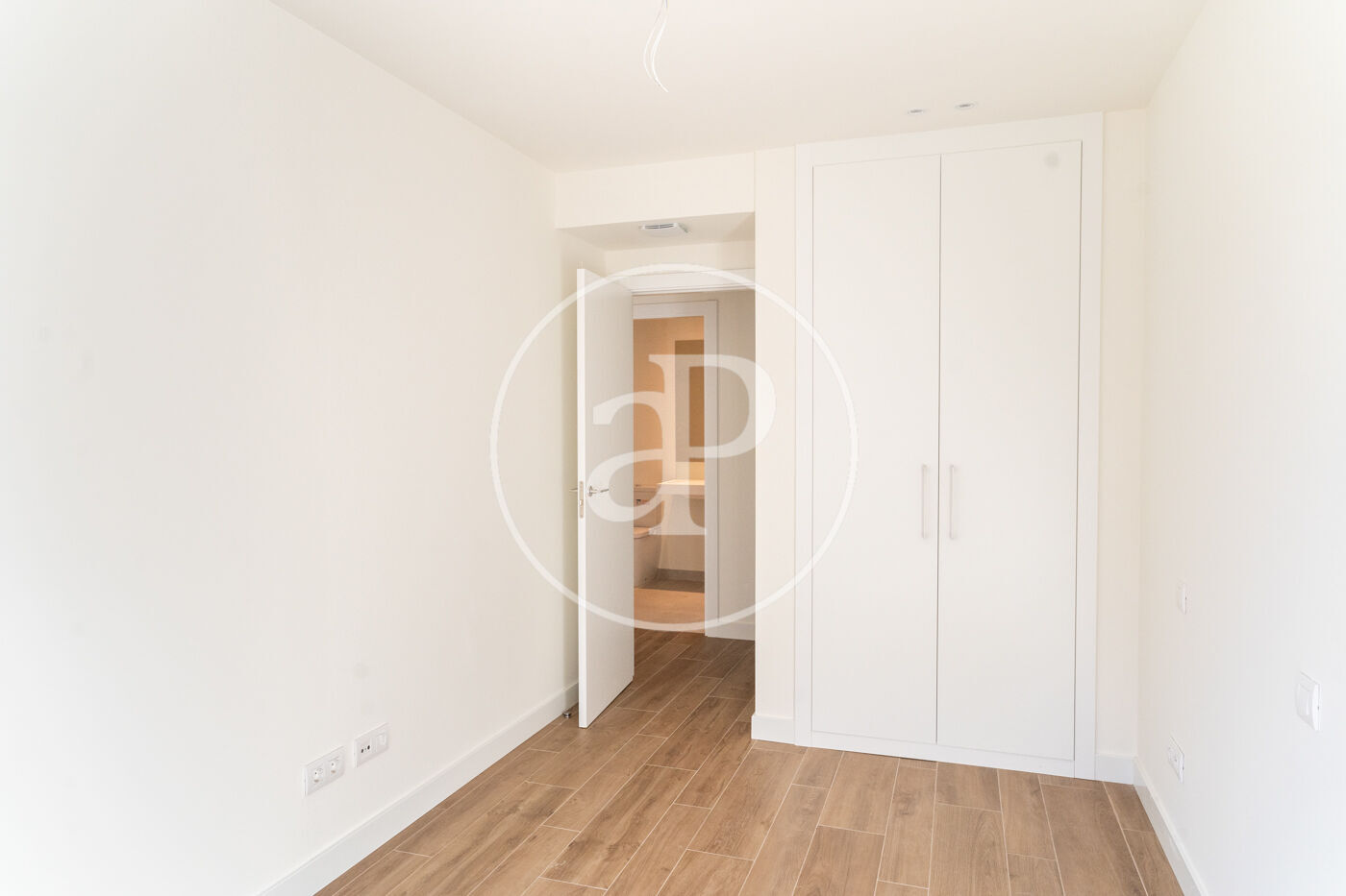 Confortable vivienda reformada a estrenar en el exclusivo barrio de Ruzafa. En la propiedad se ha llevado a cabo una reforma íntegra por un arquitecto en la que se ha utilizado materiales de gran calidad. La vivienda es muy luminosa debido a su extraordinaria orientación, Sur-Este y su magnífica altura (un quinto piso). Además, la altura de sus techos contribuye a crear una sensación mayor de amplitud. Cuenta con una excelente distribución compuesta por un amplio salón comedor en dos ambientes con cocina integrada ( concepto open plan ) el cual tiene ventanales con vistas despejadas. La cocina disfruta de una galería que asoma a un patio interior donde se ubica el lavadero. Ha sido diseñada completamente a medida y se encuentra equipada con electrodomésticos Bosch y encimera de Neolit. La zona de noche se compone de dos habitaciones dobles y dos cuartos de baño completos con ducha de la marca Roca. En la vivienda se ha querido conservar el suelo hidráulico original con la intención de realizar una reforma de contrastes, salvo en el dormitorio principal y en los baños, cuyas estancias se han vestido con un exclusivo microcemento. Este material, de gran resistencia y belleza, confiere a la propiedad un toque moderno atemporal que combina a la perfección con el resto de materiales que componen la vivienda. Los cuartos de baño gozan de un diseño moderno y griferías encastradas de la marca Tres. Además dispone de amplios ventanales de cristal doble climalit con persianas automáticas en las habitaciones y aire acondicionado por conductos. Igualmente, se ofrece la posibilidad de adquirir la vivienda completamente amueblada (precio de mobiliario a consultar). La calidad y el original diseño de esta propiedad ha recibido reconocimiento en diversas revistas internacionales de arquitectura en la que ha sido publicada. Esta fantástica vivienda está situada en la zona de moda de València por excelencia (Ruzafa), a pocos minutos de la Plaza de Toros, el Ayuntamiento, la emblemática calle Colón, y a tan solo dos minutos del Nuevo Parc Central y cuenta con todos los servicios en las inmediaciones. Por otro lado, alrededor de la propiedad encontramos su reconocido Mercado, numerosos y originales comercios, gimnasios, colegios, guarderías o maravillosos restaurantes y bares con exquisitas terrazas dónde disfrutar al sol. La zona está completamente conectada por el transporte público, con una excelente conexión a la playa y a todas las direcciones. Nos encontramos ante una excelente oportunidad de adquirir una vivienda reformada lista para entrar y poder disfrutarla desde el primer momento. No deje escapar esta oportunidad. Concierte una visita con nosotros y venga a visitarla. Estaremos encantados de atenderle.