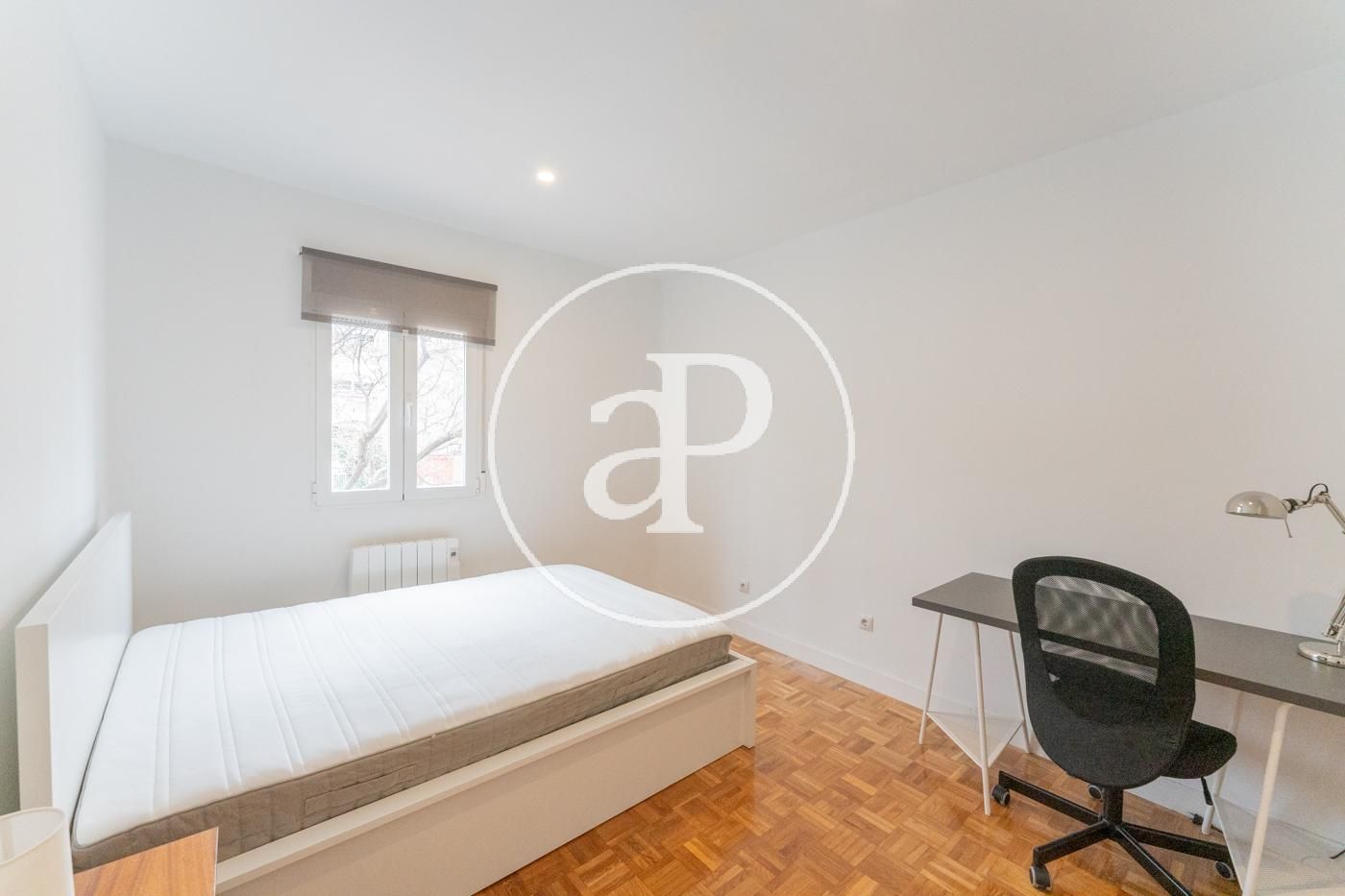 En alquiler piso amueblado nuevo a estrenar, enfrente de las torres del IE totalmente exteriores, dos dormitorios 1 cuarto de baño con ducha. Muebles nuevos, decoración moderna y funcional. Salón con cocina integrada, la cocina completamente equipada. Dormitorios con camas dobles en los dos, muy amplios y con mucha luz , los dos tienen zona de trabajo con escritorio. Armarios empotrados, calefacción individual. Disponible para alquiler de más de 1 año. Disponibilidad inmediata. Localización perfecta para estudiantes del Instituto de Empresa, bien comunicado por metro y autobús. Zona comercial con todo tipo de pequeño comercio y grandes superficies. Edificio con ascensor.