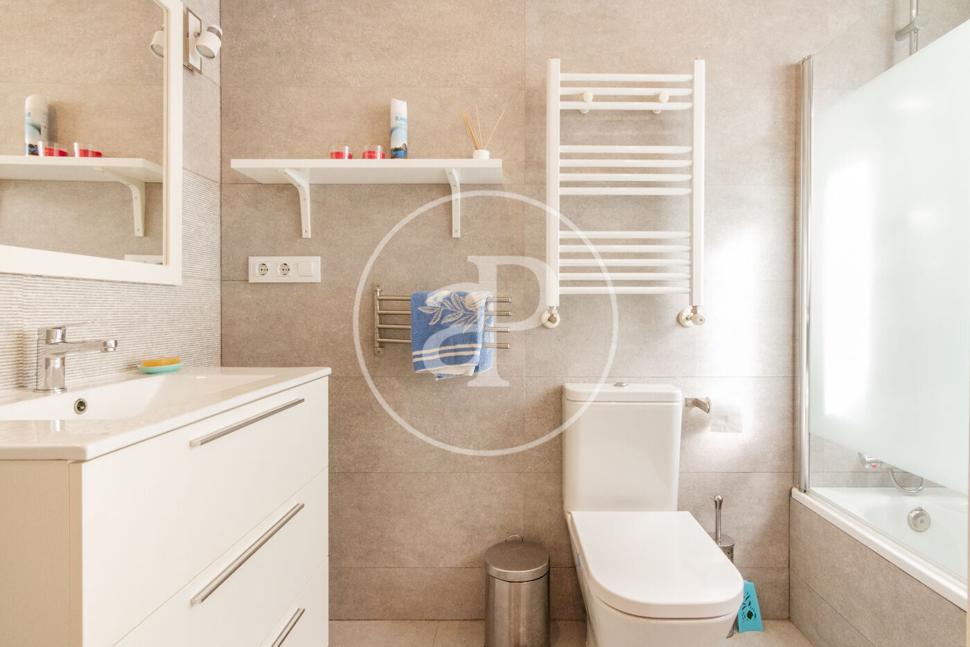 La vivienda cuenta con 3 dormitorios, (uno doble y dos individuales), cuenta con dos baños completos, uno en suite (uno con ducha y otro con bañera). El piso se entrega amueblado y con la cocina completamente equipada, con electrodomésticos de primera marca (Vitro, nevera, lavadora, lavavajillas y horno).