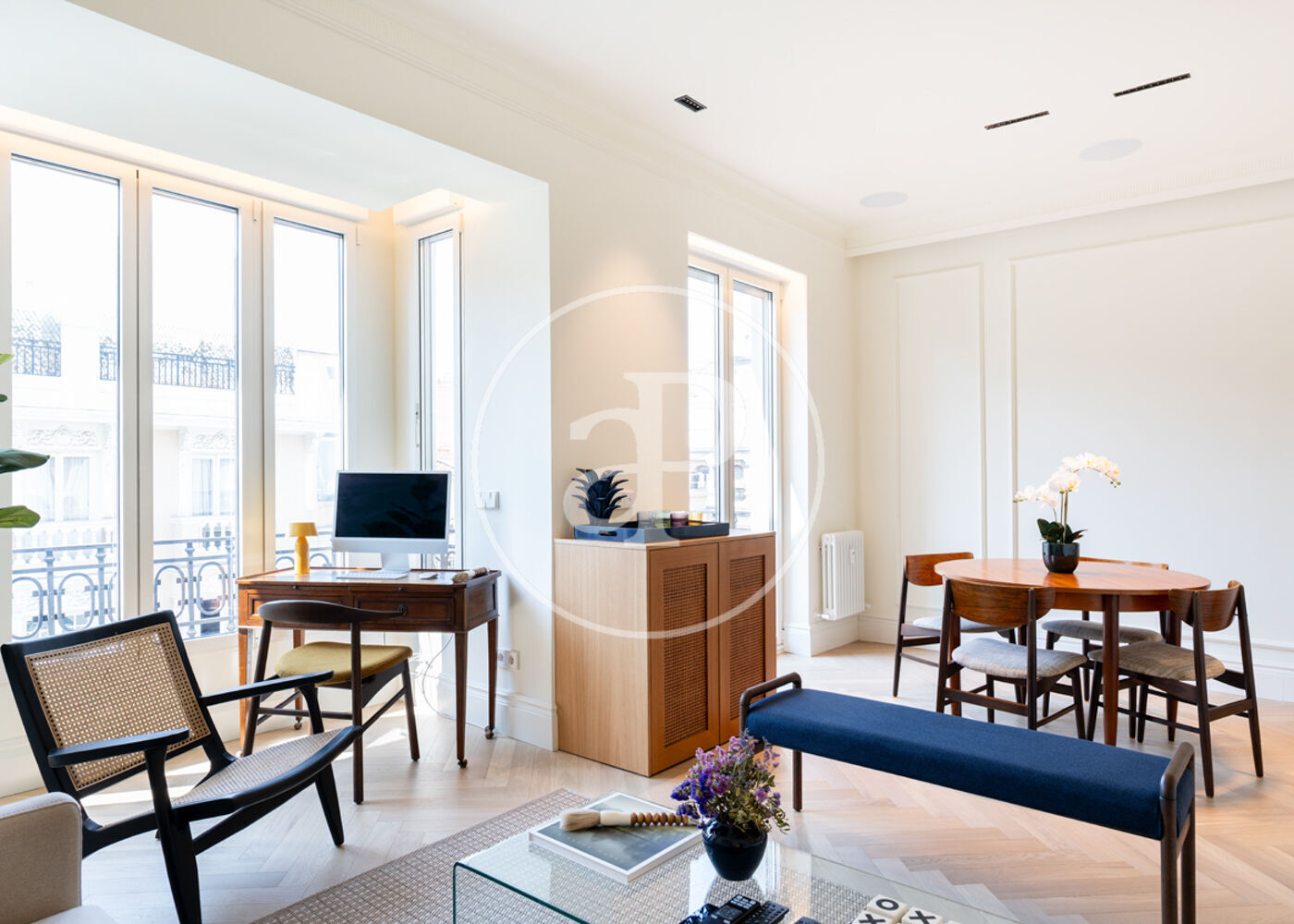 Vivienda ubicada en la Calle de Castelló, en pleno Barrio de Salamanca, una de las zonas más elegantes y demandadas de la capital, caracterizada por sus edificios señoriales, su amplia oferta comercial y gastronómica y su excelente comunicación con el resto de la ciudad.