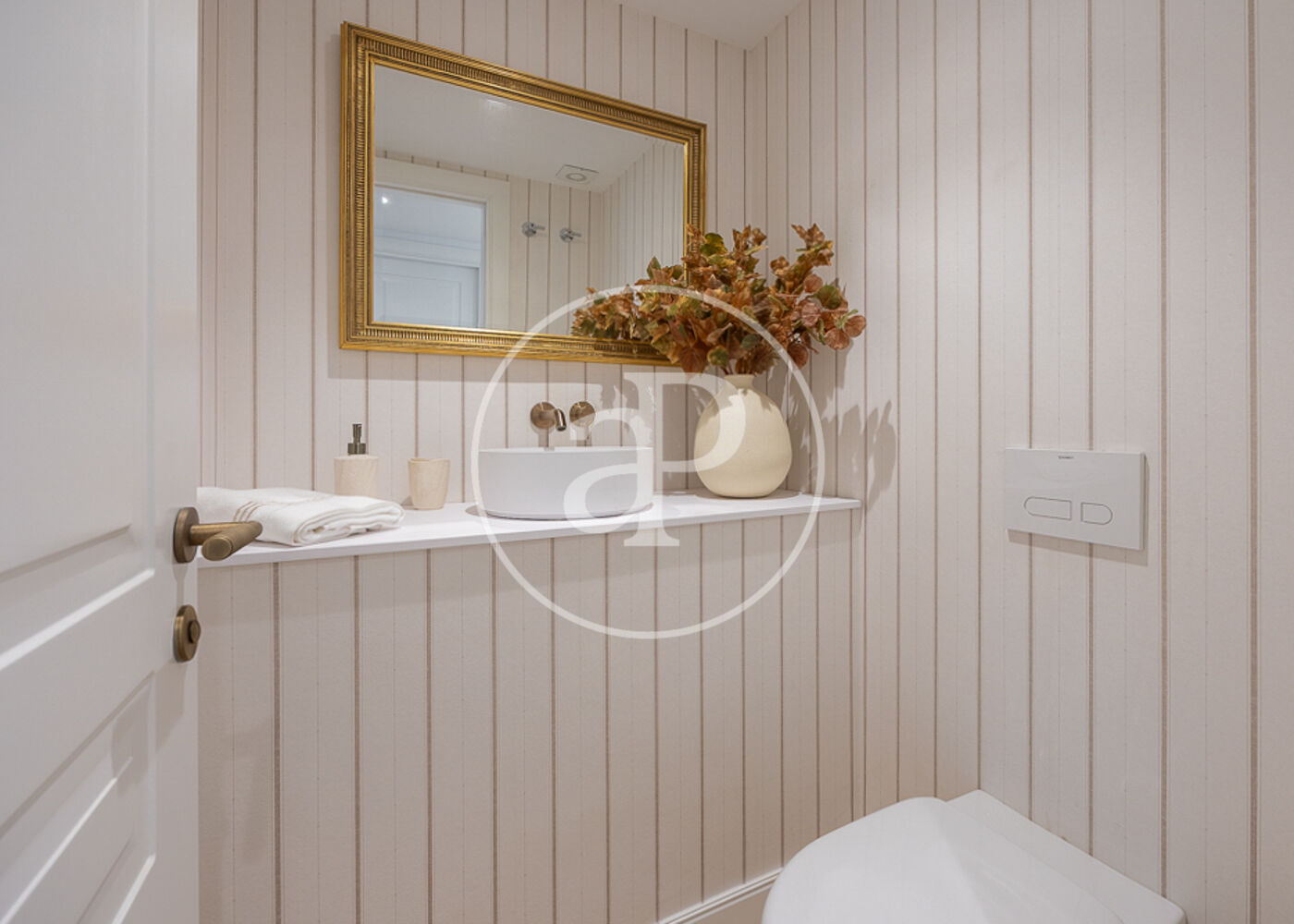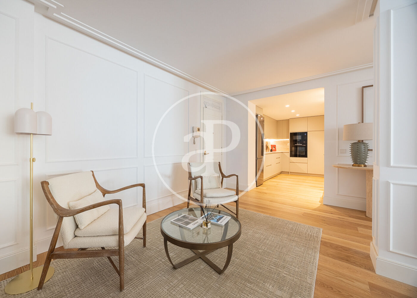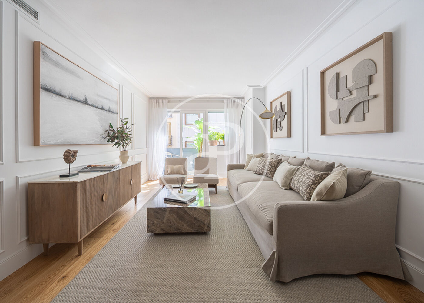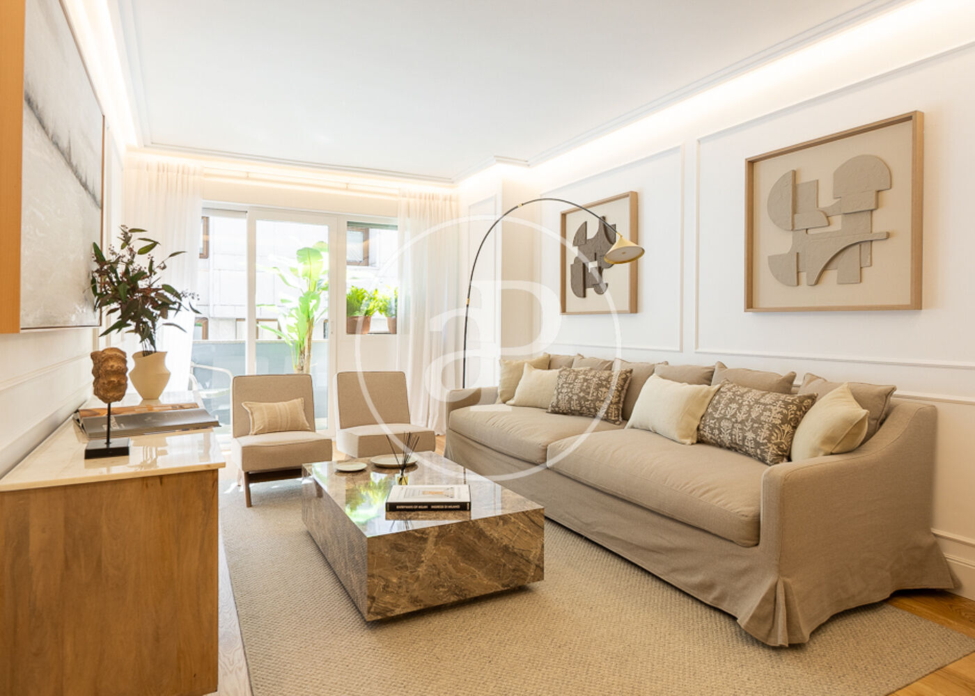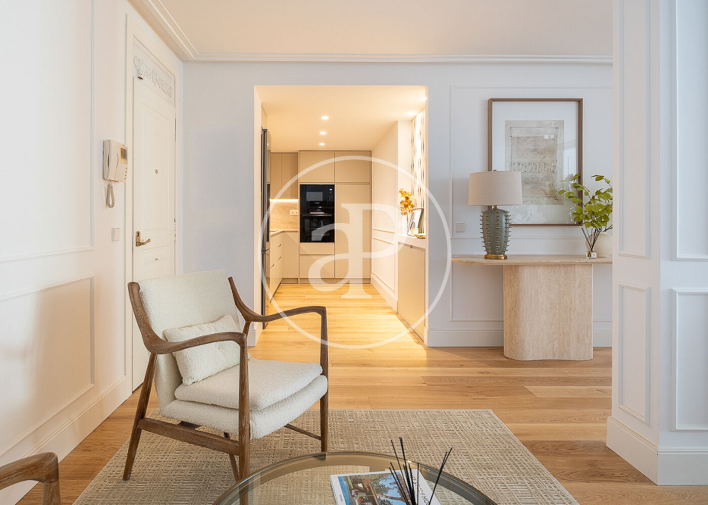 aProperties presenta vivienda de 135 m² según catastro, a estrenar, amueblada, en pleno corazón del barrio de Recoletos – Salamanca, en la calle Núñez de Balboa a escasos minutos andando del parque de El Retiro o del conocido callejón de Jorge Juan.