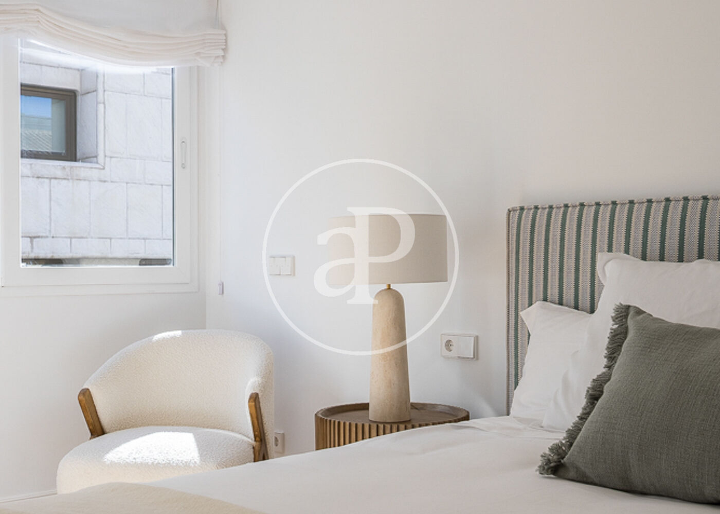 Es una reforma muy cuidada y estudiada, con altas calidades. Está situada en una finca moderna muy cuidada, con servicio de conserjería y con acceso directo a la plaza de garaje. Se vende amueblada.