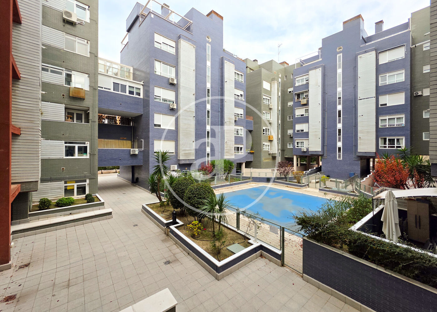 Ubicada en una de las zonas más demandadas de Madrid, el barrio de Sanchinarro, esta acogedora vivienda cuenta con un salón amplio y luminoso, gracias a sus grandes ventanales, y una cocina independiente totalmente nueva y equipada, que dispone de una terraza-tendedero cubierto donde se ubica la zona de lavandería.