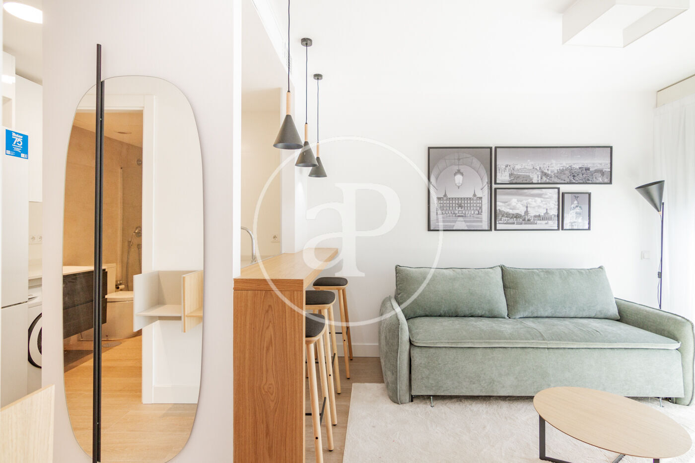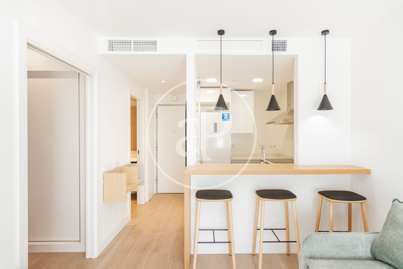 CORTA ESTANCIA Y LARGA ESTANCIA. Acogedor estudio en la Isla de Chamartín, perfecto para disfrutar de un ambiente moderno y tranquilo. Con excelentes conexiones a M30, M11, M40 y A1, y ubicado junto al metro y cercanías de Fuente de la Mora, este estudio es ideal para desplazarse por la ciudad con facilidad.