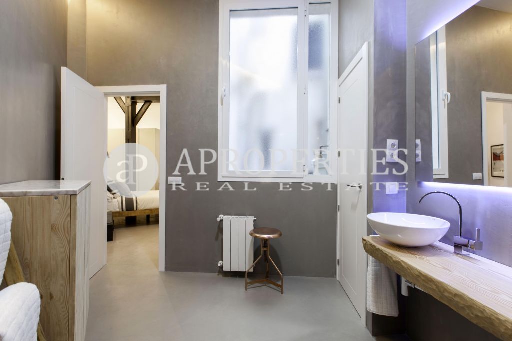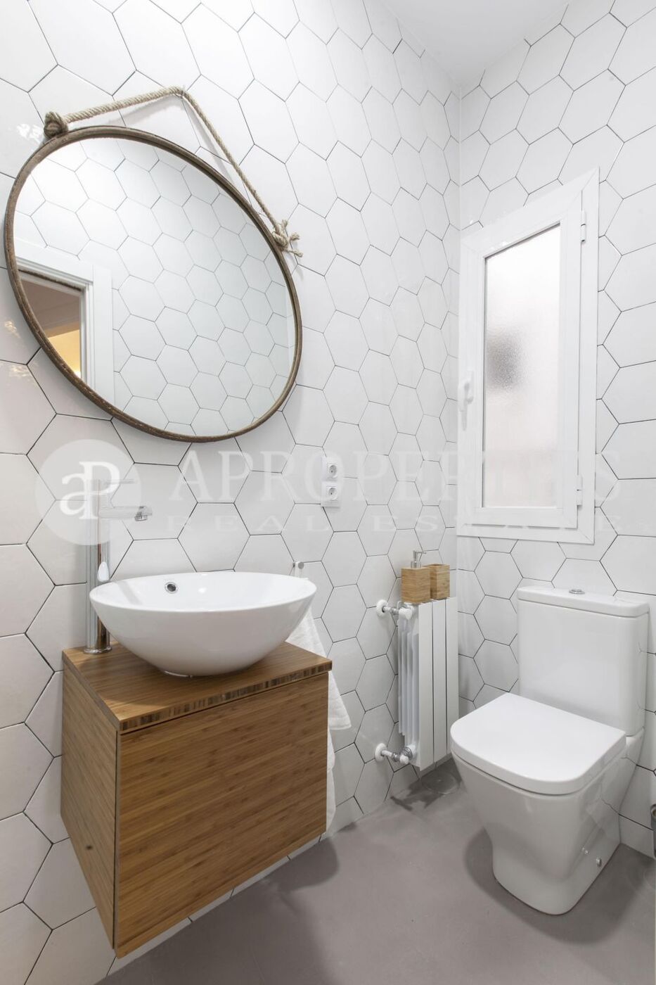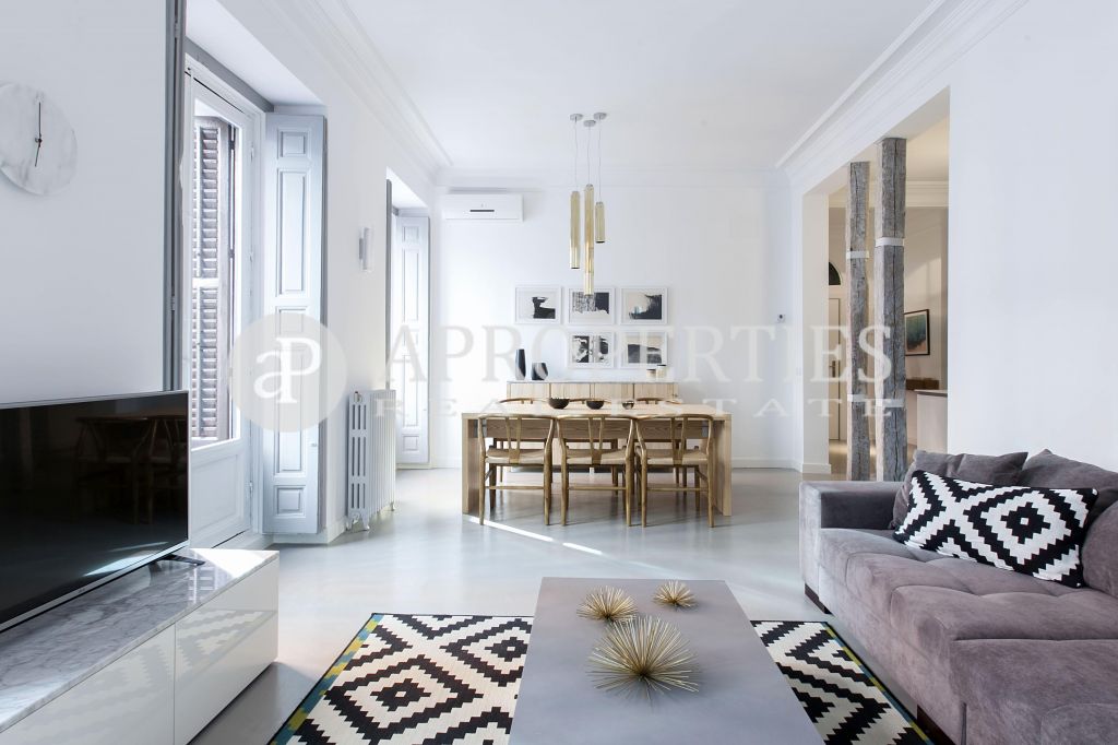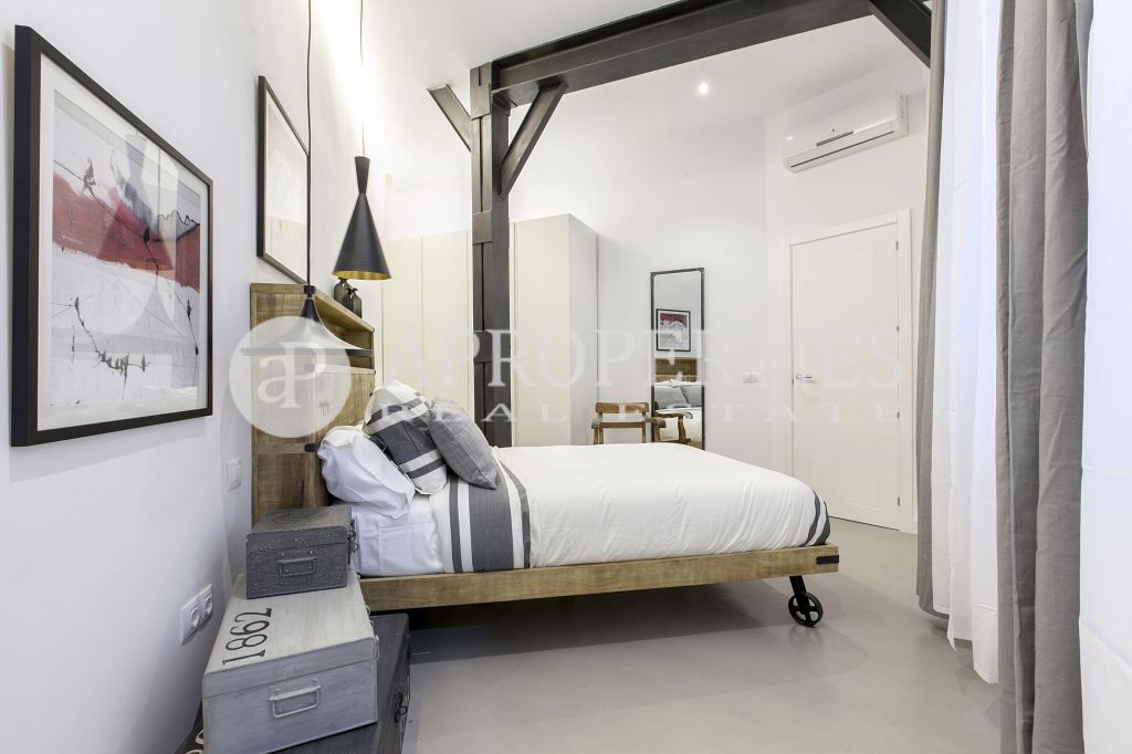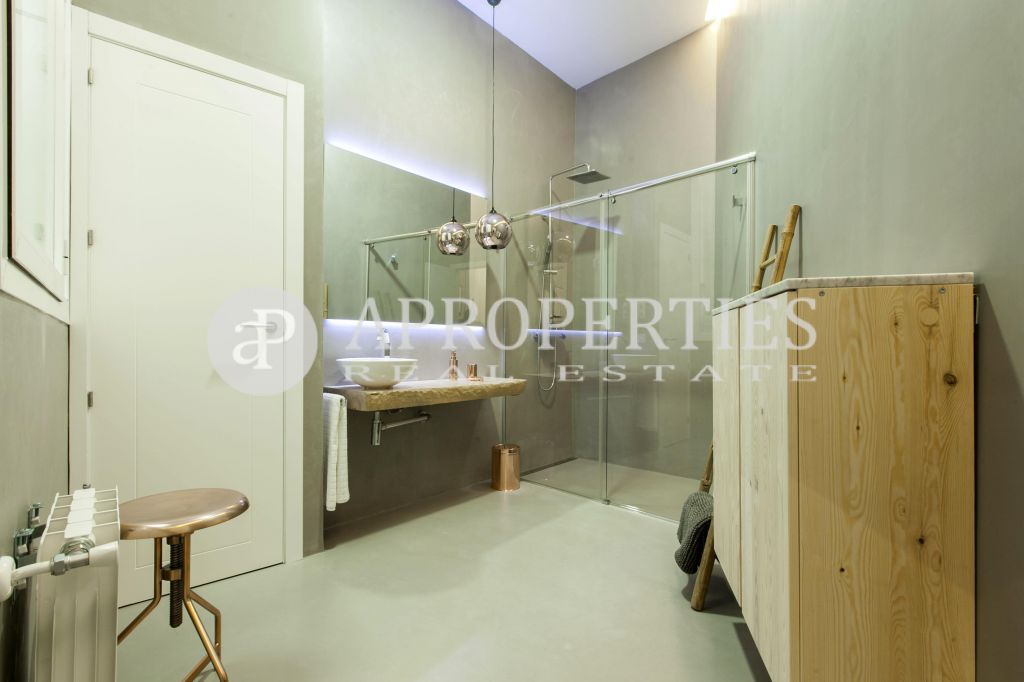 Magnífico piso reformado ubicado en el corazón de la capital, muy bien comunicado por transporte público y con numerosos servicios alrededor. La vivienda, de 130m² de superficie construida, es completamente exterior y muy luminosa con cinco balcones a la calle. El piso consta de una zona de día compuesta por salón comedor y cocina italiana equipada con electrodomésticos Bosh de última generación. La zona de noche se compone de un total de tres dormitorios y tres baños. El inmueble ha sido reformado con materiales de alta calidad y de diseño. Techos altos de 3,20 m, aire acondicionado en todas las habitaciones, sanitarios Roca, suelos de microcemento y ventanas exteriores de madera e interiores de aluminio con climalit.