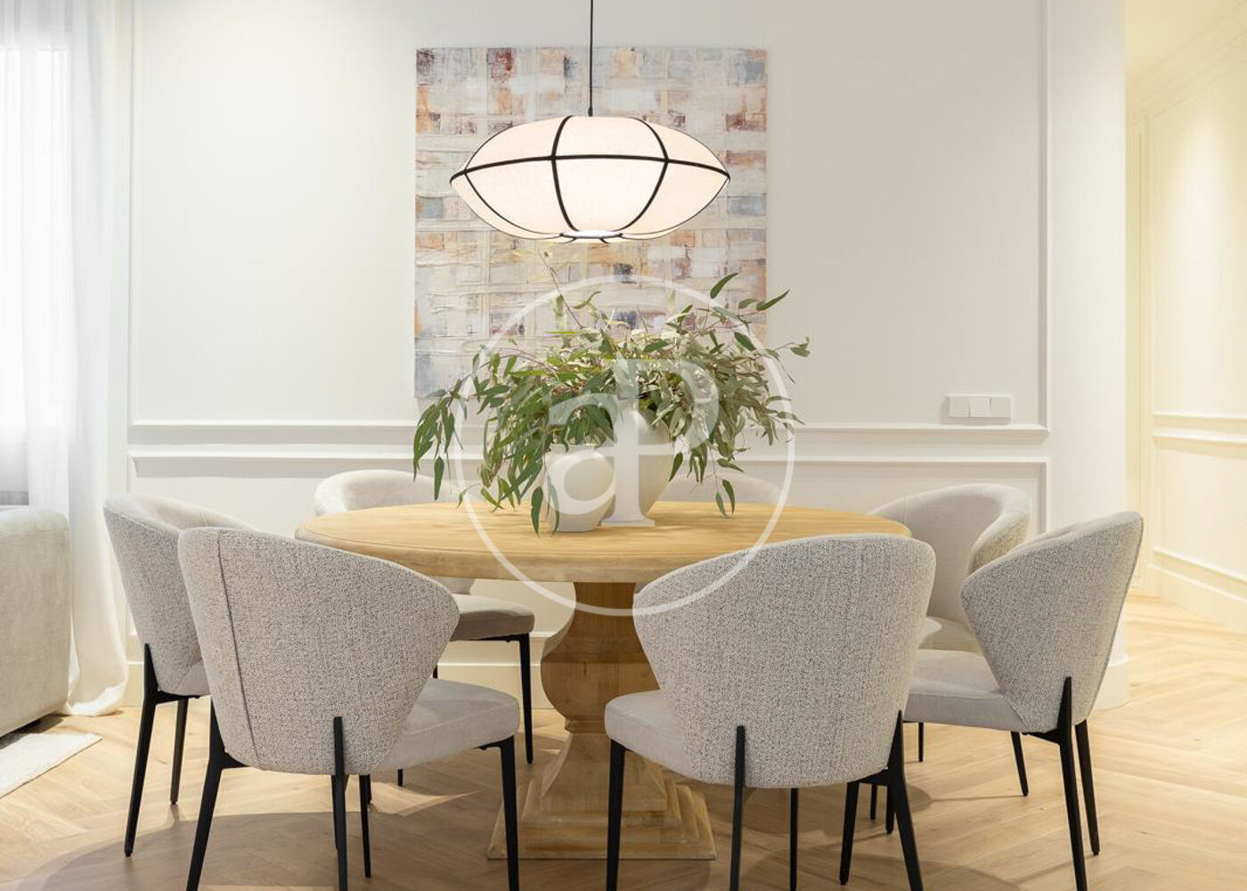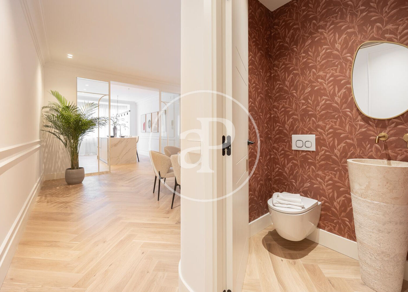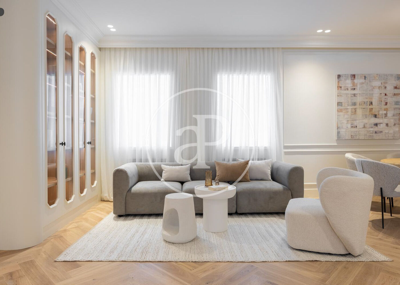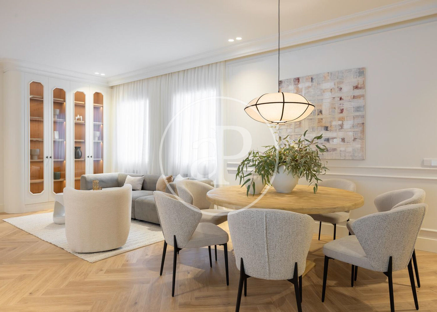 La zona de día cuenta con un magnífico salón comedor con tres grandes ventanales a la calle, abierto a una preciosa cocina de diseño Completamente equipada. Además, tiene un bonito aseo de cortesía y una práctica zona de lavandería.