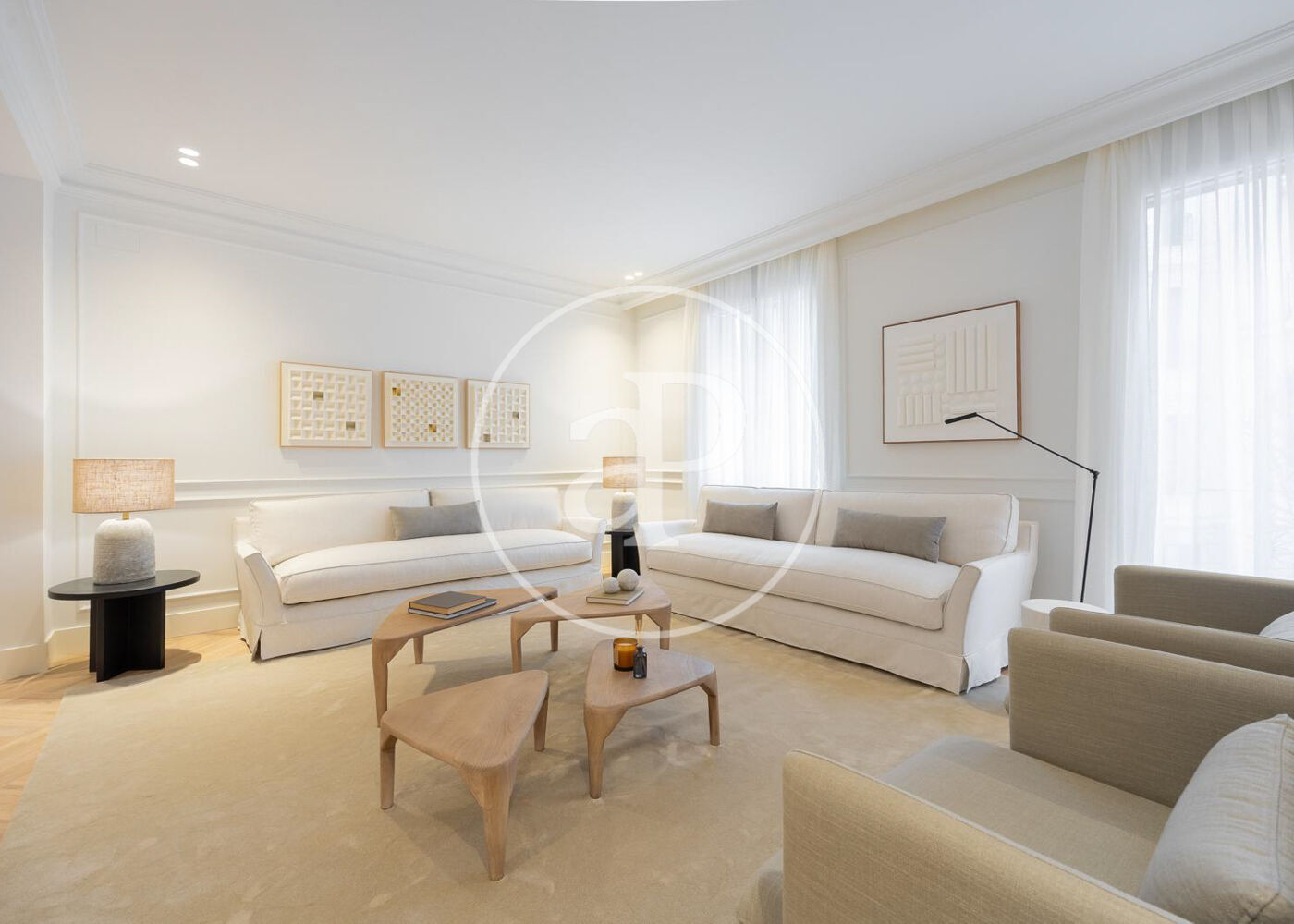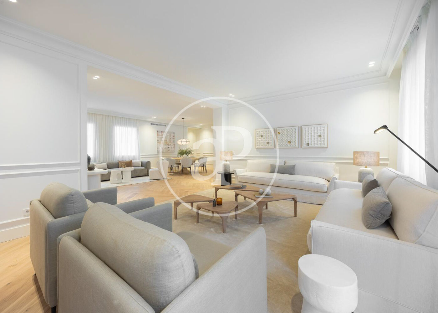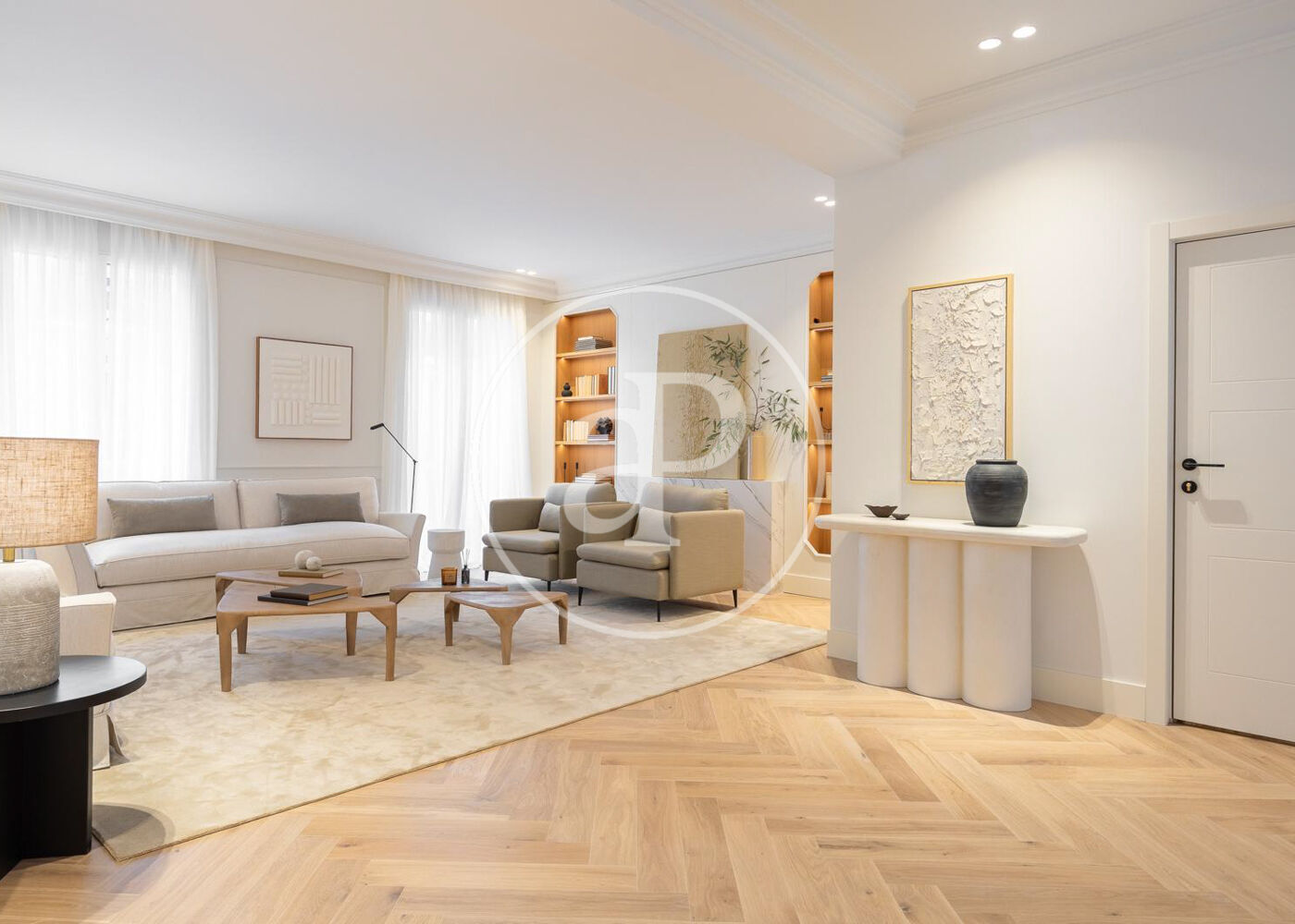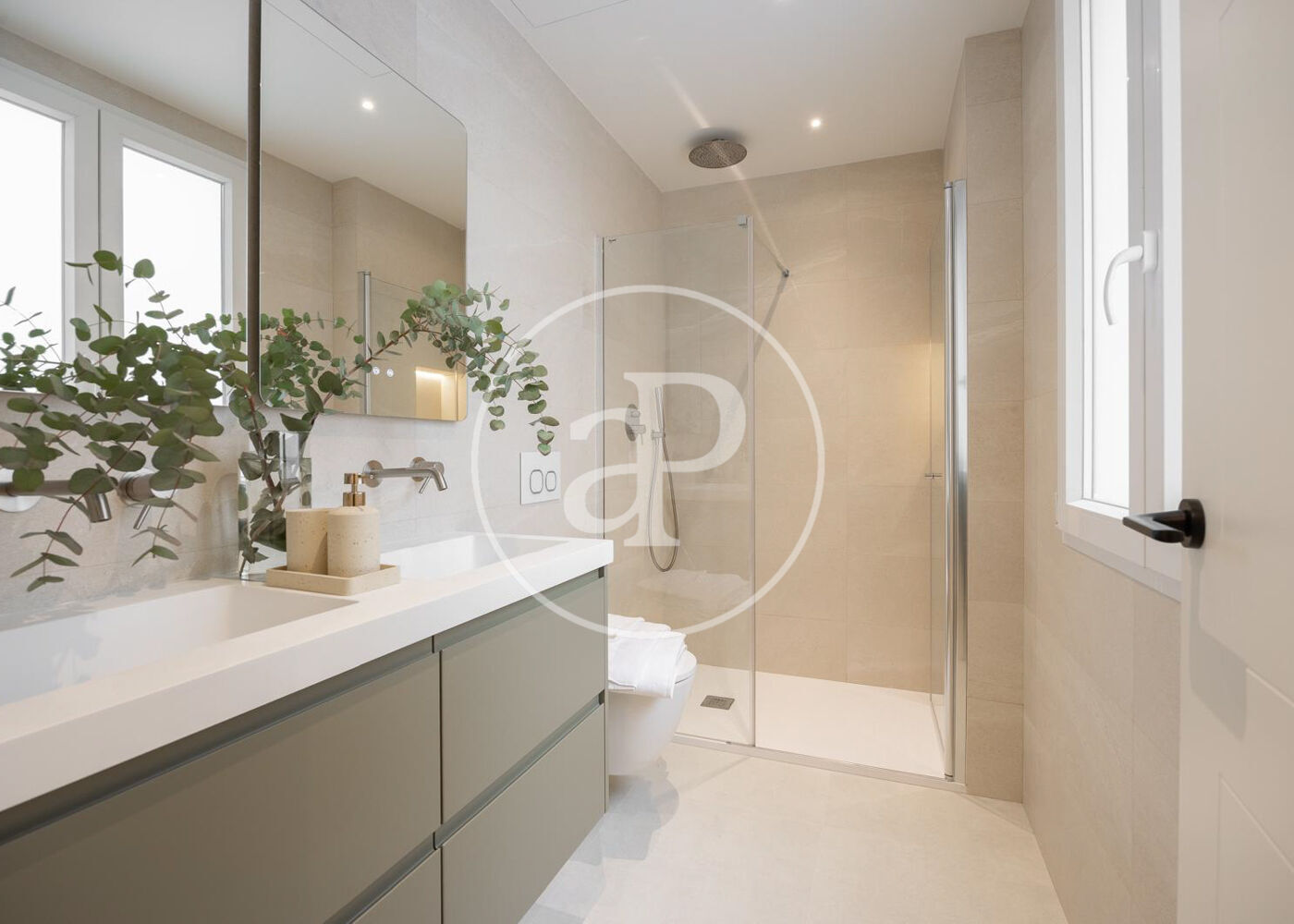 La zona de día cuenta con un magnífico salón comedor con tres grandes ventanales a la calle, abierto a una preciosa cocina de diseño Completamente equipada. Además, tiene un bonito aseo de cortesía y una práctica zona de lavandería.