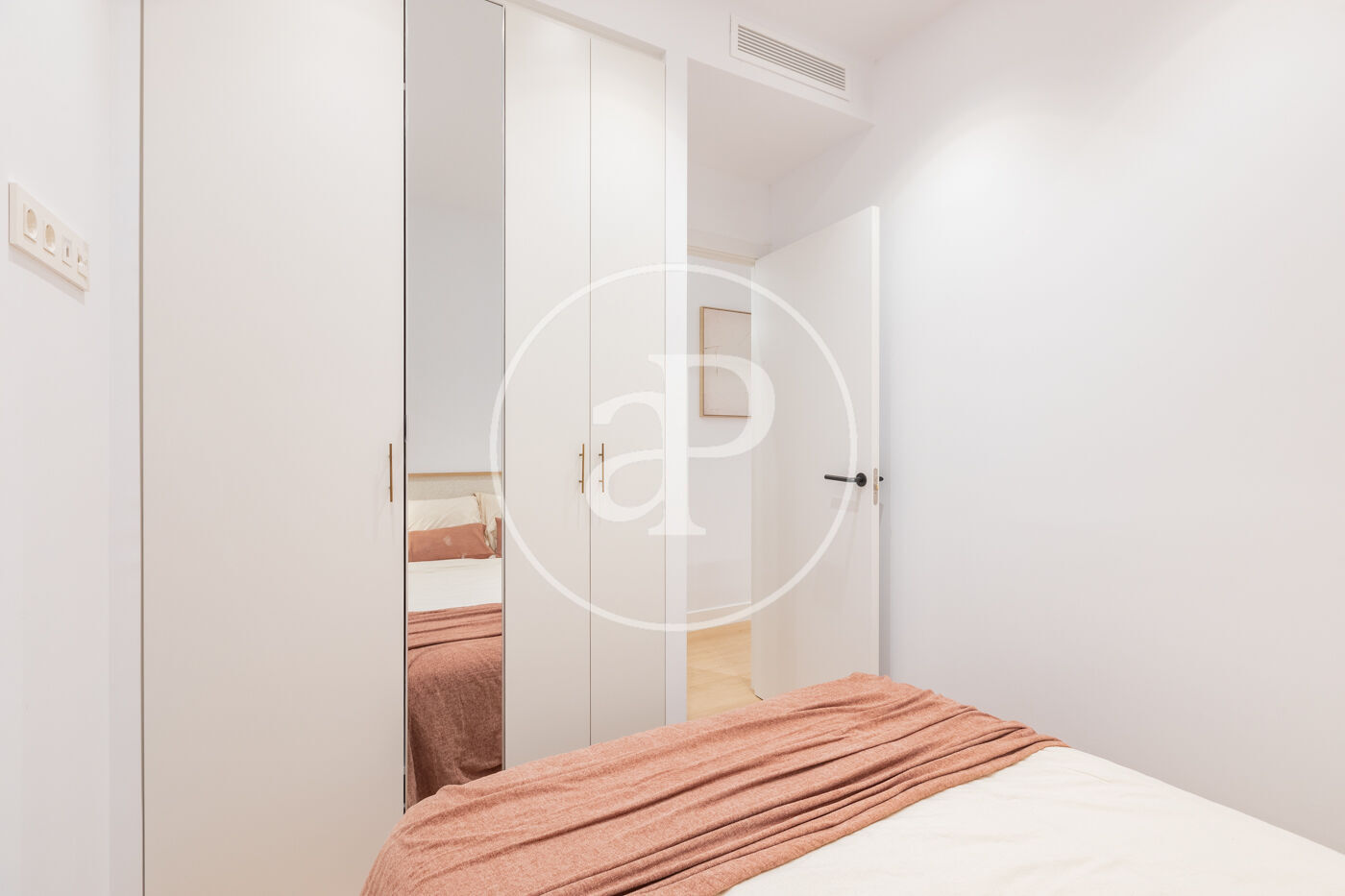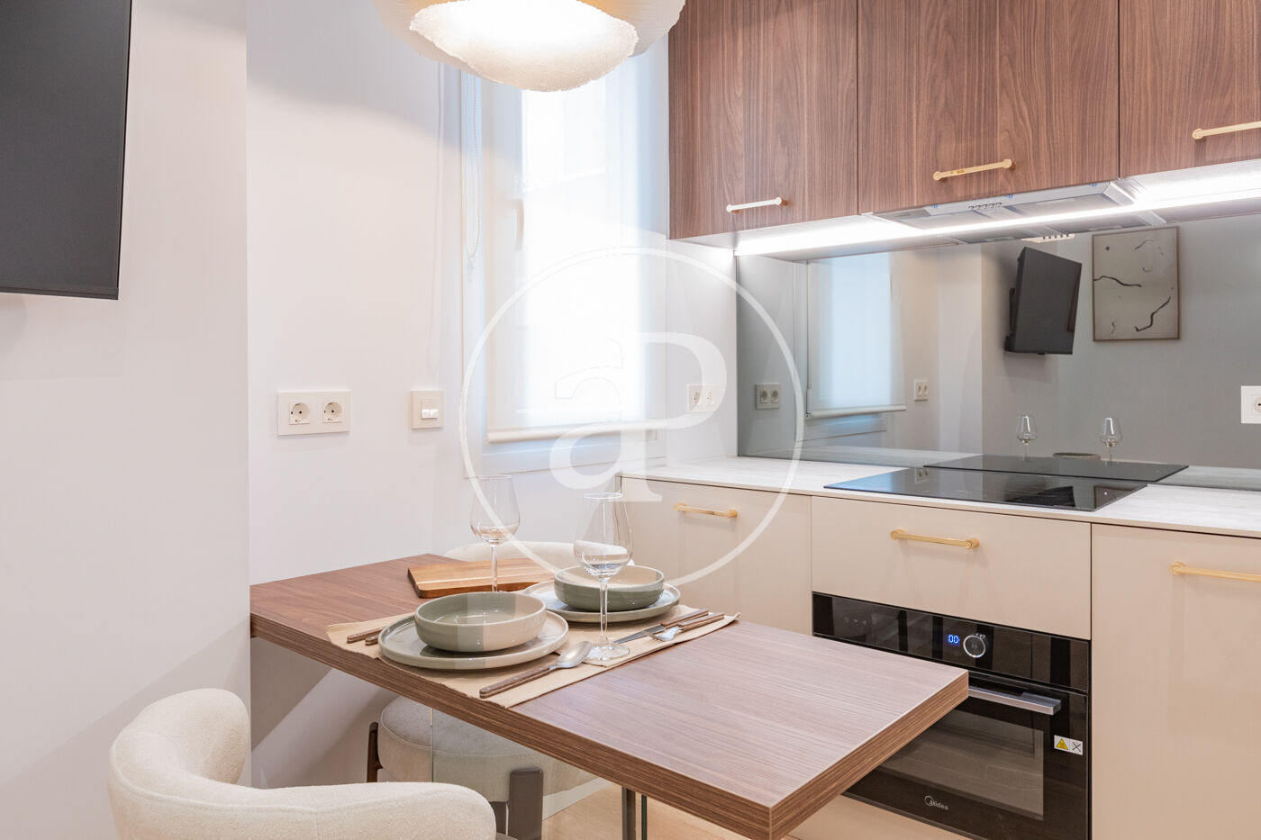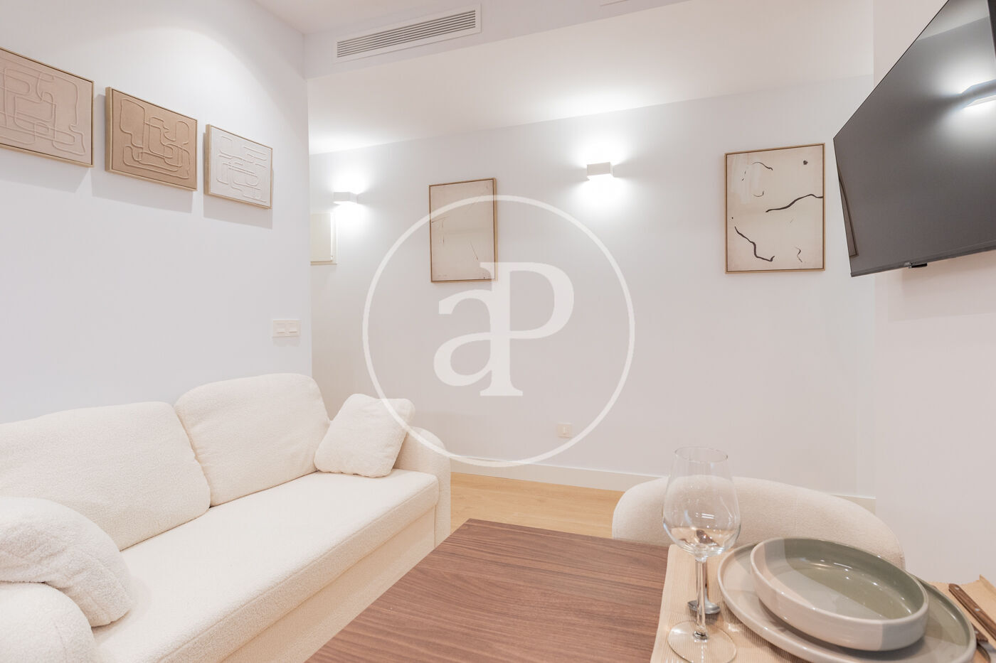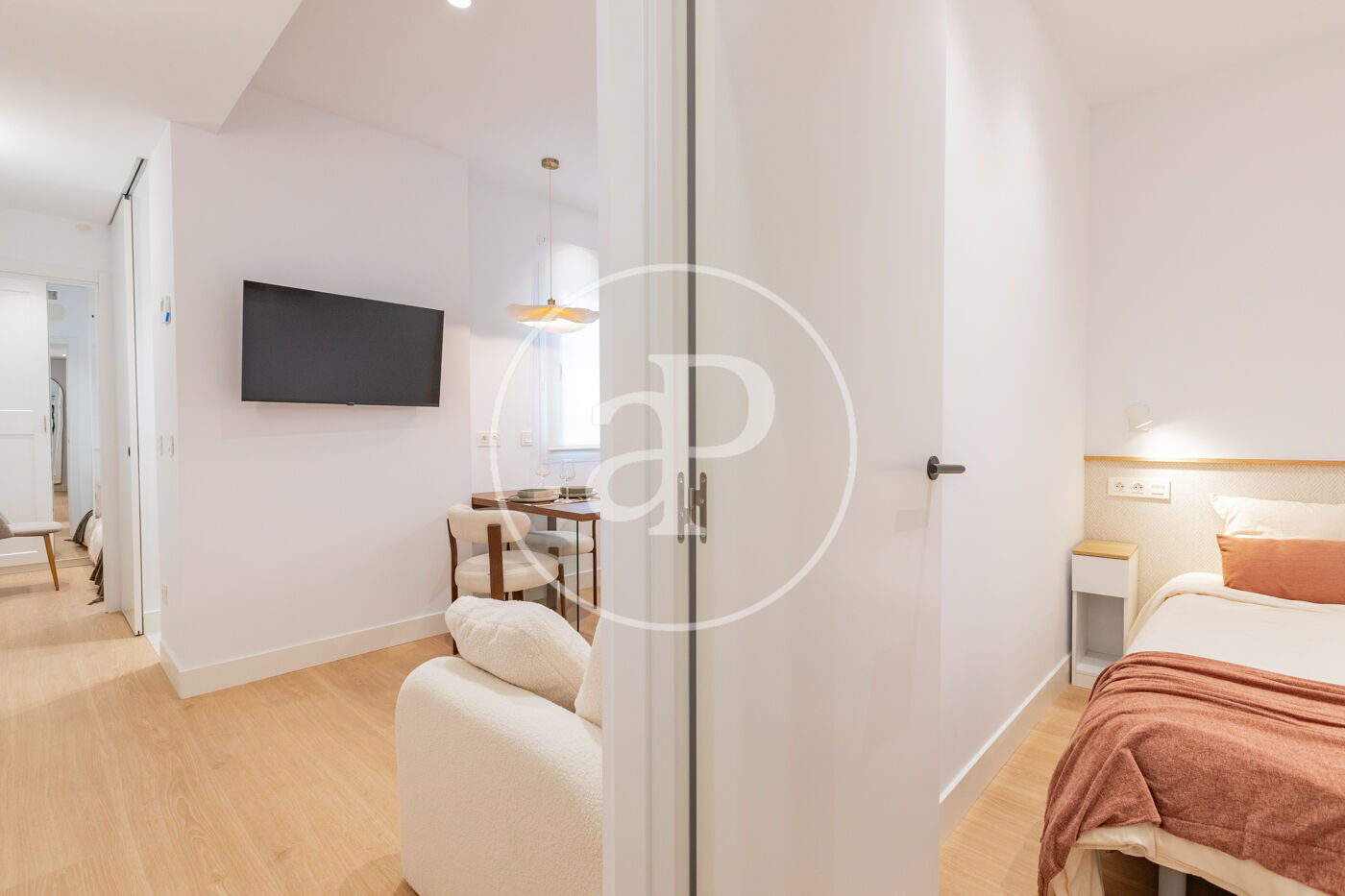 Reforma de un estudio de arquitectura que hace de un pequeño apartamento un lugar acogedor, cómodo y elegante en el centro de Madrid, Estancia minima de 4 meses. Pide tu cita.
