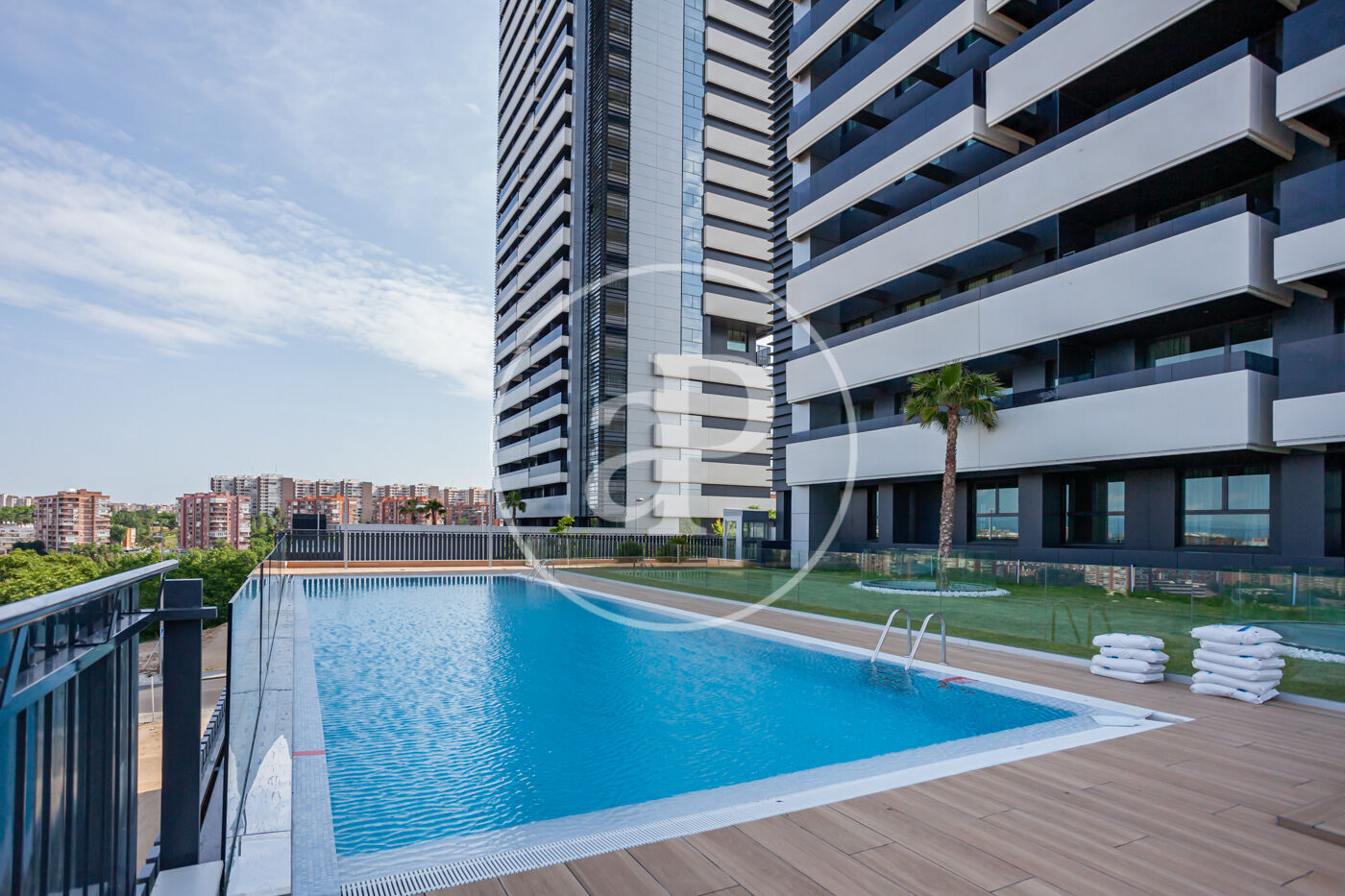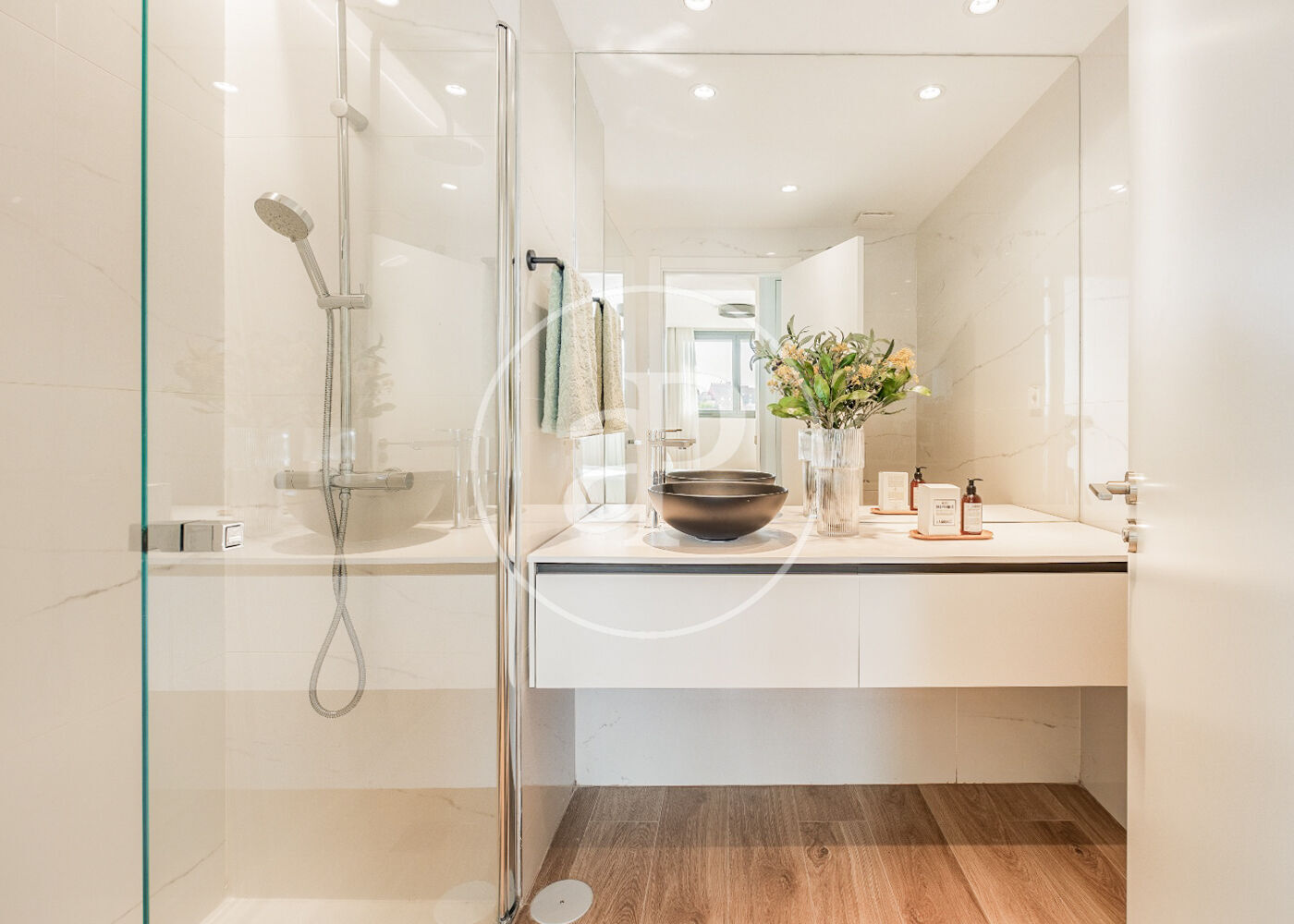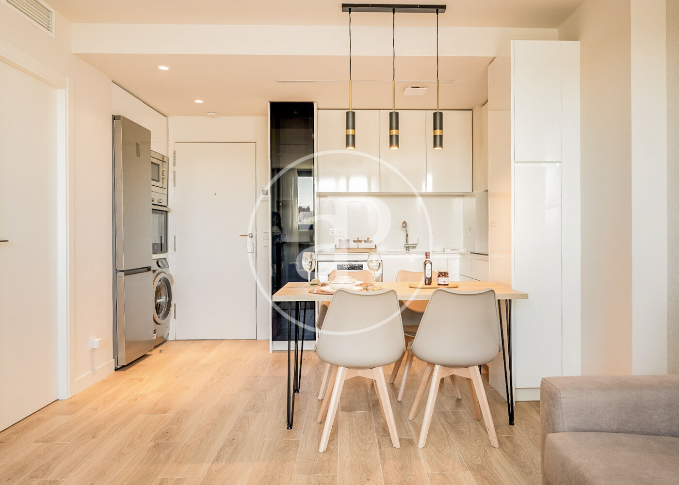 Esta vivienda presenta una cocina totalmente equipada con electrodomésticos de alta gama, adyacente a un luminoso salón caracterizado por un gran ventanal que permite aprovechar al máximo la luz natural durante todo el día. Desde el salón, accedemos a la zona de descanso, compuesta por dos habitaciones, una de ellas con baño privado y otro baño completamente equipado. La vivienda ha sido meticulosamente amueblada con mobiliario de primera calidad, garantizando un ambiente de calidez y comodidad.