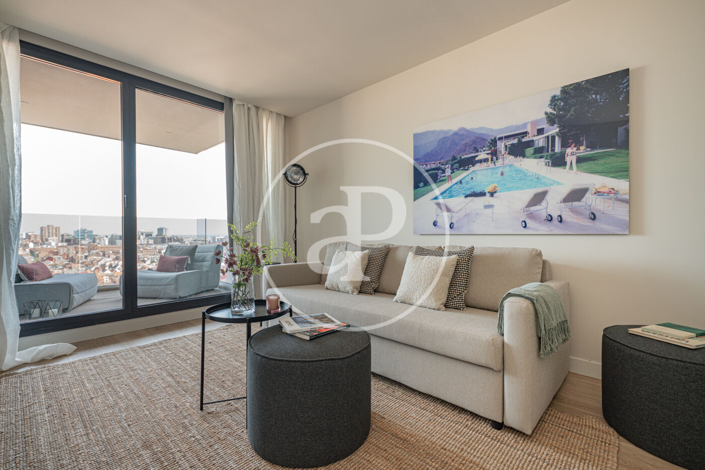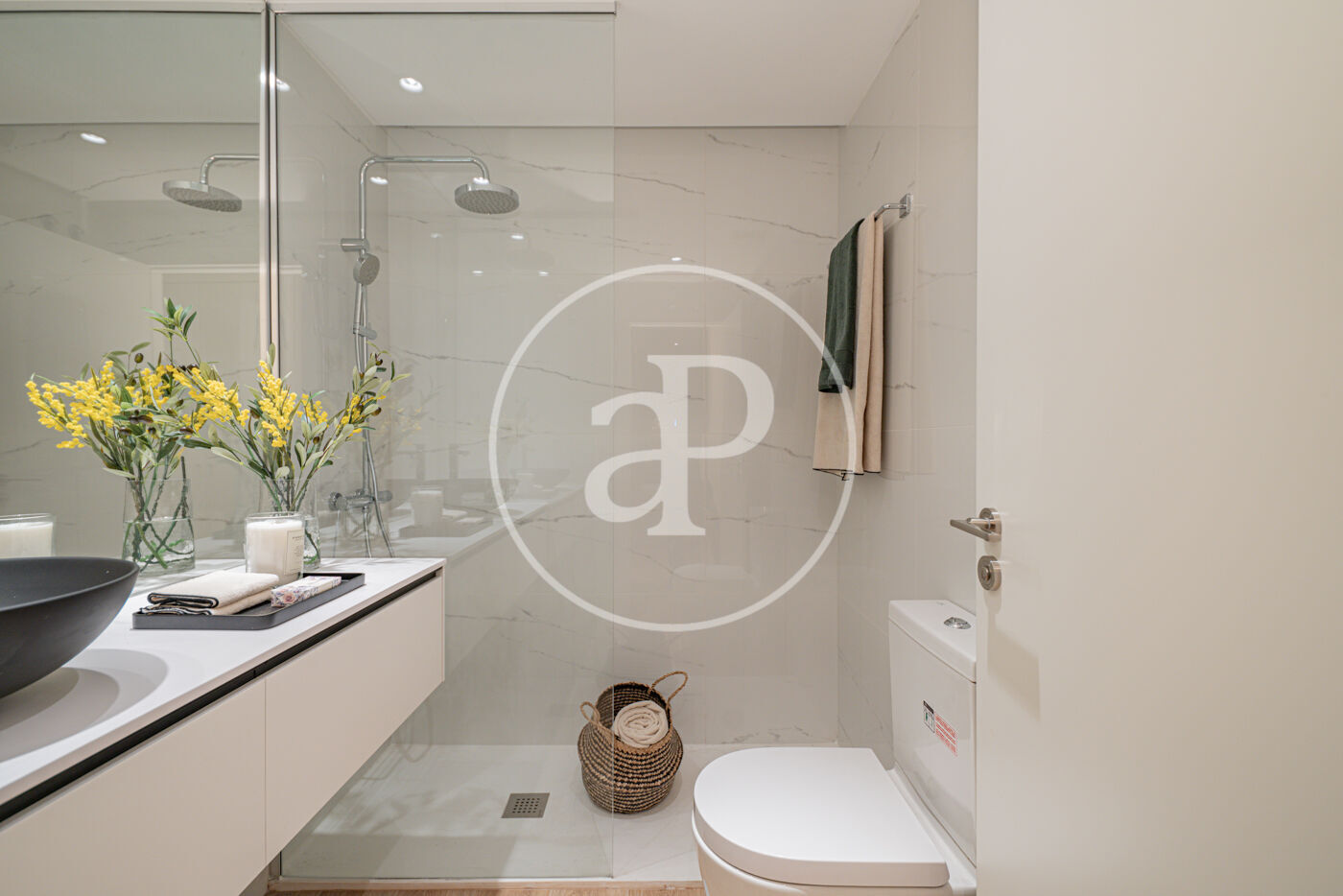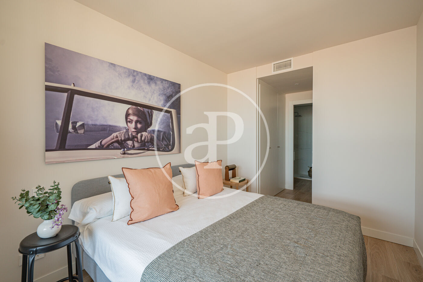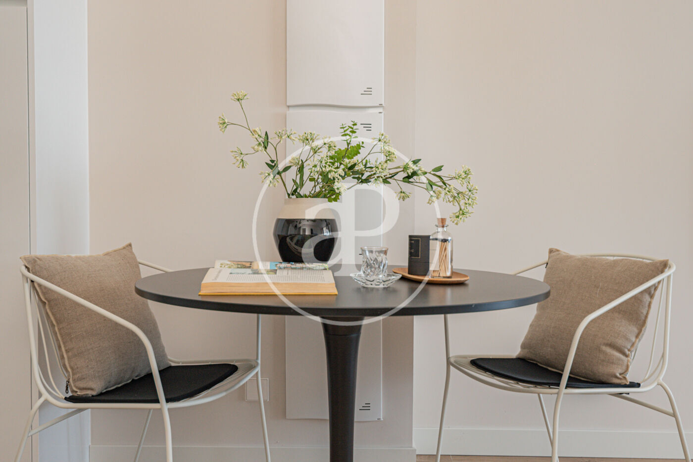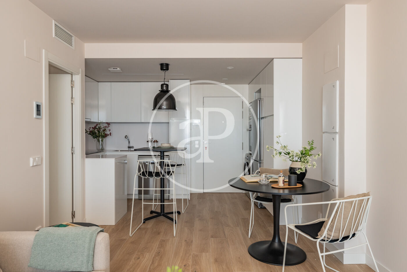 En un enclave estratégico del barrio de Sant Antoni en el Eixample de Barcelona, a pasos del Mercado de Sant Antoni, encontramos esta antigua fábrica industrial que es rehabilitada íntegramente con altos estándares arquitectónicos creando viviendas modernas, flexibles y con un encanto muy especial La finca fue construida anteriormente en 1863 y recientemente en su rehabilitación total fue adecuada con tecnología adecuada a nuestra época. Posee ascensor. La vivienda dispone, en la zona de día, de un comedor muy luminoso con cocina abierta y totalmente equipada con electrodomésticos de alta gama con acceso a salón con dos grandes ventanas, lo que hace que sea muy luminoso. En la zona de noche, encontramos dos habitaciones dobles, con grandes ventanas doble cristal con armarios empotrados, siendo una en suite. La segunda habitación cuanta con un baño completo con bañera.  Se destacan las grandes ventanas y puertas de excelente carpintería con aislación acústica y térmica, techos altos, pisos de madera y cerámicos artesanales, así como un eficiente sistema de calefacción y aire acondicionada que funciona con aerotermia. En la excelente conjunción de lo tradicional y lo moderno, a la vez que se preserva la historia en sus muros y se generan situaciones de gran belleza arquitectónica, se busca la funcionalidad y prestaciones que la vida moderna requiere. Los residentes tendrán acceso a áreas comunes como el terrado de 139m2 con piscina y disfrutarán de los espacios comunes de gran belleza y flexibilidad con excelentes orientaciones y muchísima luz natural y sol, así como vistas privilegiadas a su gran patio interior con jardines verticales colgantes. DISPONIBLE 01 DE OCTUBRE DE 2024!* En cumplimiento de la Ley 12/2023 y la Llei 18/2007 informamos que:Índice de R.P.LL: 13,61 € / m2