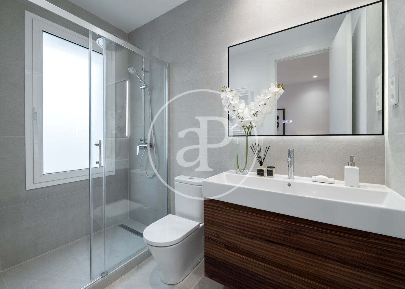 La vivienda dispone de 3 amplios dormitorios, todos ellos en suite, además de un aseo de cortesía, sumando un total de 4 baños. La distribución ha sido cuidadosamente estudiada para aprovechar al máximo el espacio, con una clara diferenciación entre zona de día y zona de noche.