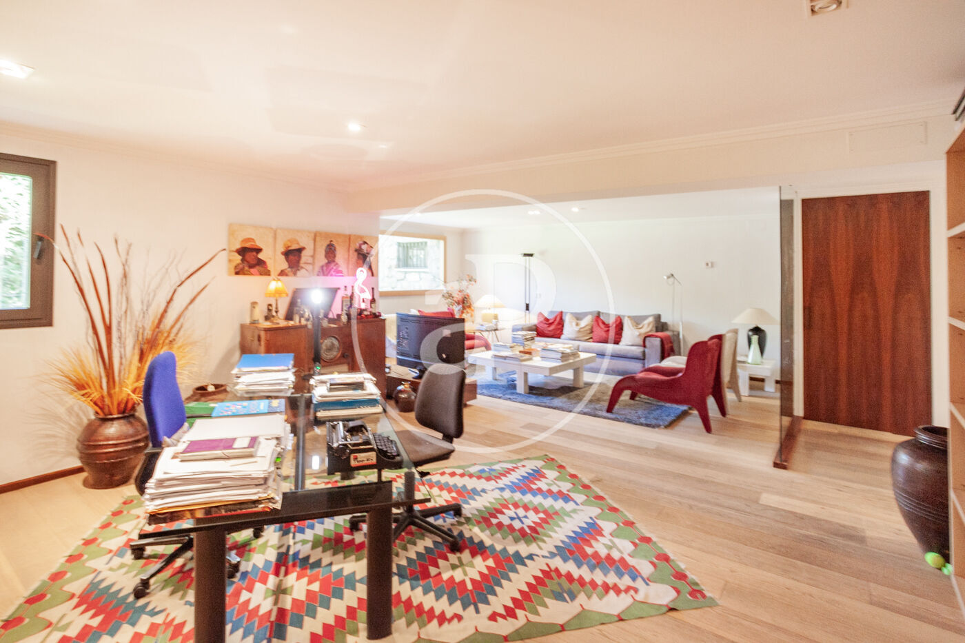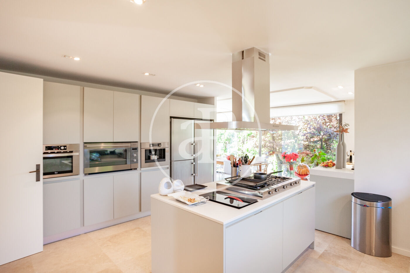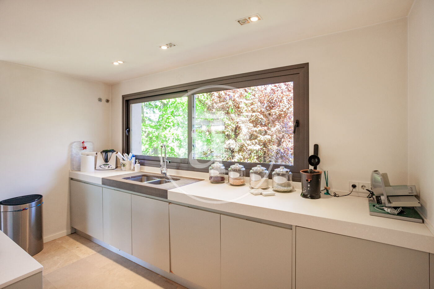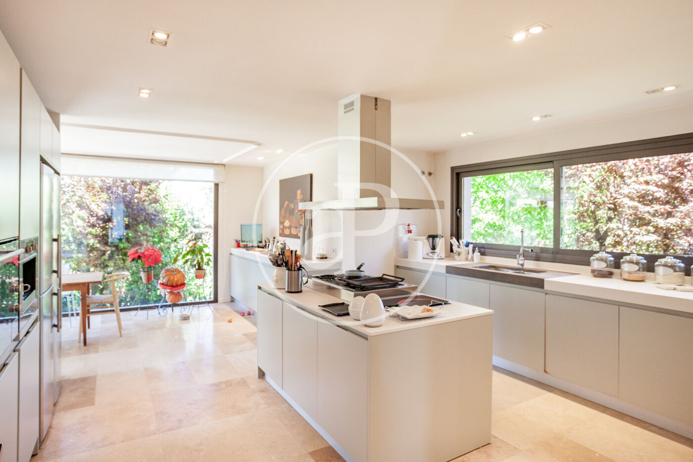 Nos encontramos ante una casa única,  a escasos metros de Barcelona,  está ubicada en Ciudad Diagonal,  prestigiosa urbanización  privada de Esplugas de Llobregat, es una zona residencial, pero con todo tipo de servicios a su alrededor , es una casa que por su ubicación te permite vivir en la tranquilidad y naturaleza al lado del camino de las aguas, pero a la vez a cinco minutos en coche de Barcelona, está ubicada a  dos minutos a pie de los colegios Internacionales , colegio alemán y colegio americano. La casa consta de tres plantas, más la planta sótano. En la planta principal encontramos un salón de grandes dimensiones  con chimenea, separada por una puerta corredera encontramos un  gran comedor, anexo a él  tenemos la cocina totalmente equipada con electrodomésticos de primeras marcas, toda esta planta está rodeada de puertas correderas  de cristal y ventanas por toda la planta., lo que hace que la luz sea la gran protagonista de esta vivienda,  desde el  recibidor  se puede observar el juego de alturas que tiene y el diseño tan único , que ha sido diseñada por  uno de los  arquitectos más prestigiosos de Barcelona. En la primera planta encontramos tres habitaciones dobles en suite, una de ellas es la suite principal de unos cien metros de tamaño aproximadamente, con dos vestidores, dos baños y una parte de spa, destinada a la tranquilidad y la paz, con vistas al mar. Toda esta suite está rodeada de cristaleras enormes. Las otras dos suites son dobles, con sus baños de grandes dimensiones y sus vestidores. En la última planta tenemos una zona polivalente, destinada actualmente a  home cinema , y con salida a una enorme terraza , desde cualquier punto de la casa se puede ver el mar,  también encontramos un baño completo que da servicio a este salón y en esta misma planta encontramos otro dormitorio doble en suite,  este área se podría destinar  como  a un apartamento  .La planta sótano es una planta con ventanas y bastante luz, donde encontramos un gimnasio, una sauna, zona para dar masajes, habitación de servicio con su propio baño, una gran zona de lavandería y por último una bodega con luz natural y una gran nevera de vinos, es una zona destinada a la diversión y al deporte . La casa está en una parcela de casi mil metros, está muy bien ubicada en la parcela, pues la casa tiene todo el jardin delante para poder disfrutar de el, con una zona de porche muy buena y una piscina que te invita a bañarte.  Esta casa goza de suelos radiantes de mármol en toda la casa, carpintería de aluminio Climalit, carpintería de haya maziza, con armarios y zona de almacenaje por toda la casa, tiene los mejores acabados de la época, fue construida en el 2005, no obstante, la casa está en perfecto estado y lista para entrar a vivir, persianas automáticas, aire acondicionado por conductos con bomba de frio y calor, el césped es artificial que rodea toda la piscina, se acaban de instalar placas solares. Los grandes protagonistas de este hogar son, las vistas, la luz natural que la envuelve y un diseño que la hace única, ven a verla es una oportunidad de vivir en un ambiente único.