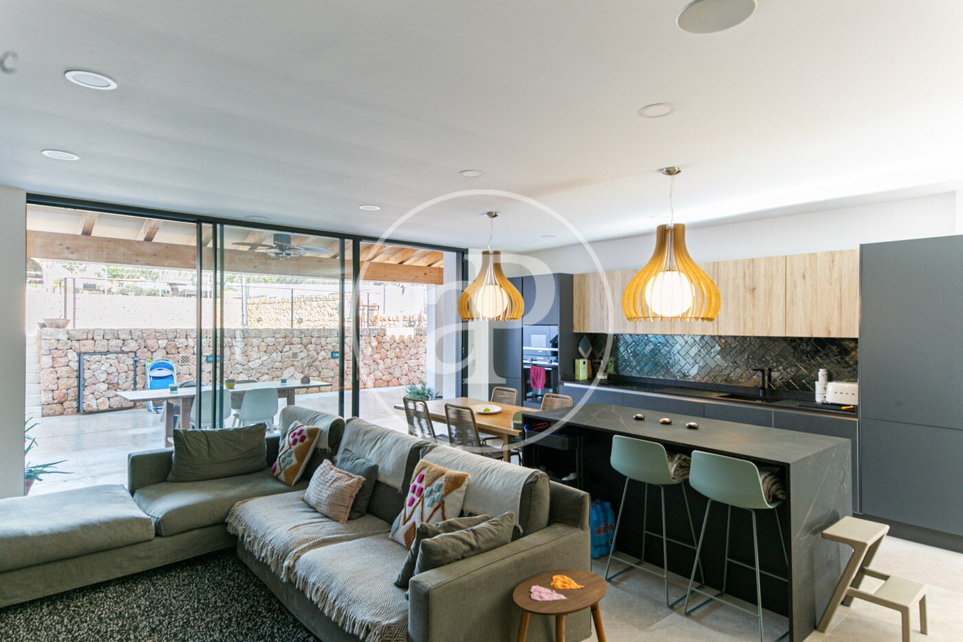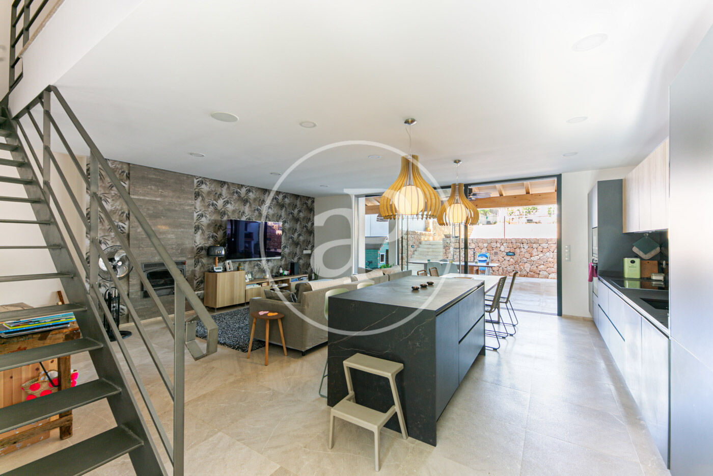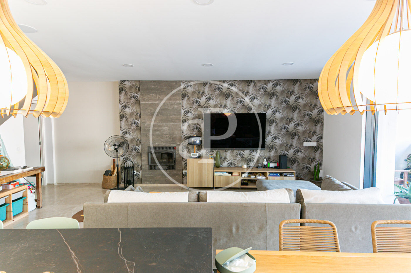 Chalet 3 habitaciones más una planta baja en Cumbres de Calicanto. En la urbanización Cumbres de Calicanto se encuentra este chalet pareado, en una zona privilegiada muy residencial, con mucha demanda por su cercanía a Valencia y con todos los servicios, con orientación Este-Oeste, muy luminosa y espaciosa con muchas posibilidades, con jardín, planta baja y terraza La casa tiene 155 metros cuadrados, dos terrazas de 20 y 15 metros y 357 cuadrados de parcela. En la planta principal encontramos una espaciosa cocina office, muy luminosa con acceso a una terraza y a la zona de la barbacoa, el salón comedor es amplio, muy acogedor con chimenea y con un mirador con vistas a la montaña y la ciudad donde se alcanza a ver el mar, orientación Este, ideal para apreciar el amanecer y el sol de la mañana, tienen un baño completo con bañera, y un armario de cortesía. A continuación, en la primera planta consta de dos habitaciones dobles y una individual, baño con ducha hidromasajes, una terraza de 15 metros cuadrados y otra terraza cubierta de 20 metros cuadrados, que puede ser para despacho, gimnasio o vestidor. La planta baja es diáfana dispone de una cocina ideal para verano, un aseo y una terraza. Tiene calefacción de gasoil, dispone de armarios empotrados en todas las habitaciones, las paredes son lisas, osmosis, ventanas de aluminio blanco en buen estado, de doble cristal climalit y mosquiteras, parking cubierto para 1 coche, tiene parquet en la primera planta, suelo de terrazo en la planta principal y en la cocina tiene suelo de cerámica Es un chalet pareado, pero con muro de doble carga. No tiene piscina, pero dispone del espacio para hacer una con efecto infinita. El chalet está en buen estado para entrar a vivir y se vende amueblado. La urbanización dispone de excelentes servicios tales como, supermercado, banco, farmacia, restaurante, cafetería, zonas comunes de parques y máquinas para hacer ejercicio al aire libre, cuenta con un despacho médico y un despacho del ayuntamiento de Chiva, colegios, transporte y conexión con el metro de Torrente, transporte para los colegios e institutos es gratis Si desea más información sobre esta propiedad, no dude en contactar con nosotros, estaremos encantados de atenderle.