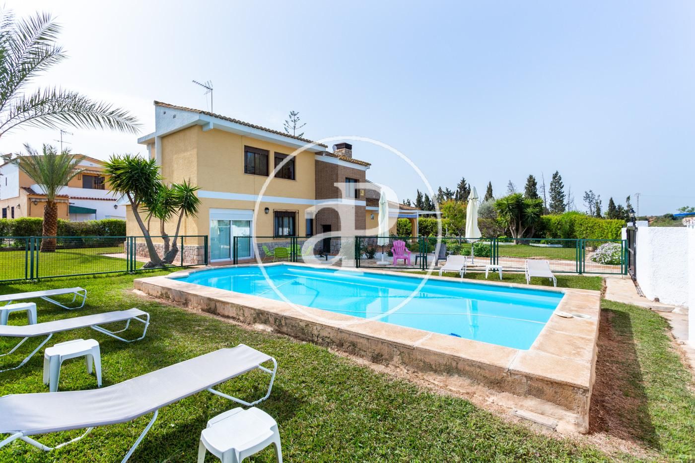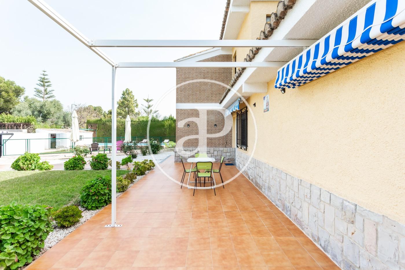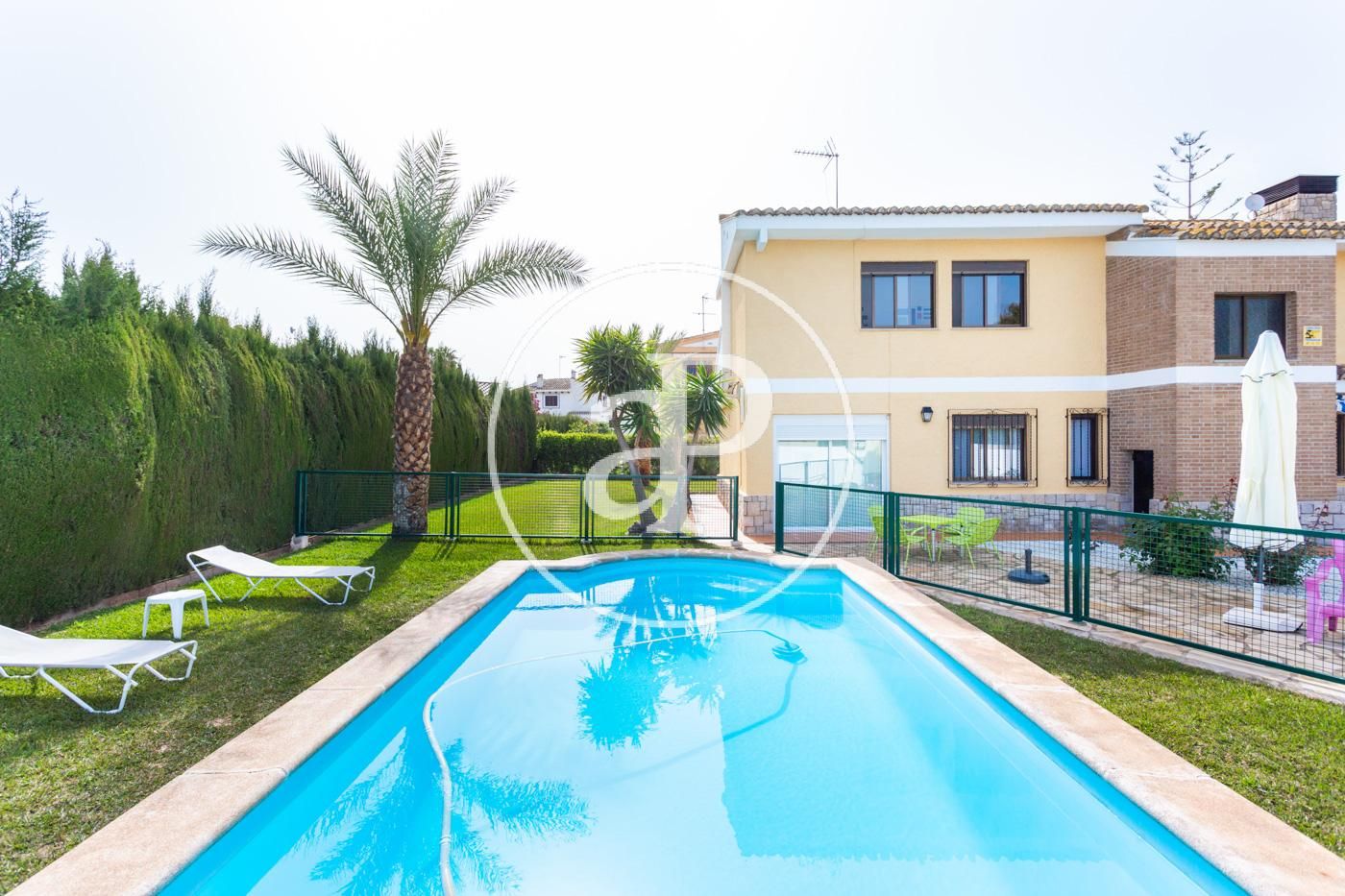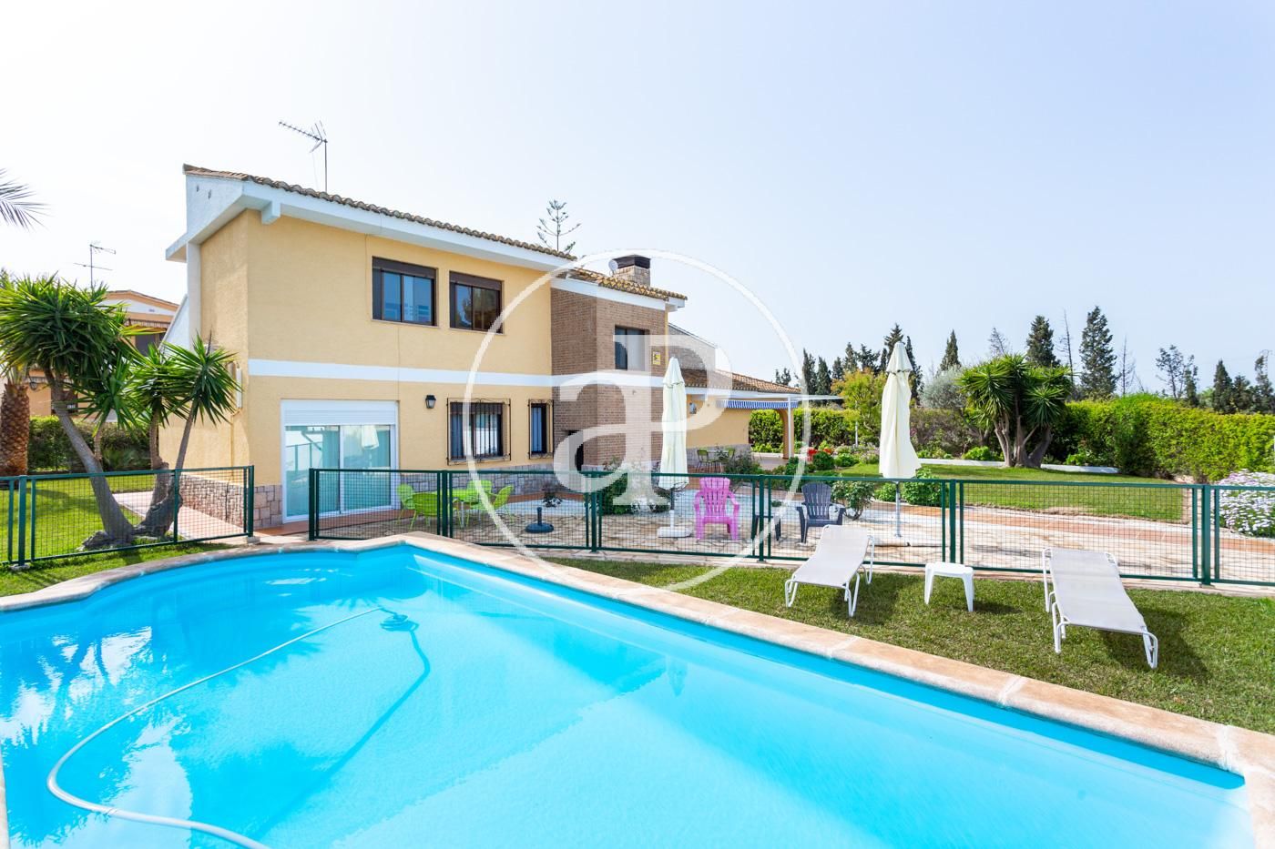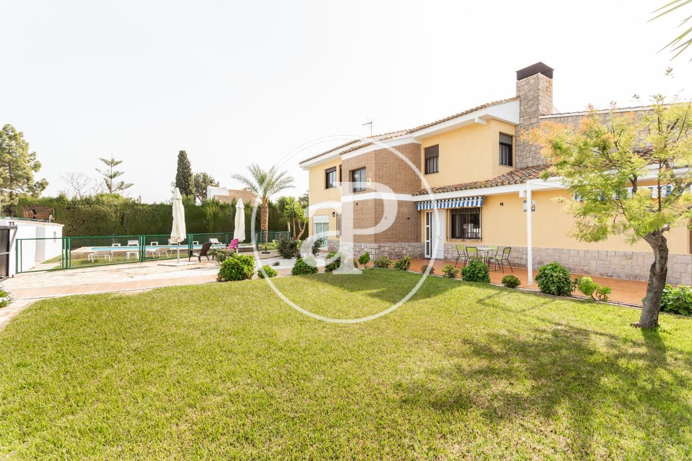 Estupendo chalet en Vall de Flors con aproximadamente 1200m2 de parcela y 330m2 construidos en dos plantas. Muy próximo a la parada de metro de Masias a unos 800 m. Cuenta con un maravilloso jardín con piscina privada, un porche amplio y un paellero cubierto.