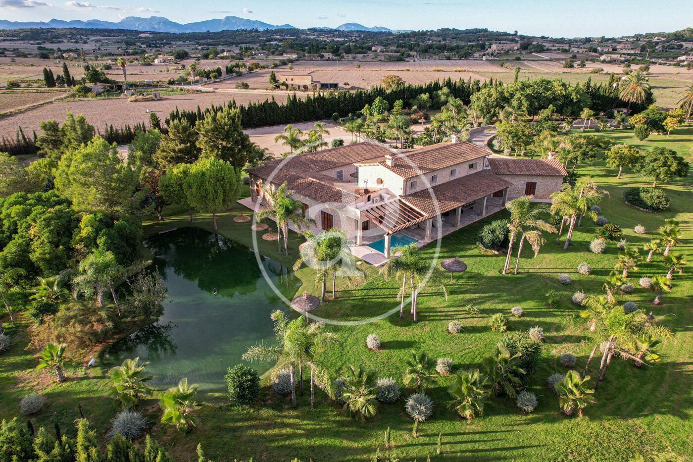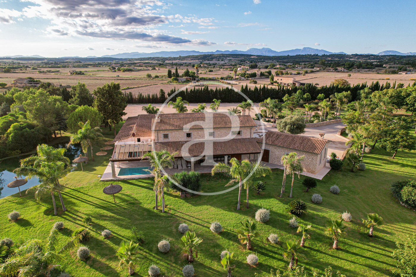 La propiedad, construida en el 2008, y reformada en el 2022 y 2023 está situada en el la zona de Montuiri en la idílica zona del Pla de Mallorca, que es una de las más buscadas del centro de la isla a solo 30 minutos en coche de Palma y 25 de el aeropuerto.