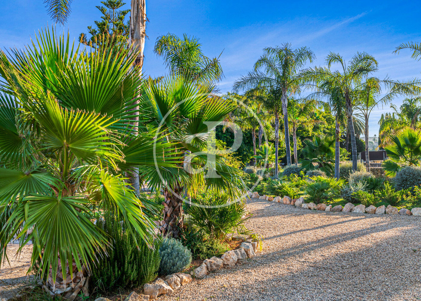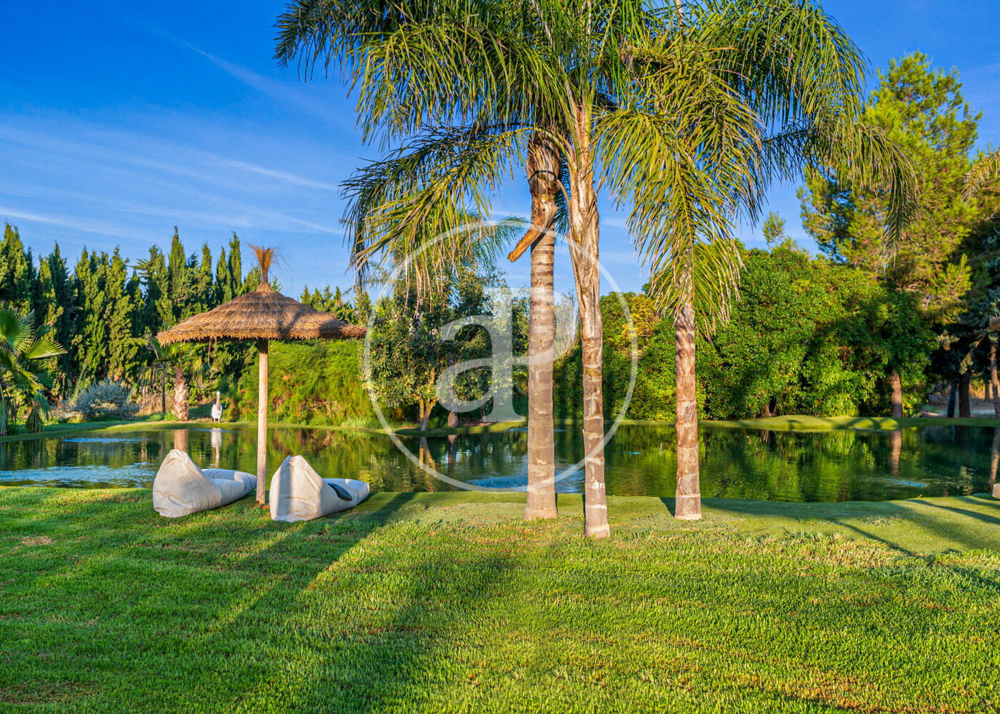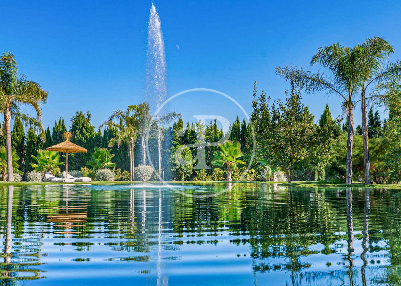 La zona exterior de la propiedad es amplia y tiene un remarcable jardín, un remanso de relax, rodeado de vegetación con árboles y arbustos, una piscina de 19 m² para disfrutar del clima mediterráneo, casa de jardín y un pequeño lago artificial.
