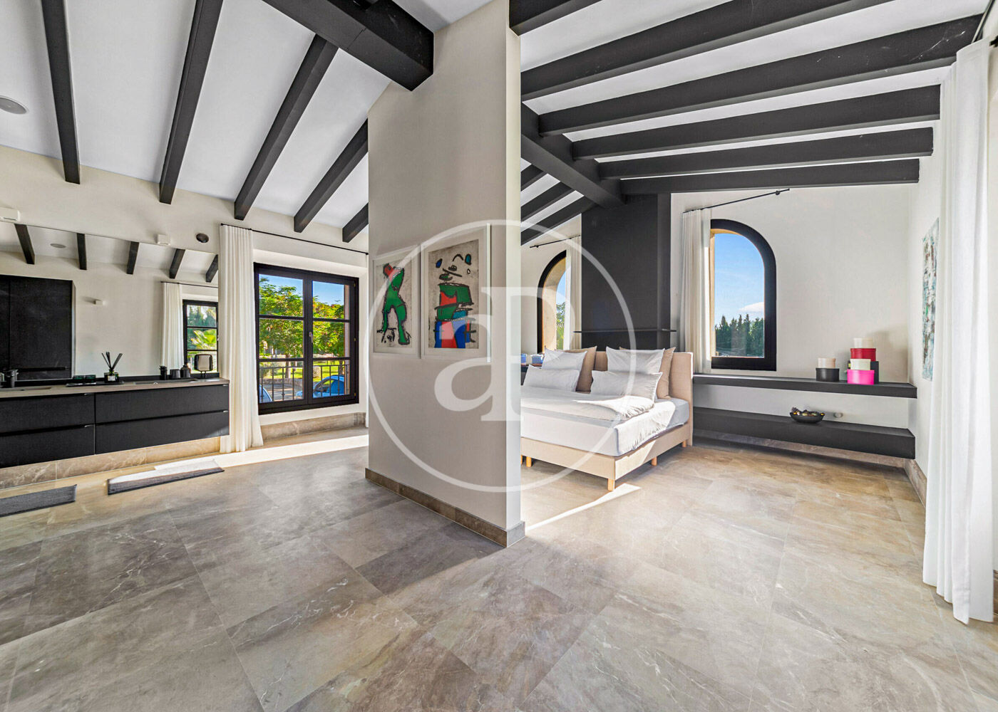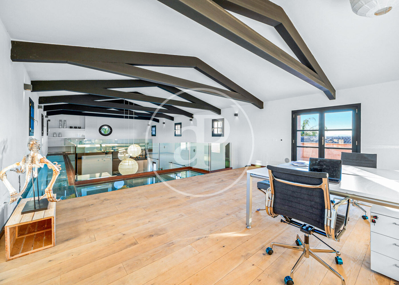 La casa de invitados ofrece un gran espacio adicional con estancias y zonas de distinto empleo como salon,1 habitación, baño privado, además de una práctica cocina complementaria. Desde este mismo piso, accedemos a un espléndido solárium en el que admirar las vistas panorámicas.
