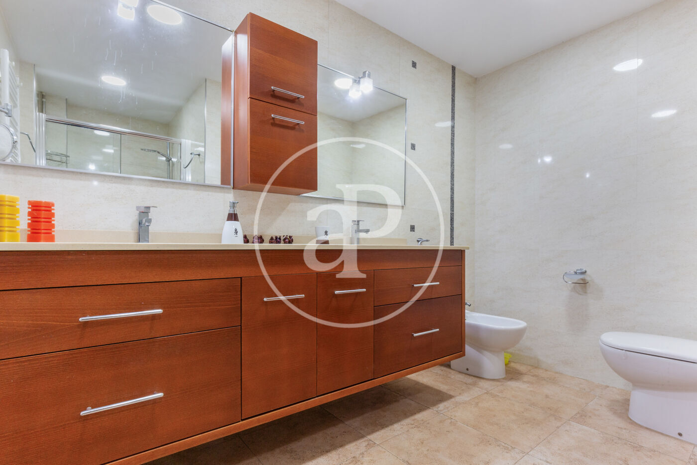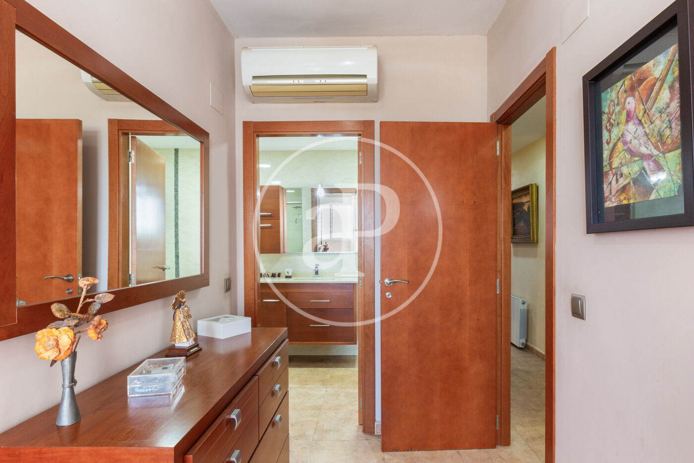 aProperties tiene el placer de presentarles, en exclusiva, este fantástico, precioso e impecable piso en plana baja de 115m2 (90m2 útiles), listo para entrar a vivir. La vivienda cuenta con una magnífica terraza de 37m2 con orientación sud toldos automáticos, total privacidad y acceso a pie plano a la zona comunitaria con piscina y, al otro lado, jardín de 20m2 con orientación noroeste. El piso se encuentra en Mas Duran, el barrio más cotizado de Sant Quirze, en calle tan tranquila como céntrica y al lado de todos los servicios y de la estación de tren, a 4 minutos andando (Estación Sant Quirze - FGC).  Accedemos a la vivienda por el generoso recibidor con armario de cortesía.  A la derecha la fantástica, luminosa y espléndida zona de día, con su gran salón comedor y la preciosa cocina office, ambos con acceso directo a la increíble terraza de 37m2, con total privacidad, vistas al verde los árboles y azul del cielo y acceso a pie plano a zona comunitaria con piscina.  El piso cuenta con 2 baños completos y 2 habitaciones dobles, una de ellas máster suite (con su propio baño y vestidor) y jardín de 20m2, así como de 1 plaza de parking y trastero anejo especialmente grande.   La finca, especialmente elegante y comunidad muy bien mantenida, cuenta con acceso adaptado tanto a la portería como a la zona comunitaria, ideal para personas con movilidad reducida, cochecitos de bebé, etc. Cambiando la bañera de la suite por un plato de ducha, el piso estaría totalmente adaptado a silla de ruedas. Acceso a la portería, y la zona comunitaria.  ACABADOS DE ALTA CALIDAD: la vivienda, con materiales de máxima calidad, cuenta con parquet natural, calefacción por radiadores, aire acondicionado por splits, carpintería de aluminio con doble cristal, toldos, mosquiteras, armarios empotrados, etc.   UBICACIÓN: Sant Quirze del Vallés, es una preciosa población de casas exclusivas, con alto nivel de vida, que se encuentra en el centro del Vallès Occidental y a tan sólo 25 Km de Barcelona. Cuenta con excelentes comunicaciones con las principales autopistas y carreteras y accesos inmejorables a Barcelona, Sant Cugat, Cerdanyola, Sabadell, Terrassa y alrededores. Su situación estratégica, permite gozar de sus parques y jardines y hacer largos paseos por la Serra de Galliners, disfrutando al máximo de la tranquilidad y naturaleza, disponiendo a la vez de todo tipo de comercios y servicios básicos, incluyendo parvulario, escuelas, centro médico, etc. a 10 minutos en coche de parques empresariales, hospitales, clubs de golf, universidades públicas y privadas de máximo prestigio internacional y grandes centros comerciales y excelente comunicación mediante autopista, Túneles de Vallvidrera o carretera con la capital catalana.  ¿Se imagina vivir aquí? ¡Contáctenos para más información y agendar visitas!