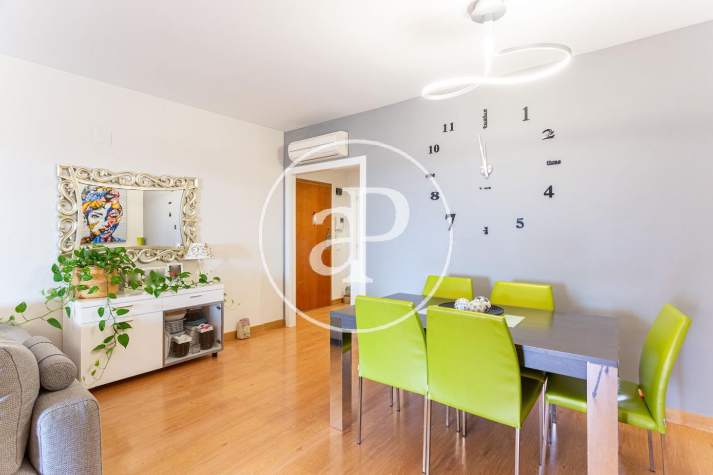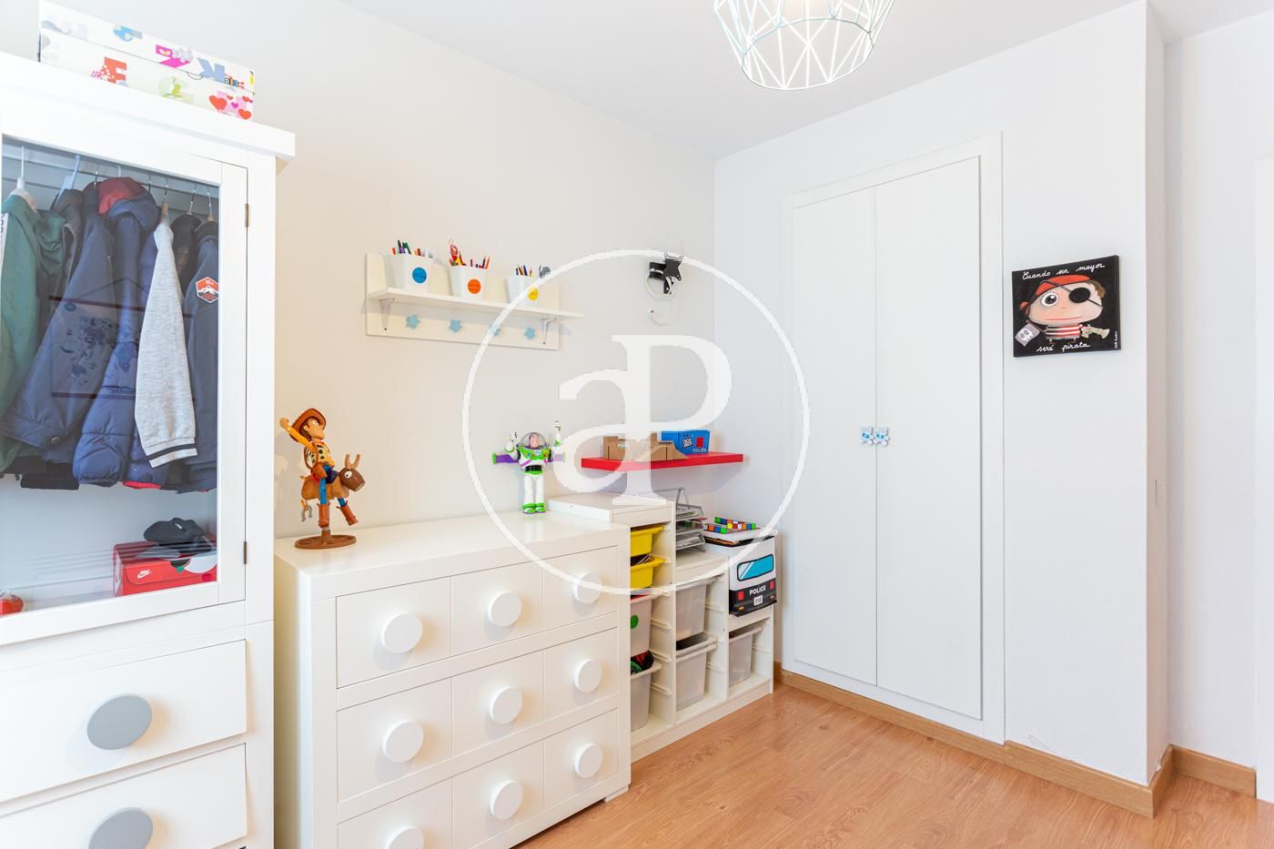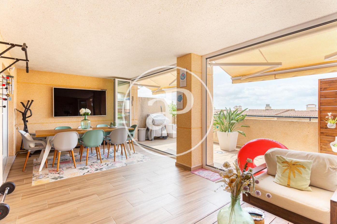aProperties Real Estate les presenta este exclusivo piso de diseño situado en una finca nueva del año 2020 que dispone de una zona comunitaria con piscina, pista de pádel, zona infantil y jardín y dos terrazas de uso particular.  La vivienda se vende con 2 plazas de aparcamiento en la misma finca y dos trasteros.  El piso situado en la planta baja del edificio con orientación al sur dispone de 2 terrazas una que tiene acceso por la entrada de la vivienda de 85 m 2 en la que se encuentra una caseta de madera legalizada por el ayuntamiento y la comunidad en la que hay espacio de gimnasio y con orientación este y otra de 20 m orientada al sur  El piso tiene 3 dormitorios uno de ellos de tipo suite con vestidor independiente y baño con ducha. El resto son dormitorios individuales, todos ellos con armarios empotrados. Dispone de un segundo baño completo con duchas y una estancia que actualmente se usa como zapatero y guardarropa.  El salón con salida directa a la terraza delantera dispone de luz durante todo el día por su orientación al sur y está conectado a la cocina office, también con salida a la terraza, todo ellos se encuentran en espacio abierto de más de 50 m 2 y está separado por un tabique que da privacidad a la cocina pero que se conecta al salón por la zona office.  La casa dispone pavimentos de parquet, azulejos en baños y cocinas, grandes ventanales de aluminio con cámara, chimenea de biotenolen, calefacción, agua calienta y cocina eléctrica.  Esta vivienda está ubicada en la zona nueva de Can Gambús, Sabadell, rodeada de zonas verdes y parques a menos de 1 min a pie del Parque de Can Gambús. Cuenta con excelentes comunicaciones con las principales carreteras con acceso inmejorable a Barcelona (C-58) y alrededores ( N-150) . Dispone de transporte público (línea de autobús) que conecta con el resto de los barrios de Sabadell, estación de Renfe y estación de FFCC. Cercano a escuelas, supermercados, zonas de restauración y núcleo comercial. Está a un solo click de descubrir su futuro hogar.