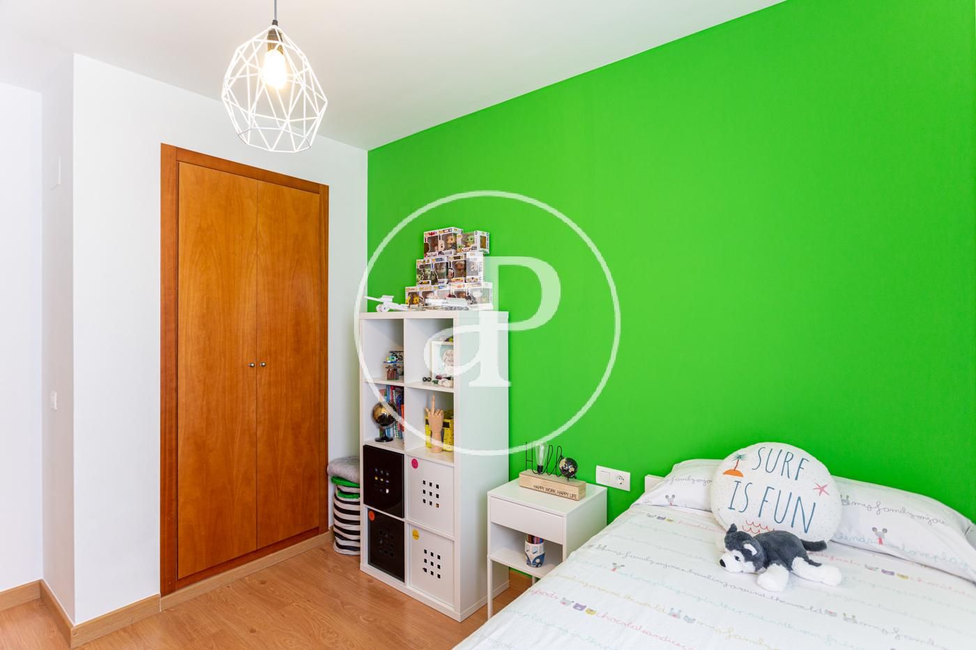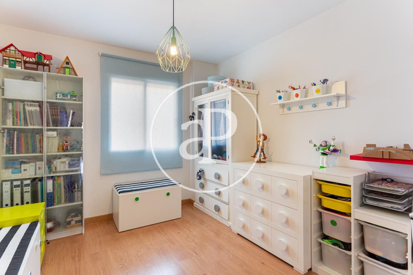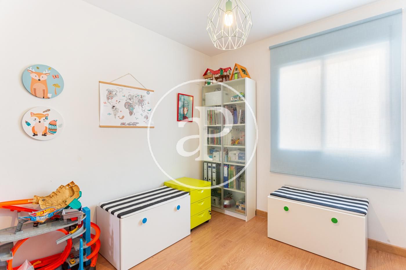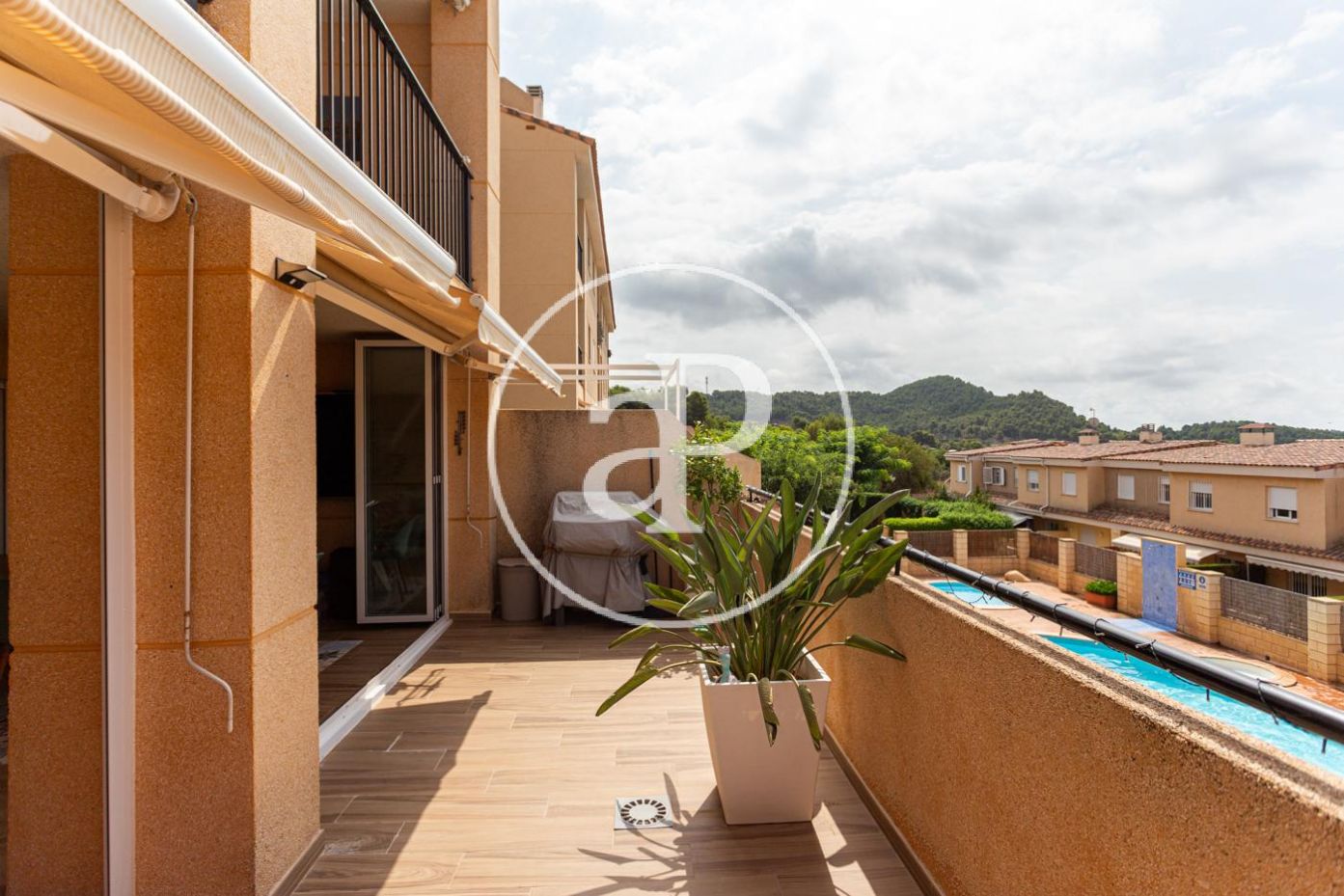 aProperties Real Estate les presenta este exclusivo piso de diseño situado en una finca nueva del año 2020 que dispone de una zona comunitaria con piscina, pista de pádel, zona infantil y jardín y dos terrazas de uso particular.  La vivienda se vende con 2 plazas de aparcamiento en la misma finca y dos trasteros.  El piso situado en la planta baja del edificio con orientación al sur dispone de 2 terrazas una que tiene acceso por la entrada de la vivienda de 85 m 2 en la que se encuentra una caseta de madera legalizada por el ayuntamiento y la comunidad en la que hay espacio de gimnasio y con orientación este y otra de 20 m orientada al sur  El piso tiene 3 dormitorios uno de ellos de tipo suite con vestidor independiente y baño con ducha. El resto son dormitorios individuales, todos ellos con armarios empotrados. Dispone de un segundo baño completo con duchas y una estancia que actualmente se usa como zapatero y guardarropa.  El salón con salida directa a la terraza delantera dispone de luz durante todo el día por su orientación al sur y está conectado a la cocina office, también con salida a la terraza, todo ellos se encuentran en espacio abierto de más de 50 m 2 y está separado por un tabique que da privacidad a la cocina pero que se conecta al salón por la zona office.  La casa dispone pavimentos de parquet, azulejos en baños y cocinas, grandes ventanales de aluminio con cámara, chimenea de biotenolen, calefacción, agua calienta y cocina eléctrica.  Esta vivienda está ubicada en la zona nueva de Can Gambús, Sabadell, rodeada de zonas verdes y parques a menos de 1 min a pie del Parque de Can Gambús. Cuenta con excelentes comunicaciones con las principales carreteras con acceso inmejorable a Barcelona (C-58) y alrededores ( N-150) . Dispone de transporte público (línea de autobús) que conecta con el resto de los barrios de Sabadell, estación de Renfe y estación de FFCC. Cercano a escuelas, supermercados, zonas de restauración y núcleo comercial. Está a un solo click de descubrir su futuro hogar.