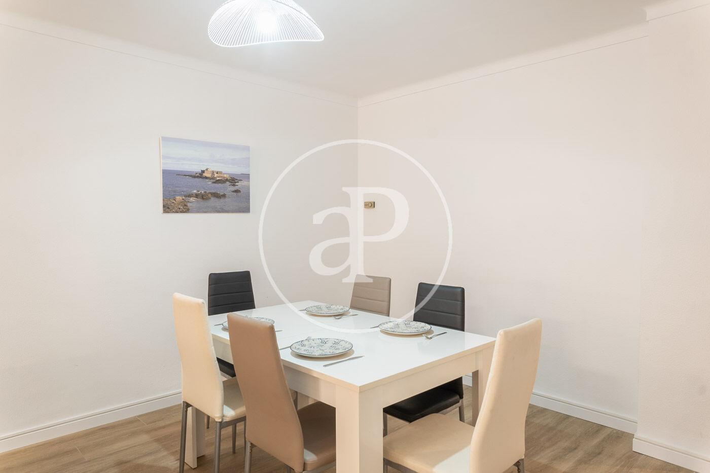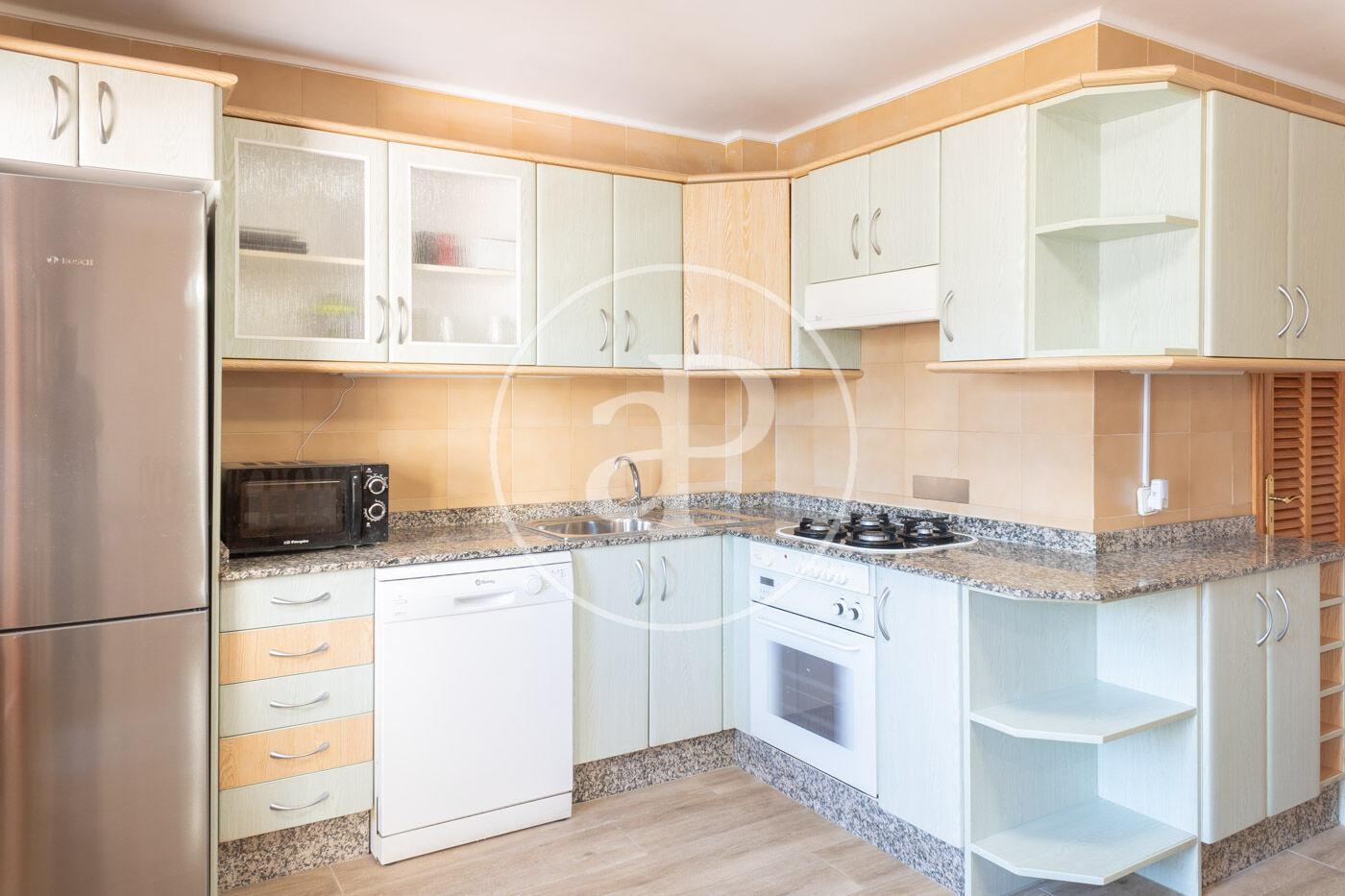 Este piso cuenta con 3 habitaciones, 2 baños, y un balcón. Las habitaciones están equipadas con armarios empotrados, proporcionando un práctico espacio de almacenamiento. La cocina viene totalmente equipada y el piso se ofrece amueblado, listo para disfrutar.
