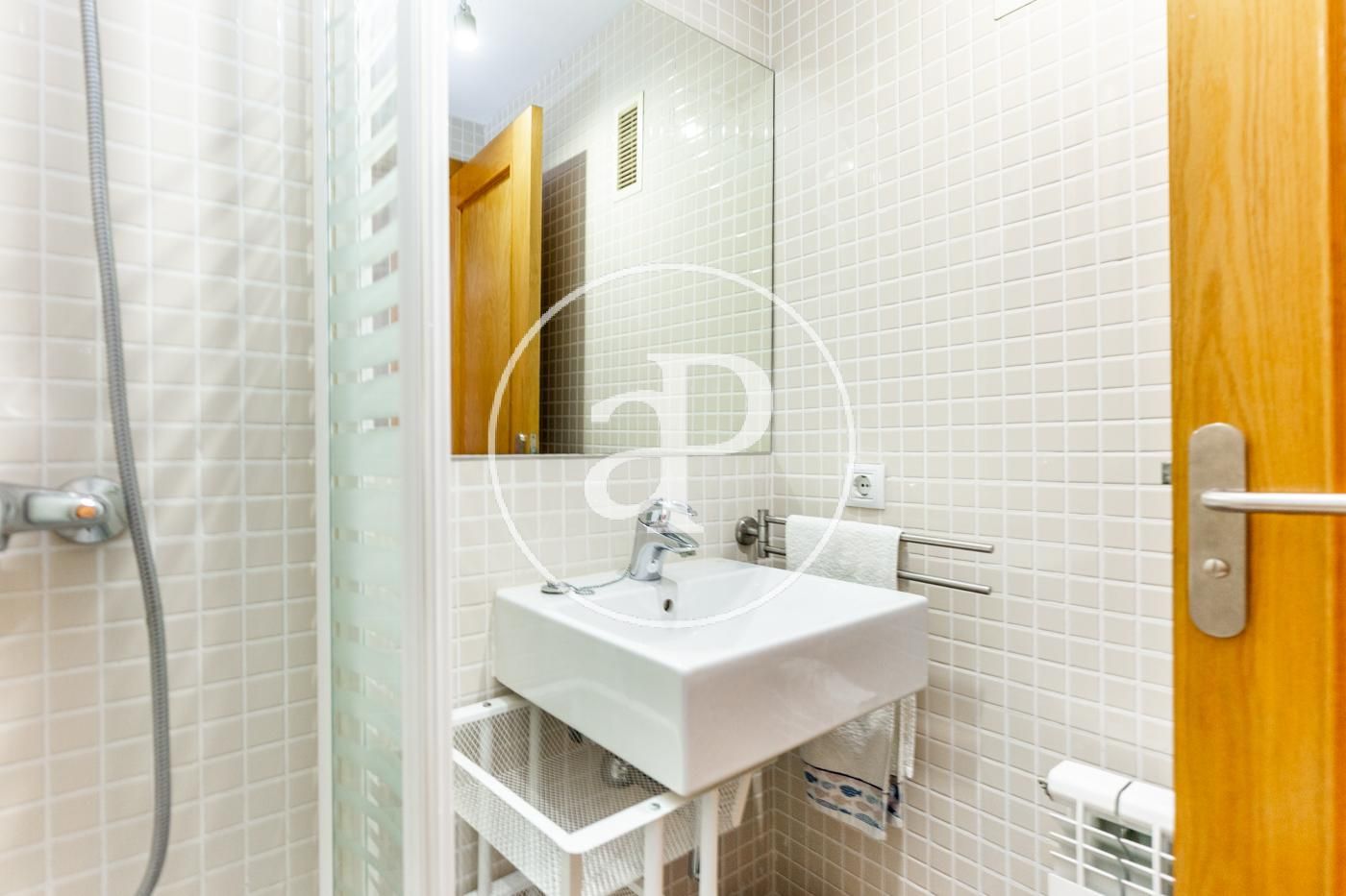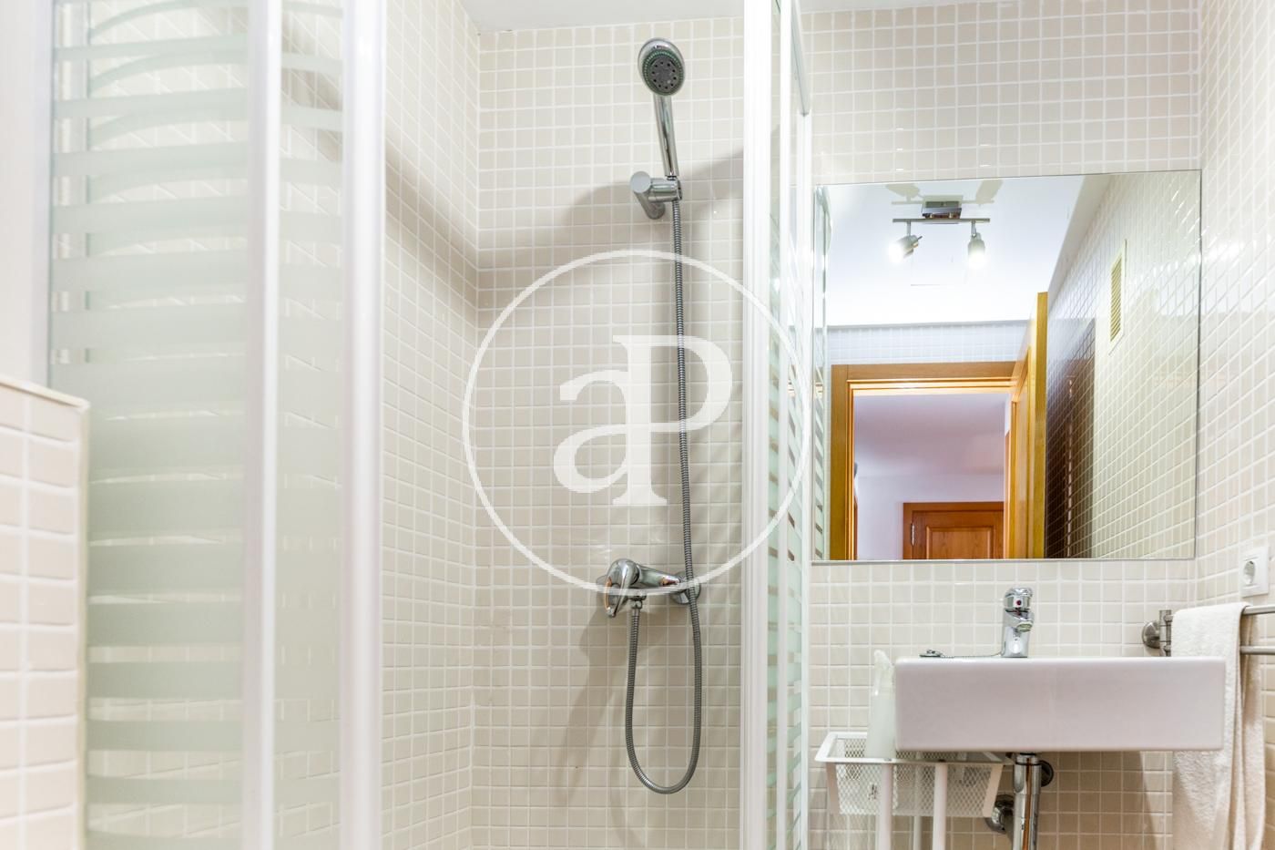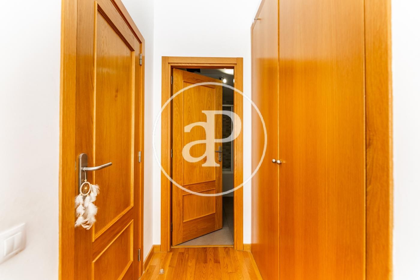 La zona de noche se encuentra a lo largo del pasillo. Por una parte, se accede a un primer dormitorio doble con armarios empotrados y a un baño completo. Por otra, cruzando el comedor, se accede a la segunda habitación doble. Esta cuenta con armarios empotrados y baño en suite. La vivienda tiene calefacción individual en todas las estancias. La finca, completamente renovada, ha mantenido su esencia clásica con el paso de carruajes. Dispone de ascensor y está ubicada en una excelente zona del barrio del Parque de las Estaciones, con metro y autobuses en las inmediaciones, además de variedad de oferta cultural, restauración y comercios.