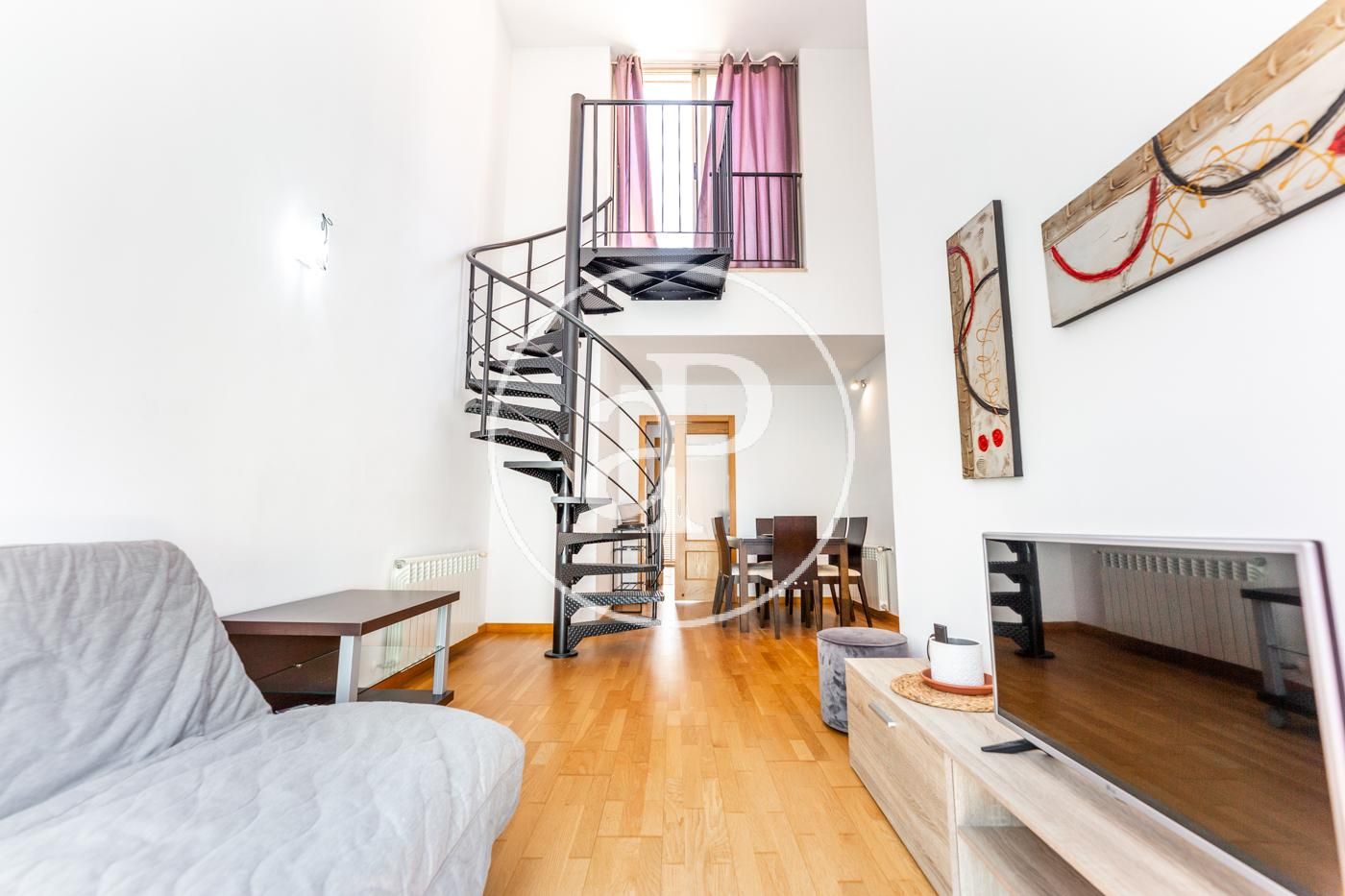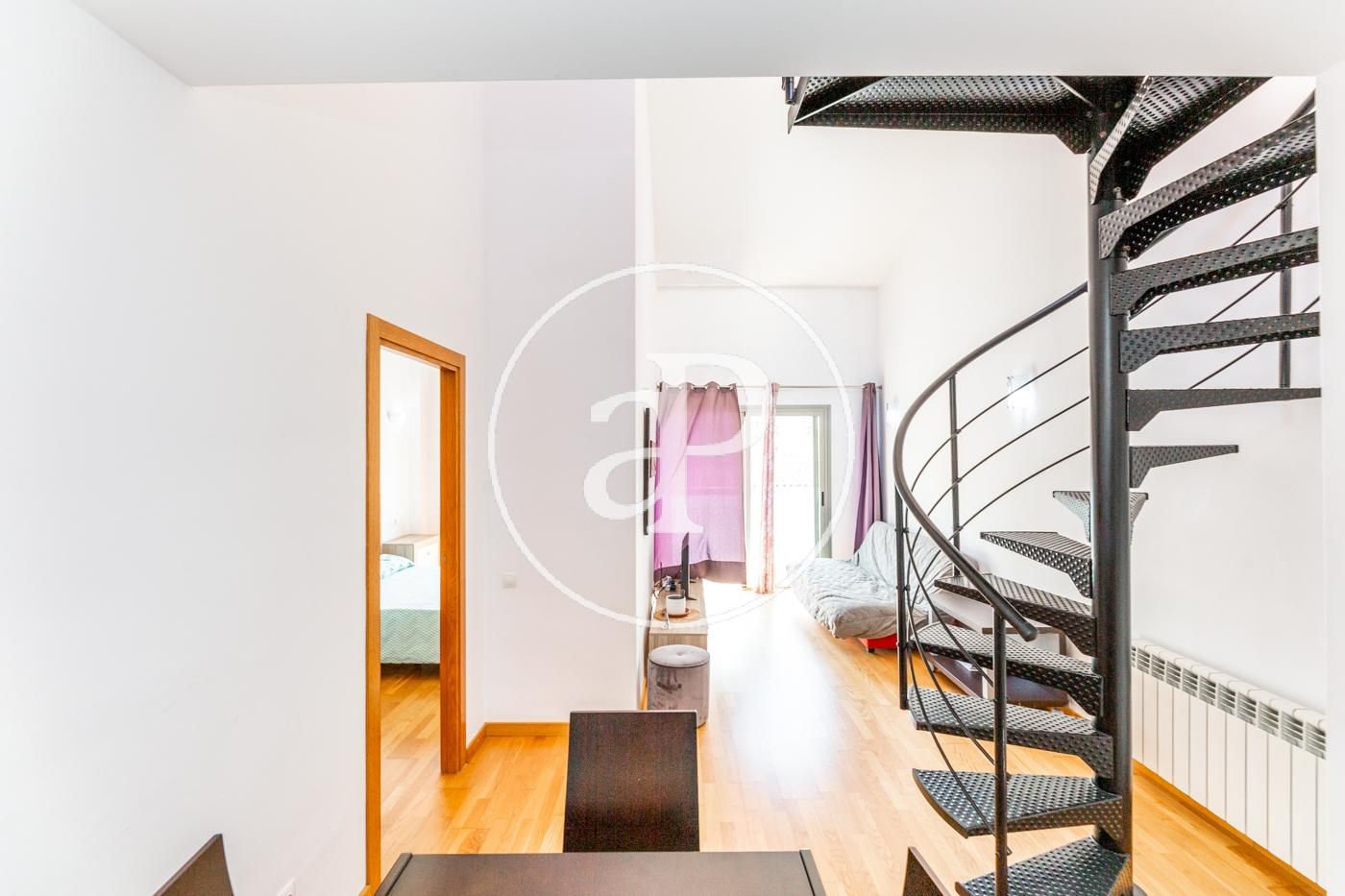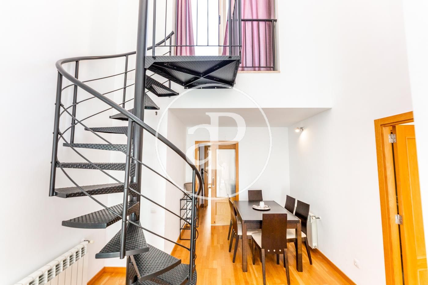 FINCA CLÁSICA CON VIVIENDAS DE OBRA NUEVA DE DOS HABITACIONES. Piso de techos altos completamente amueblado con excepcional acabado en sus 100m² de vivienda. Desde la zona de entrada se accede tanto al salón-comedor como a la cocina y a un pasillo distribuidor. El salón comedor cuenta un balcón que da a la calle principal y con unas estilosas escaleras que dan a una fantástica terraza privada. La cocina está completamente equipada con electrodomésticos de gama alta.