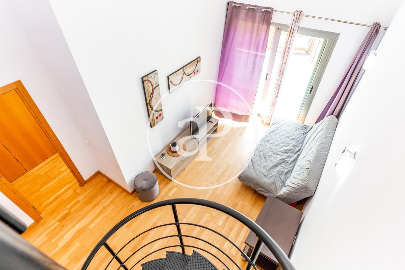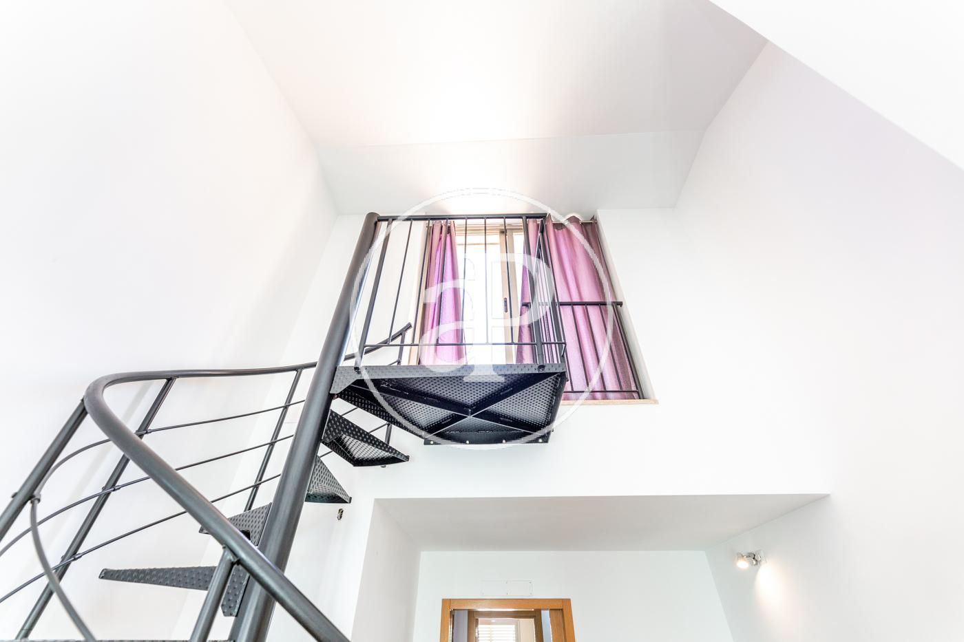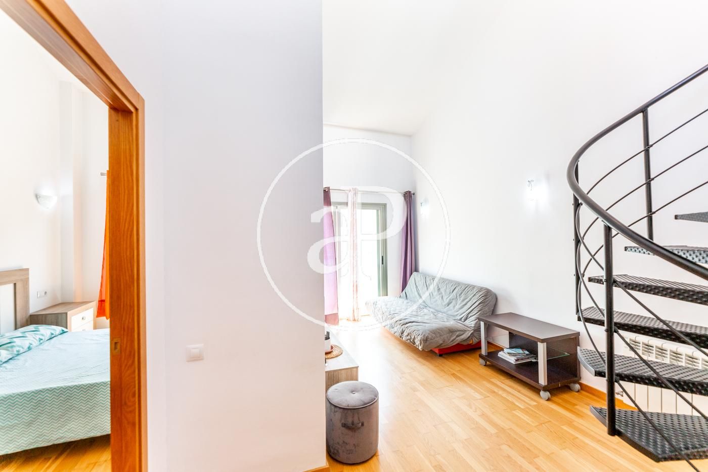 FINCA CLÁSICA CON VIVIENDAS DE OBRA NUEVA DE DOS HABITACIONES. Piso de techos altos completamente amueblado con excepcional acabado en sus 100m² de vivienda. Desde la zona de entrada se accede tanto al salón-comedor como a la cocina y a un pasillo distribuidor. El salón comedor cuenta un balcón que da a la calle principal y con unas estilosas escaleras que dan a una fantástica terraza privada. La cocina está completamente equipada con electrodomésticos de gama alta.