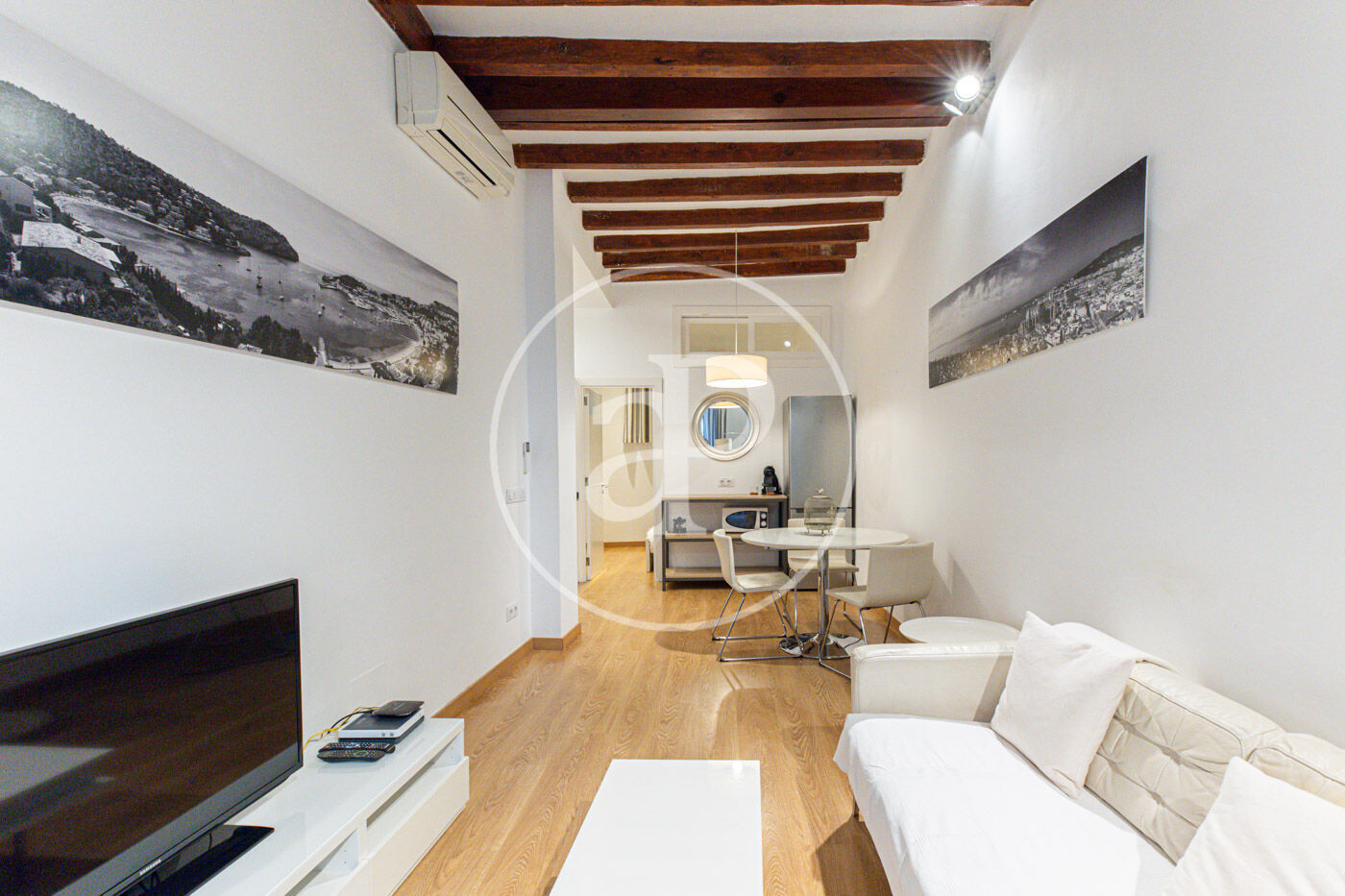 Precioso apartamento situado en la Plaza de Cort dispone de un dormitorio, un baño con plato de ducha, salón y cocina independiente.