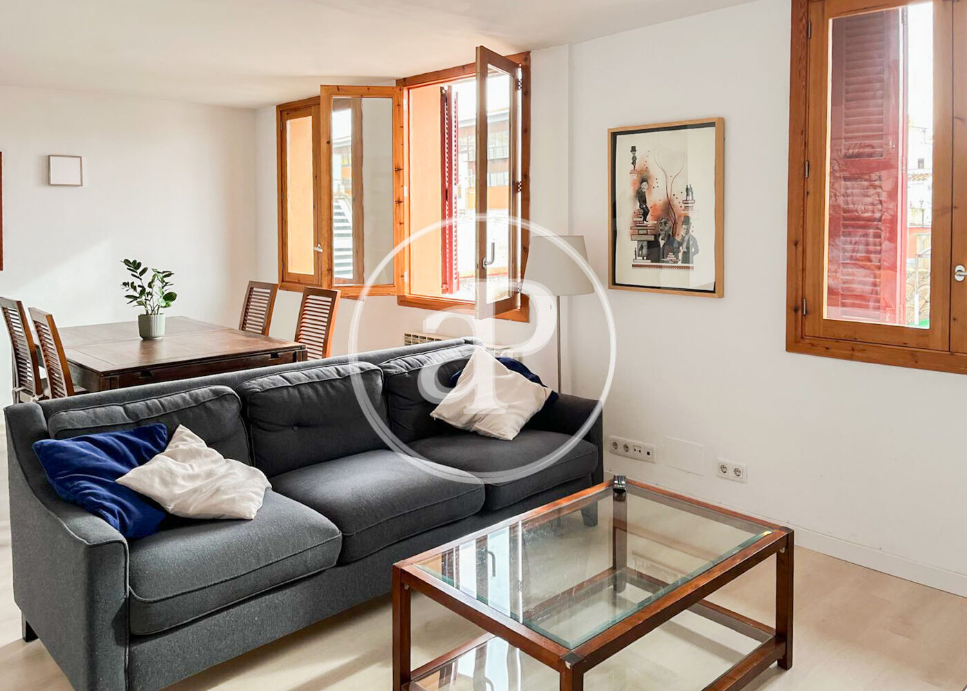 ¡Descubre esta joya inmobiliaria en el corazón del casco antiguo de Palma de Mallorca! Situado entre la majestuosa Iglesia de Sant Francesc y la emblemática Porta Pintada, este encantador apartamento de 83 m² ofrece una oportunidad única para aquellos que buscan un "pied-à-terre" en Mallorca.  Disfruta de la tranquilidad de las pintorescas calles peatonales, lejos del ruido de la ciudad, en este espacio completamente renovado con un gusto exquisito.  El amplio y luminoso salón-comedor te da la bienvenida con sus generosos ventanales de suelo a techo y acceso a un balcón con vistas a una plaza serena.  La cocina de diseño contemporáneo cuenta con una cómoda coladuría y zona de aguas, brindándote practicidad y estilo. La zona de descanso consta de dos dormitorios dobles exteriores, ambos con armarios empotrados, y con ventanales de suelo a techo que ofrecen luminosidad y amplitud. Además, el dormitorio principal cuenta con un moderno baño en suite y un vestidor para mayor comodidad, el otro dormitorio con preciosas vistas frontales a la Plaza de la Artesanía. El segundo baño, elegante y funcional, puede servir tanto para la segunda habitación como para tus invitados.  Los acabados de alta calidad incluyen suelos de parquet, carpintería interior de madera lacada en blanco y carpintería exterior con doble acristalamiento y persianas mallorquinas, asegurando un ambiente confortable en todas las estaciones gracias al aire acondicionado frío/calor en todas las estancias.  Ofrece la posibilidad de adquirir un aparcamiento en la misma finca.  Esta propiedad es la combinación perfecta de diseño contemporáneo y comodidad, ofreciéndote un estilo de vida único en el corazón del casco antiguo de Palma. ¡No pierdas la oportunidad de hacer de este apartamento tu refugio en la hermosa isla de Mallorca!  Esta propiedad convierte en una oportunidad única para vivir en pleno casco antiguo en una ubicación tranquila y a la vez con todas las comodidades y servicios.   ¿Te imaginas vivir aquí? ¡Esperamos tu llamada!