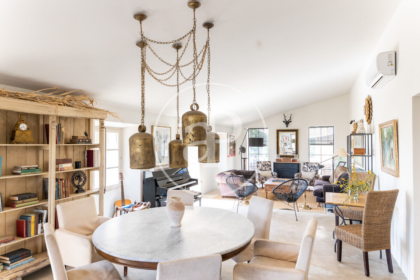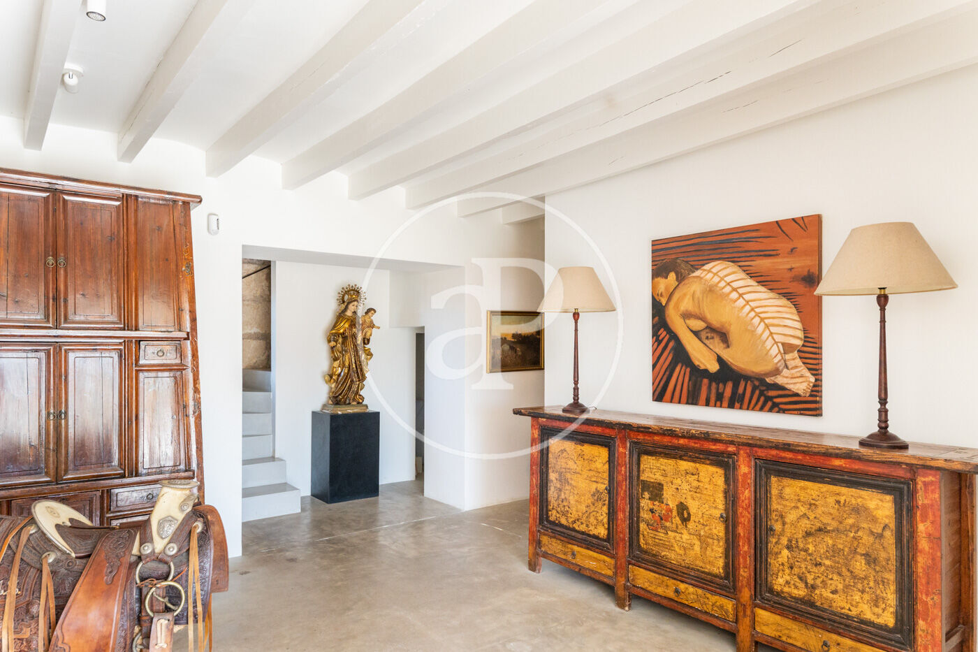 Esta enorme masía con un terreno de 550.000 m², y construcciones que suman 2.000 m² en Algaida, data del siglo XV, aunque las edificaciones actuales se construyeron en el siglo XVIII. Sus propietarios era la familia Llull, descendientes del famoso beato mallorquín, Ramon Llull del siglo XIII. Un extra muy valioso es su propio manantial de agua natural brotando del suelo, ya aprovechado en la época musulmana, que lleva el agua por un canal al gran depósito – safareig, donde beben los animales. En general, proveé una independencia alimentaria total gracias al aprovechamiento agrícola y ganadero, agua propia y muchos recursos naturales en la misma finca. El extenso terreno abarca zonas boscosas de pinos, encinas, algarrobos y otras especies de árboles, además de ricos pastos. La gran casa principal forma una unidad con la casa de los colonos, pero con accesos separados, además con varias dependencias de todo tipo para mantener una granja con animales (ahora hay ovejas), etc. Antiguamente había también viñedos, y de aquella época quedan grandes barriles de madera para el vino en el almacén más grande. También hay otro depósito - piscina de unos 6 m² en la esquina de la casa. Separados de esta gran construcción hay otras dos, una caseta de 50 m² y un establo de unos 200 m². Está a sólo 20 minutos del aeropuerto de Palma, pero lejos de las rutas aéreas y autovías, por tanto es una zona muy tranquila. No hay electricidad de la red, aunque se puede conectar. Contáctenos ahora para más detalles y aproveche la oportunidad de transformar esta única propiedad en su casa. ¿Se imagina vivir aquí? ¡Esperamos su llamada!