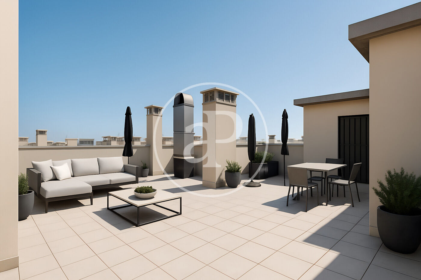 El gran valor añadido de esta vivienda es su espectacular rooftop privado de 60 m², con uso privativo, ideal para crear zonas de ocio, barbacoa, chill-out o comedor al aire libre con vistas despejadas y privacidad total.