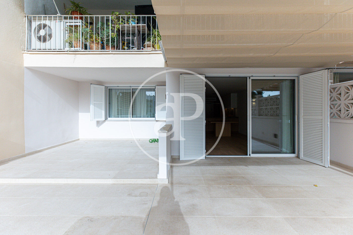 En la zona de Son Espanyolet, a pocos minutos andando del conocido barrio de Santa Catalina, encontramos este piso de 115m² reformado con gusto con dos amplias terrazas muy agradables.