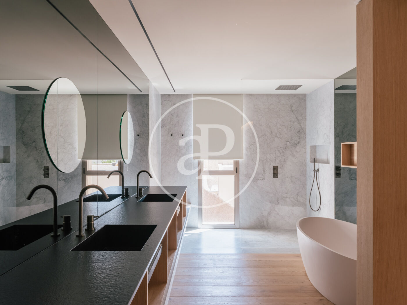 Espectacular y moderna casa de 400m² con piscina privada y vistas sensacionales de Barcelona. Se encuentra en la zona alta, ubicada en Can Caralleu, Sarrià. La vivienda consta de cinco plantas con seis dormitorios y seis baños. Dispone de ascensor con acceso a las distintas plantas de la vivienda y aparcamiento para tres coches en el interior. Al entrar a la vivienda nos encontramos con un recibidor con acceso al ascensor y en el lateral un aseo de cortesía. Bajando unas escaleras encontramos el salón-comedor, muy luminoso y tranquilo con grandes ventanales y una chimenea de gas. A la izquierda del salón se encuentra la cocina americana de diseño Bulthaup con electrodomésticos Gaggenau. Desde el salón se accede al jardín y a la piscina. En la primera planta, encontramos la habitación principal en suite con salida a una terraza privada. La habitación dispone de vestidor, bañera de diseño y ducha. En la segunda planta, se disponen dos dormitorios dobles y exteriores, ambos dormitorios comparten un baño completo con ducha. En la misma planta se encuentra la zona de aguas. En la tercera planta, se encuentra el tercer y cuarto dormitorio, ambos dobles y exteriores, con armarios empotrados, así como una amplia sala polivalente y un baño completo con lavabo de dos senos y ducha. En la cuarta planta, con el techo abuhardillado y con claraboya, encontramos una sala polivalente con un baño completo, desde esta sala, a través de una escalera, llegamos a una espléndida y disfrutable terraza con las mejores vistas de Barcelona, donde se puede ver el mar. En la planta inferior, encontramos una zona de aguas equipada con lavadero, lavadora secadora y zona de planchado y una zona de servicio con un dormitorio y un baño con ducha. En la planta semisótano, se ofrece un garaje con capacidad para tres vehículos que completa esta impresionante casa de obra nueva. La casa es de estructura de hormigón, con mezcla de piedra natural, grandes ventanales y contraventanas correderas de madera, que nos permiten jugar con la luz. En el suelo tenemos un parquet natural de roble, con calefacción radiante. La casa también tiene aire acondicionado y carpintería de aluminio de máxima calidad. La calificación energética de la casa es de nivel A. ¿Te gustaría vivir aquí?* En cumplimiento de la Ley 12/2023 y la Llei 18/2007 informamos que:Este inmueble no tiene índice R.P.LL. Respecto a la presente propiedad no existe certificado informativo estatal de referencia de precios de alquilerEste propietario ostenta la condición de gran tenedor.La presente propiedad tiene la consideración de suntuaria por razón de superficie y/o renta, y por ello de conformidad a la LAU no es de aplicación el índice estatal de referencia de precios de alquiler.