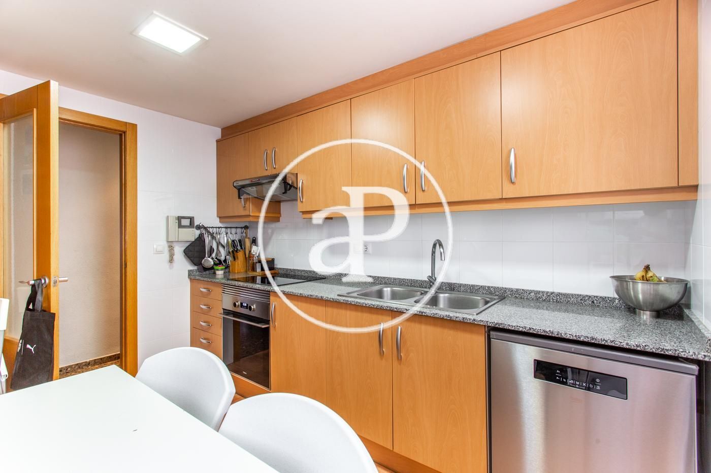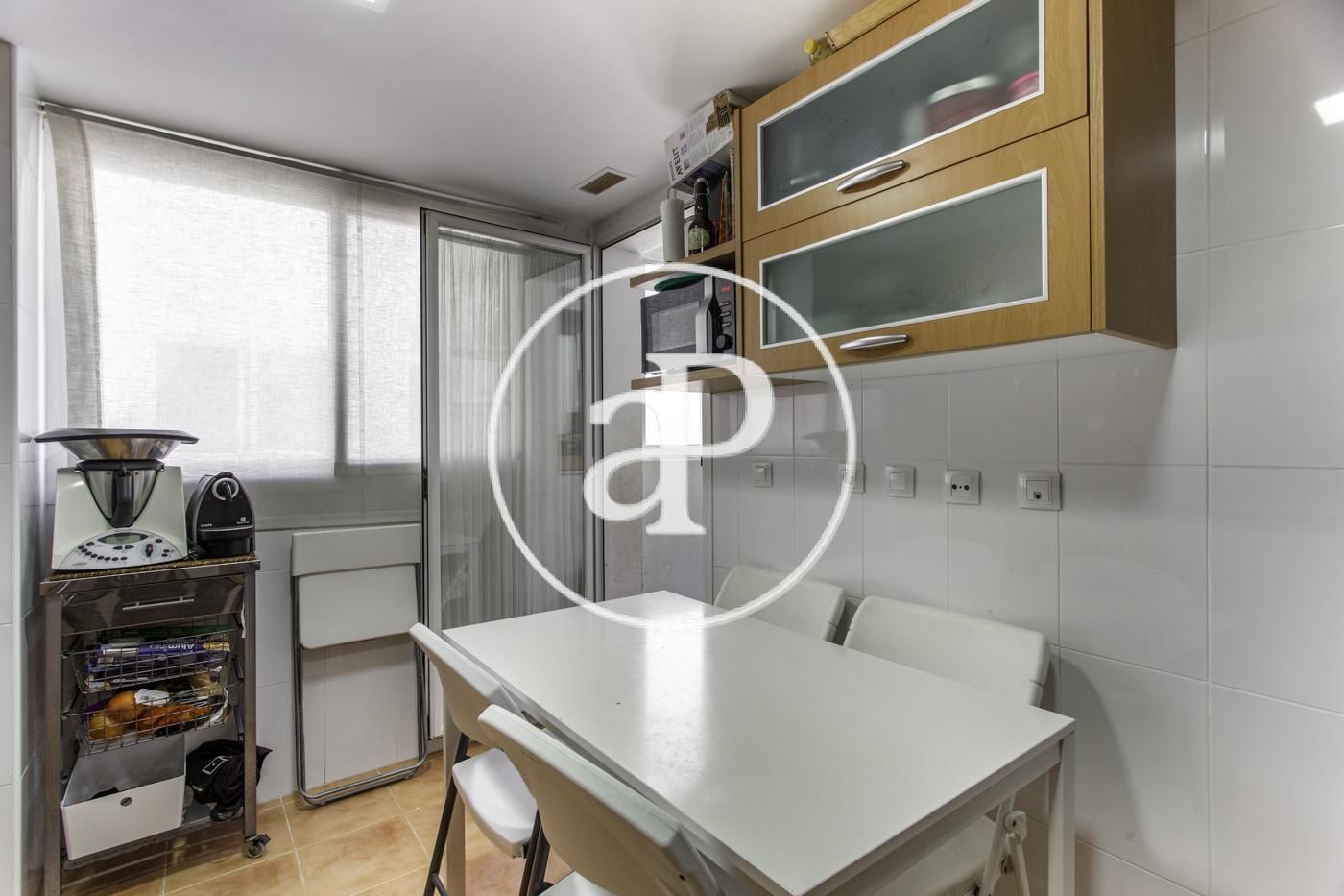 Al entrar a esta maravillosa vivienda, nos encontramos con un amplio y acogedor comedor, con mucha luz y un balcón, punto de encuentro para toda la familia, justo en la puerta de enfrente tenemos la cocina independiente suficientemente amplia y con su cómoda galería, que nos ofrece todas las necesidades que necesita una familia.