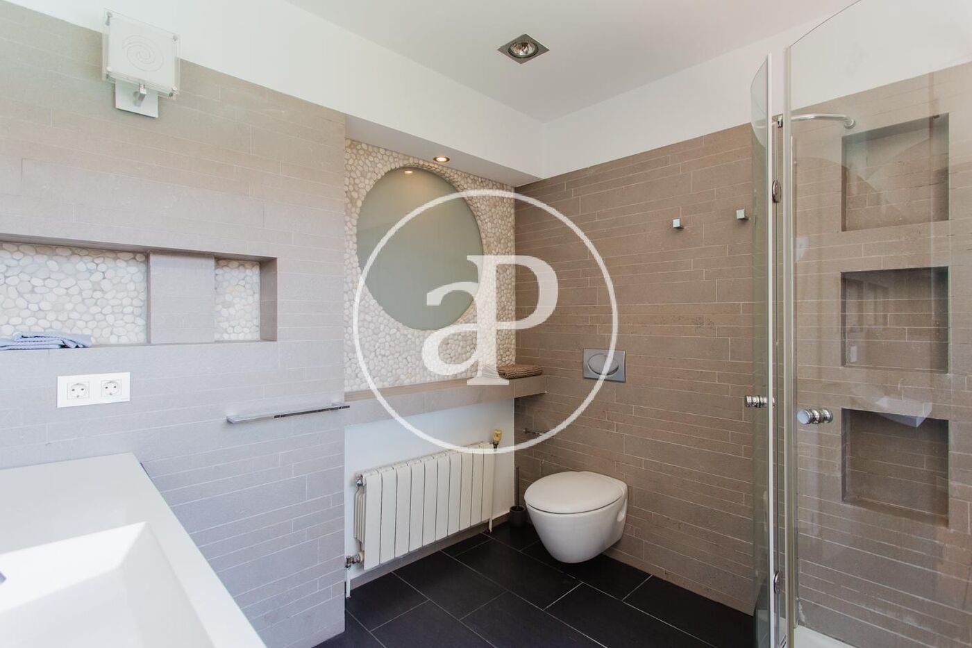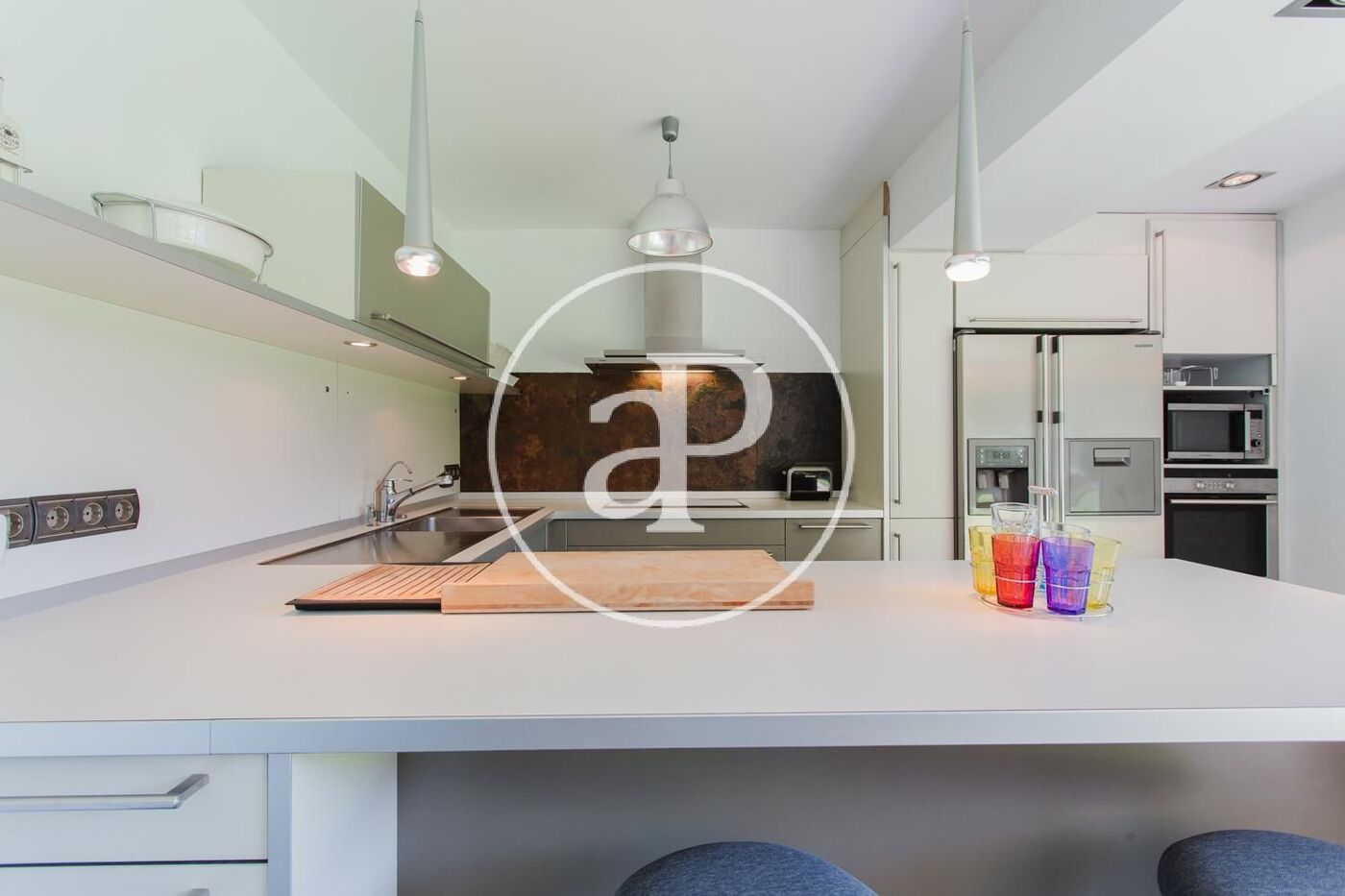 Posibilidad de alquilarla con o sin muebles. La vivienda tiene una superfície de 300 m2 distribuidos en un amplio y luminoso salón comedor con grandes ventanales y cocina, además cuenta con 5 habitaciones y 3 baños ( 2 de ellos en suite ). Dispone de una amplia terraza cubierta para poder disfrutarala durante todo el año. Tiene garaje con capacidad para 2 vehículos. La vivienda está climatizada con aire acondicionado y calefacción.