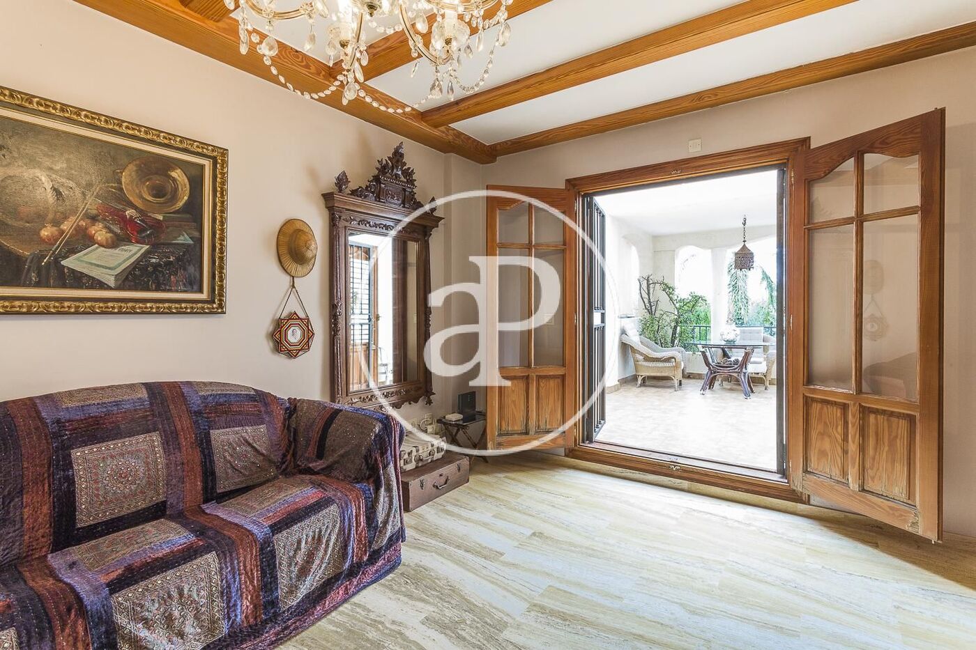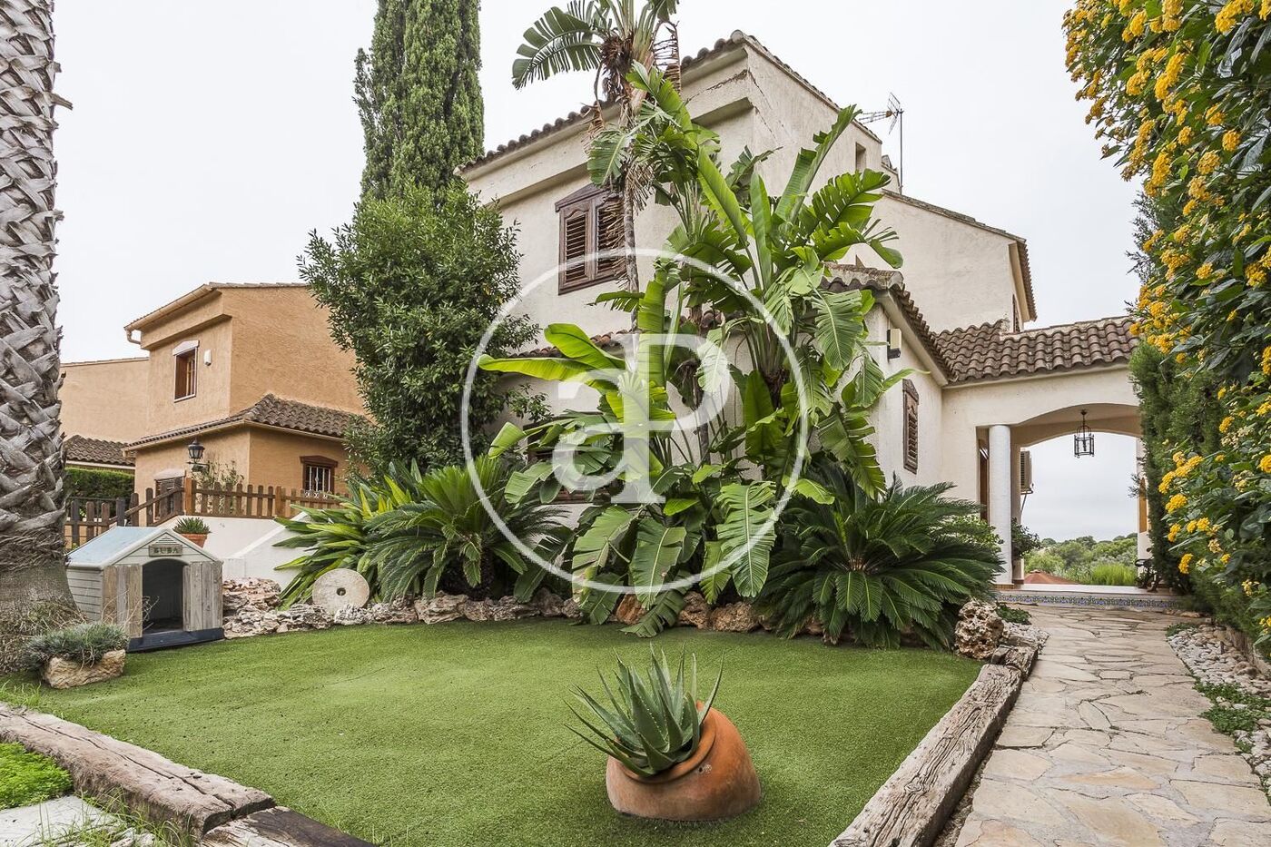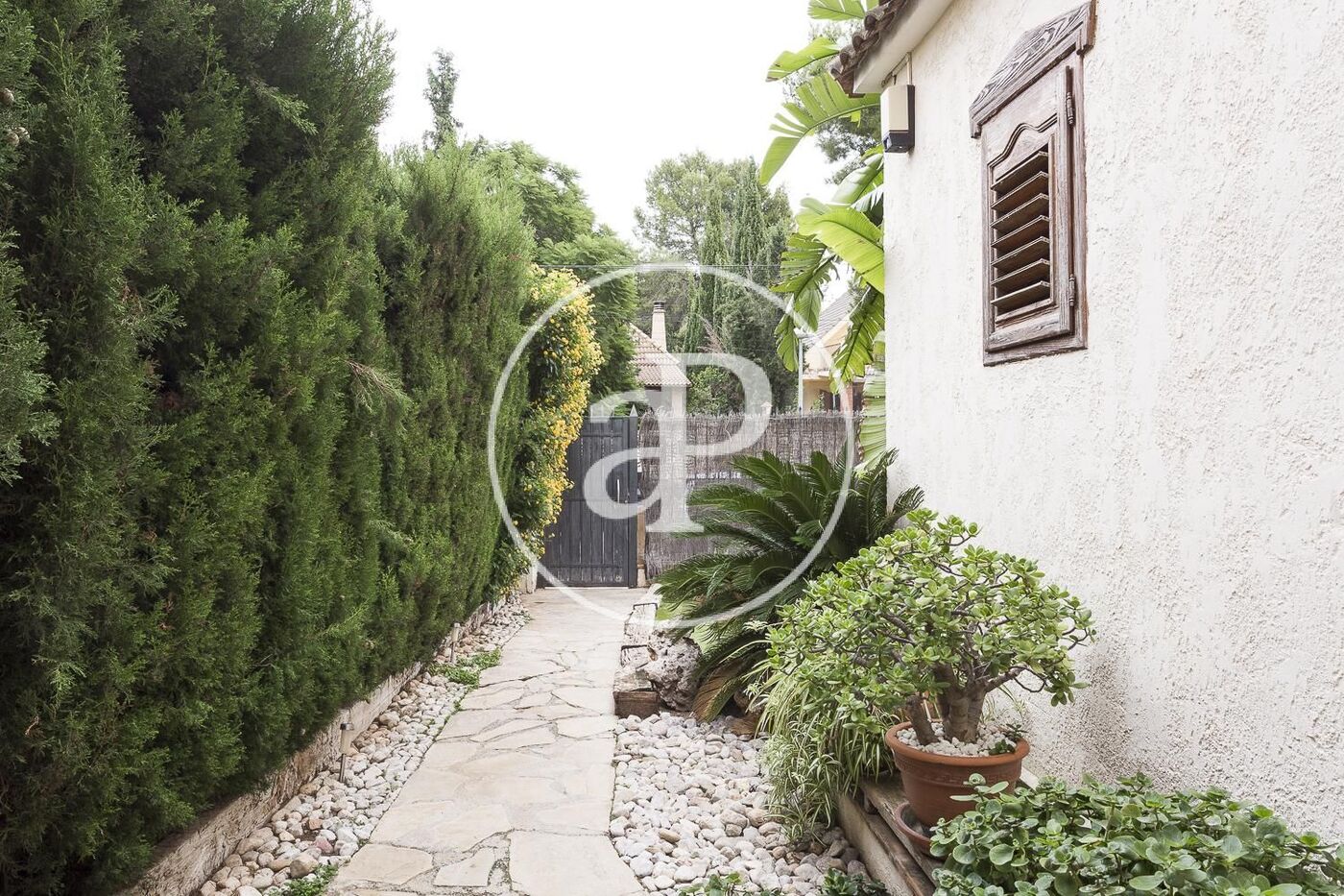 Al entrar a la propiedad nos encontramos con un bonito jardín, que a través de un camino de piedra, nos da acceso a la entrada principal. El hall nos separa la cocina totalmente equipada en estilo valenciano y un baño, Seguidamente el gran salón comedor con chimenea central que da acceso a una gran terraza, donde podremos pasar las tardes leyendo un buen libro o invitar a la familia y amigos a cenar en las noches de verano.